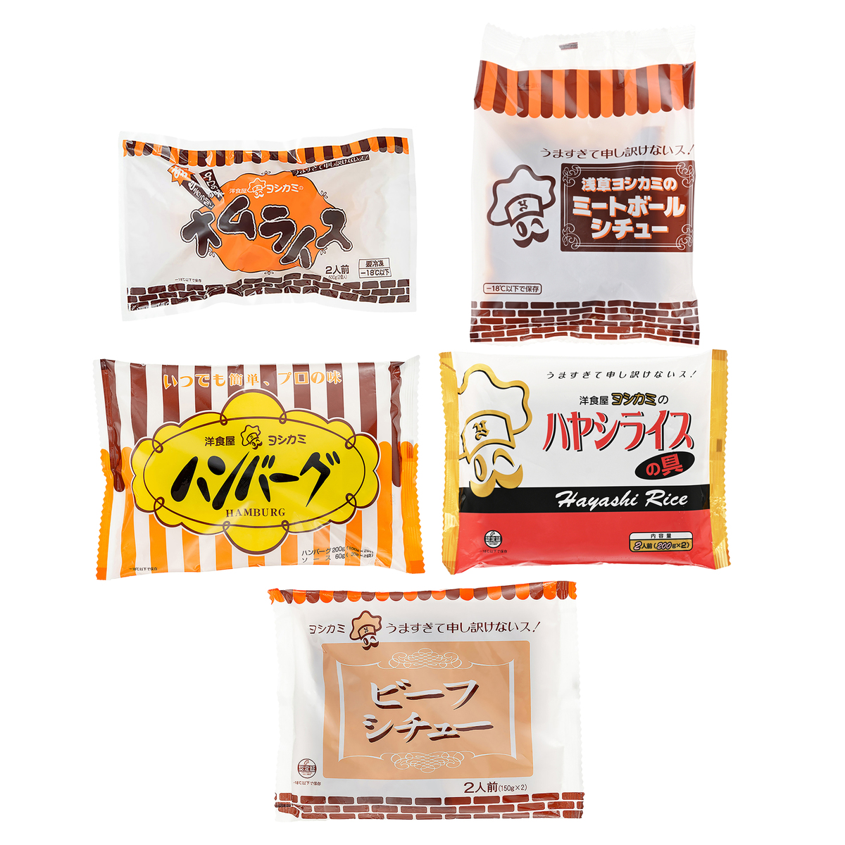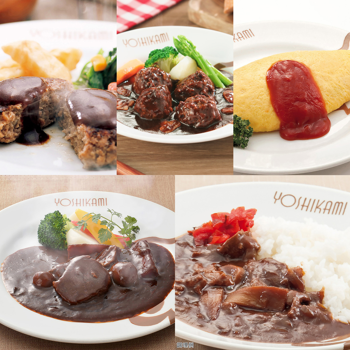 [アレルギー物質特定原材料8品目] 卵、小麦、乳 [商品内容] ・ハンバーグ200g(100g×2個) ・ソース60g(30g×2袋) ・ビーフシチュー300g(150g×2個) ・ハヤシライスの具400g(200g×2個) ・オムライス500g(2個入) ・ミートボールシチュー(ミートボール4個入り)270g [賞味期限] 出荷時点で賞味期限まで120日以上ある商品をお届けします [保存方法] 開封前:冷凍‐18℃以下で保存してください 開封後:お早めにお召し上がりください [お召し上がり方] 加熱してお召し上がりください [注意事項] ※加熱しすぎると品質劣化の原因になりますので、ご注意ください ※加熱後は袋も中身も熱くなりますので、やけどにご注意下さい ※一度解凍したものは再び凍結しないでください。 <オムライス> ※製品内包装面の赤い色はチキンライスのケチャップです。安心してお召しあがりください ※本品製造工場では、乳成分を含む製品を製造致しております <ハンバーグ> ※袋が熱い鍋のふちにふれたり、鍋からはみ出していると、溶ける場合があります <ミートボールシチュー> ※調理する際は外袋から取り出してください ※袋が熱い鍋のふちにふれたり、鍋からはみ出していると、溶ける場合があります [原料原産地] ハヤシライスの具:たまねぎ(日本) ビーフシチュー:牛肉(オーストラリア) オムライス:液卵(国内製造)、米(国産) ハンバーグ:牛肉(オーストラリア) ミートボールシチュー:ミートボール(牛肉(日本)) [原産国] 日本 [原材料] ハヤシライスの具: たまねぎ(日本)、牛肉、トマトケチャップ、にんじん、たけのこ水煮、みりん、マッシュルーム水煮、牛肉エキス(牛肉・大豆・豚肉を含む)、植物油、小麦粉、ショートニング、ワイン、トマトペースト、食塩、砂糖、セロリー、しょうゆ、香辛料/カラメル色素、増粘剤(加工デンプン)、調味料(アミノ酸等) ビーフシチュー: 牛肉(オーストラリア)、にんじん、たまねぎ、マッシュルーム水煮、トマトケチャップ、みりん、牛肉エキス(牛肉・大豆・豚肉を含む)、植物油、小麦粉、セロリー、ショートニング、ワイン、トマトペースト、食塩、しょうゆ、にんにく、砂糖、香辛料/カラメル色素、増粘剤(加工デンプン)、調味料(アミノ酸等) オムライス: 液卵(国内製造)、米(国産)、トマトケチャップ、たまねぎ、植物油脂、鶏肉、還元水あめ、マッシュルーム水煮、濃縮トマト、糖類(砂糖、ぶどう糖)、トマトペースト、食塩、発酵調味料、トマトシーズニング(食用油脂、トマト、トマトペースト、その他)、しょうゆ、オニオンペースト、チキンブイヨン、香辛料、ガーリックペースト(にんにく、食塩、醸造酢)/加工デンプン、クエン酸(Na)、香料、増粘剤(加工デンプン)、カロテノイド色素、酸味料、(一部に小麦・卵・大豆・鶏肉・豚肉を含む) ハンバーグ: 【ハンバーグ】 食肉(牛肉(オーストラリア)、豚肉)、つなぎ(パン粉(乳成分・小麦・大豆を含む)、液全卵、ゼラチン、粉末状植物性たん白)、たまねぎ、牛乳、粒状植物性たん白、オニオンエキス、しょうゆ、食塩、ワイン、香辛料、植物油/調味料(アミノ酸)、着色料(カラメル、カロチノイド)、香料 【ソース】 牛肉、たまねぎ、トマトケチャップ、にんじん、みりん、ペースト状混合調味料(牛肉・大豆・豚肉を含む)、植物油、オニオンエキス、トマトペースト、加工油脂、ワイン、小麦粉、セロリー、他 ミートボールシチュー: ソース(フォンドヴォー、ソテーオニオン、トマトケチャップ、にんじんペースト、ブラウンルー(小麦粉、植物油、ぶどう糖)、マッシュルーム、牛脂、みりん、ビーフエキス、マッシュルームエキス、ワイン、トマトペースト、オニオンエキス、しょうゆ(小麦・大豆を含む)、食塩、砂糖、香辛料、酵母エキス、チキンエキス)、他