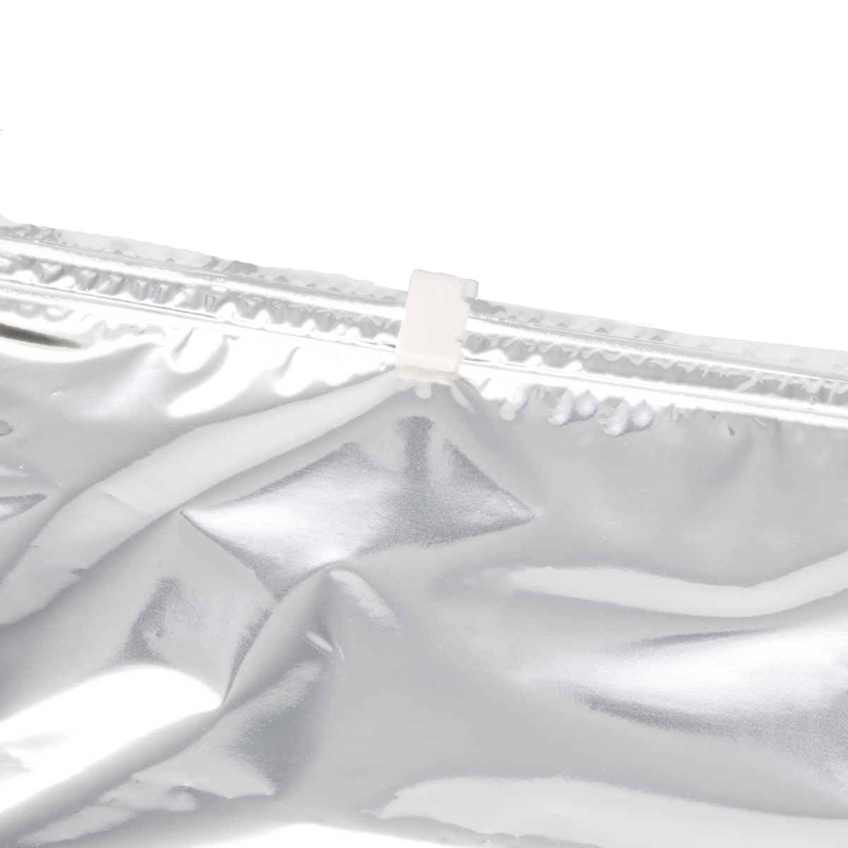 緊急時に困るかさばるゴミを圧縮できるゴミ袋。ゴミが約8割入ったら、チャックの端を10cmほど開けて空気を押し出しながら押さえ、素早く閉めるだけで簡単に圧縮できます。チャックでニオイの漏れを防ぎ、袋自体もアルミ蒸着加工でニオイ漏れを軽減します
