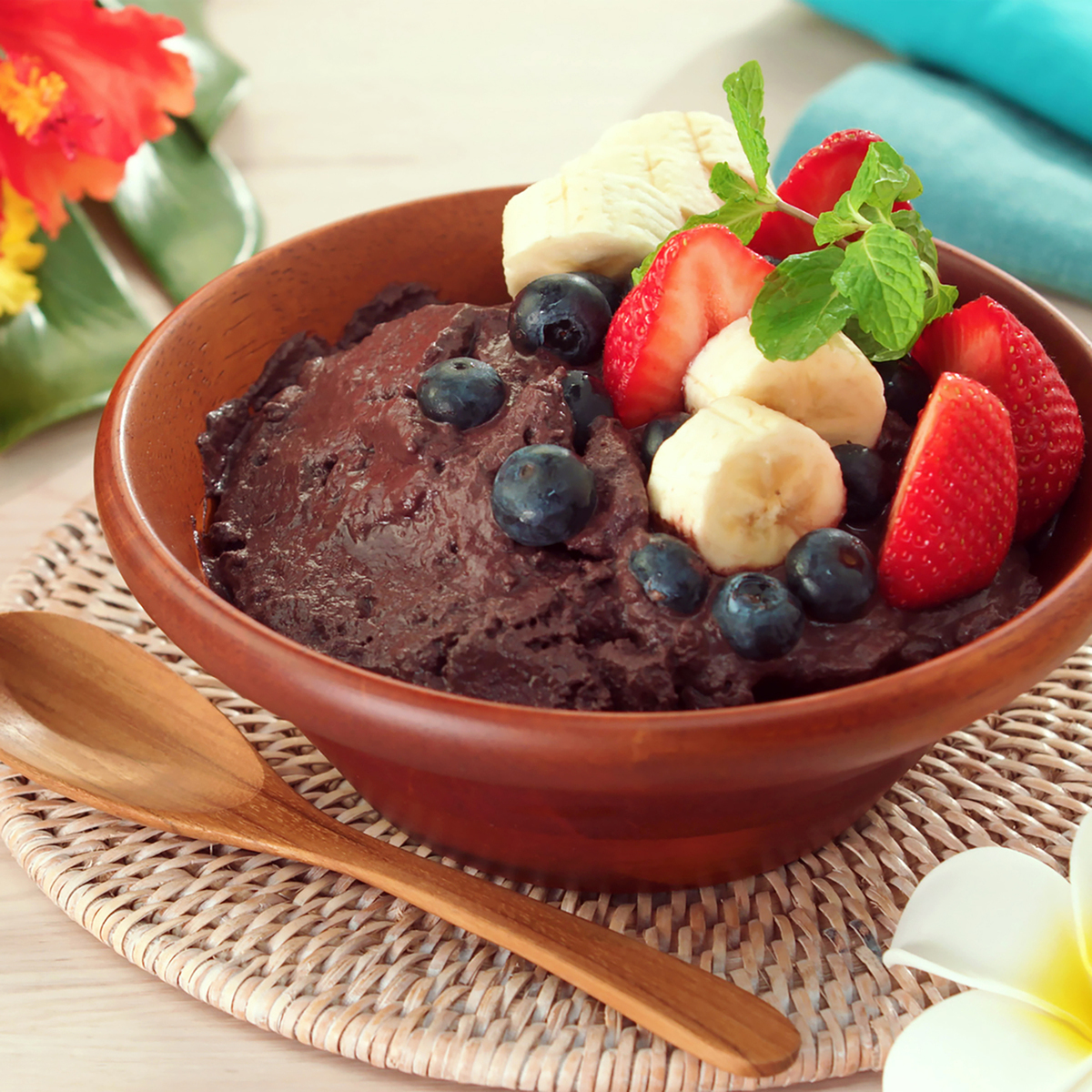 使い勝手の良い100gパックの冷凍アサイーピューレ。アサイーボウルやスムージーなどにお使いいただけます