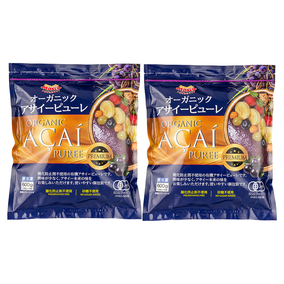 [アレルギー物質特定原材料8品目] なし [内容量] (100g×6袋)×2袋 [賞味期限] 出荷時点で賞味期限まで240日以上ある商品をお届けします [保存方法] 開封前:冷凍(-18℃以下)にて保存 開封後:開封後はお早めにお召し上がりください [お召し上がり方] 1.内袋のまま水道水に1〜2分さらし、表面を解凍する 2.冷凍アサイーピューレに、お好みのフルーツジュースや果物を加えて、ブレンダーで混ぜ合わせる 3.ボウルに盛り付けて、フルーツやグラノーラなどをトッピング [注意事項] ※解凍後はなるべくお早めにお召し上がりください ※稀に緑・茶色の油脂部分が浮き出ることがありますが、品質上問題ございません ※原料の個体差により、ピューレの色が異なる場合があります ※液漏れの可能性がありますので、必ず容器に映してから解凍ください [原産国] ブラジル [原材料] 有機アサイー