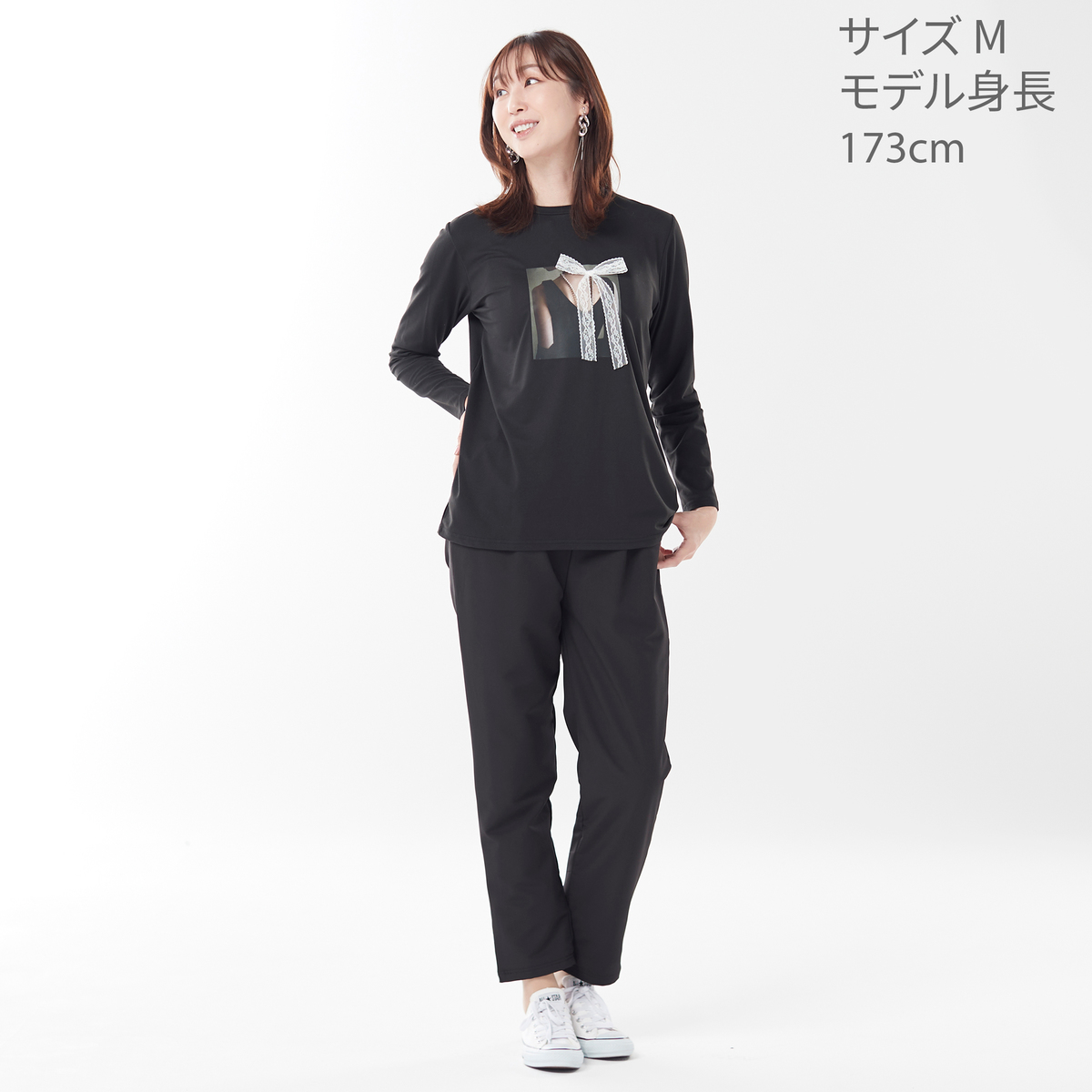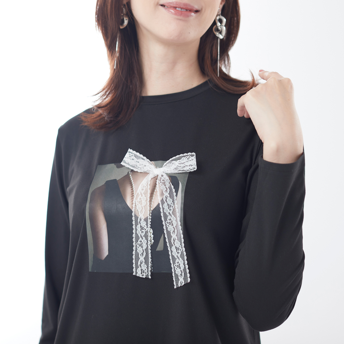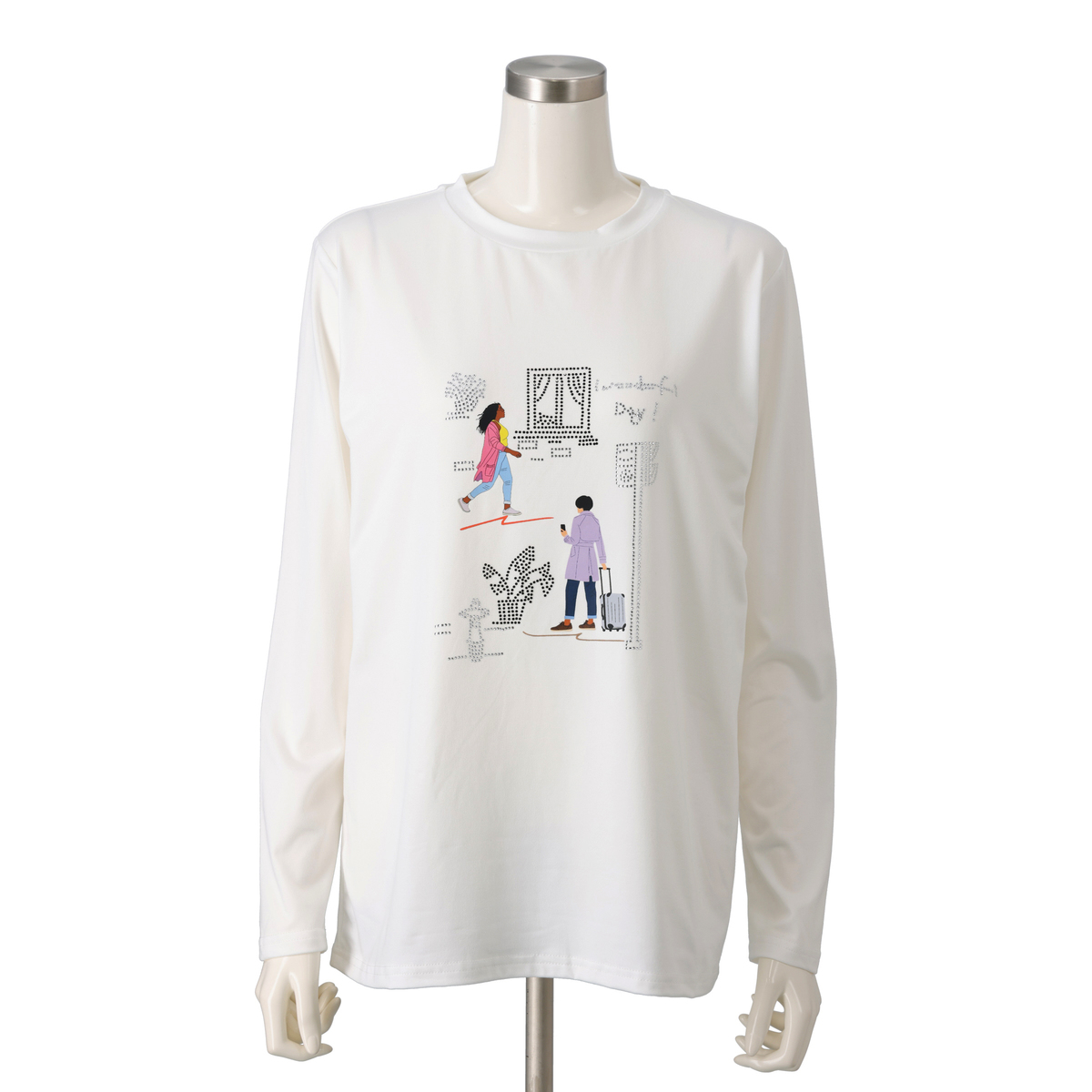 着ると気分も上がる、デコレーション長袖Tシャツ。本体は天竺素材にピーチ起毛加工を施し、ふんわりとなめらかな肌触りで、カジュアルすぎず上品さも。伸び感もよく動きやすいので、毎日の着こなしに心地よさをもたらします