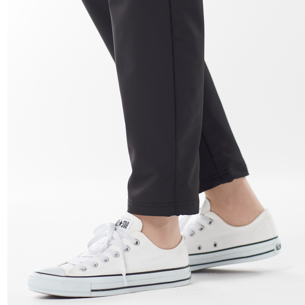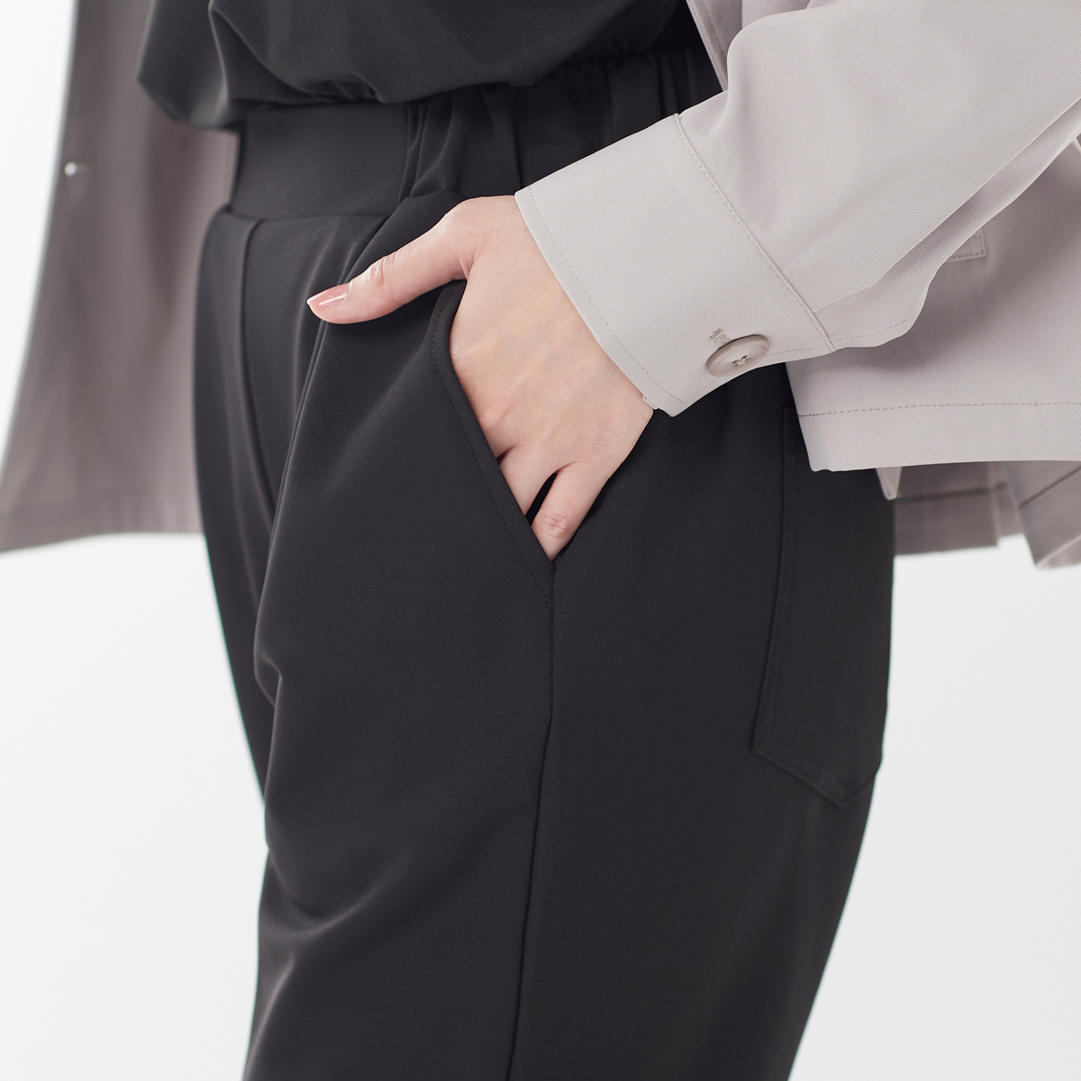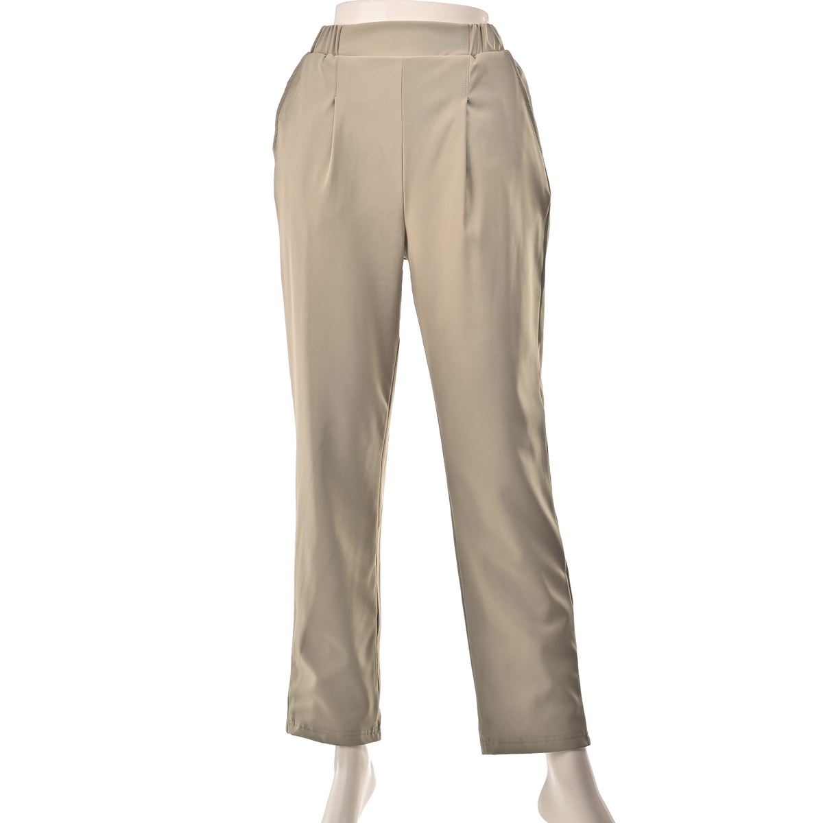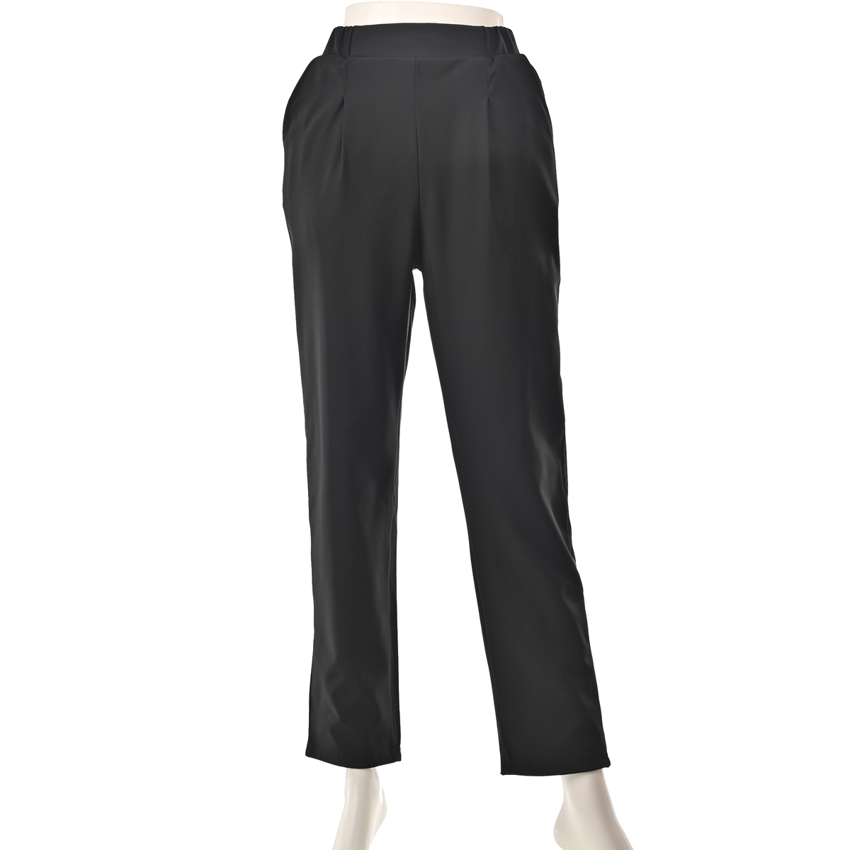 ウエストはゴム仕様で着脱ラクラクながら、きちんと見えする設計です。本体と裏地ともにストレッチ性があり、ストレスフリーな穿き心地。美脚効果が期待できるテーパードシルエットで、脚をすっきり見せながらしっかり暖かい一本です