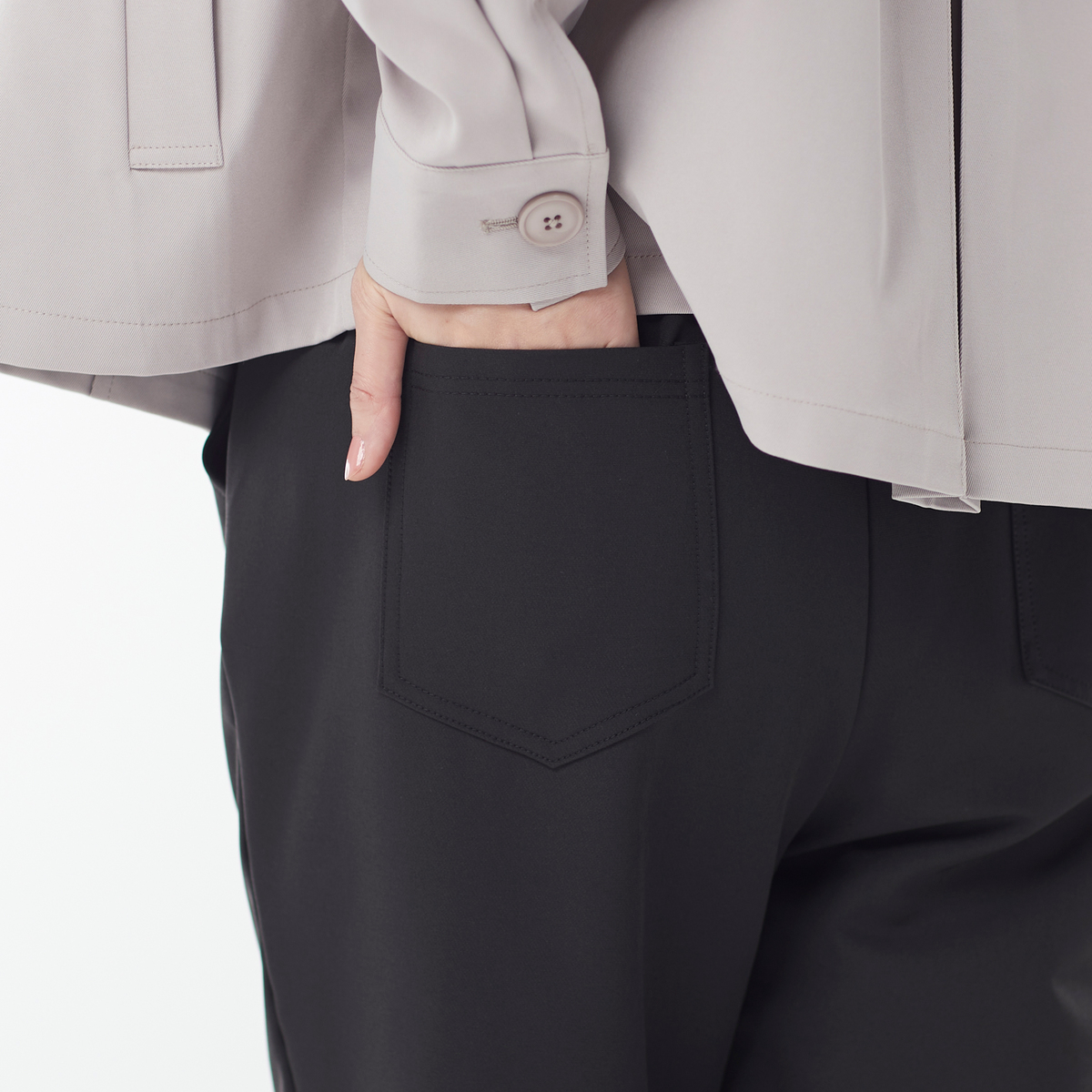 キレイに魅せるストレッチテーパードパンツ。二重織り素材でハリ感と上品さを兼ね備え、ほど良い厚みでシルエットを美しくキープします。空気を含みやすい生地で軽いのに暖かく、裏地には起毛トリコットを使用し、やわらかな肌触りとぬくもりをプラス。表はきれい見え、裏はあたたかの嬉しい組合せです