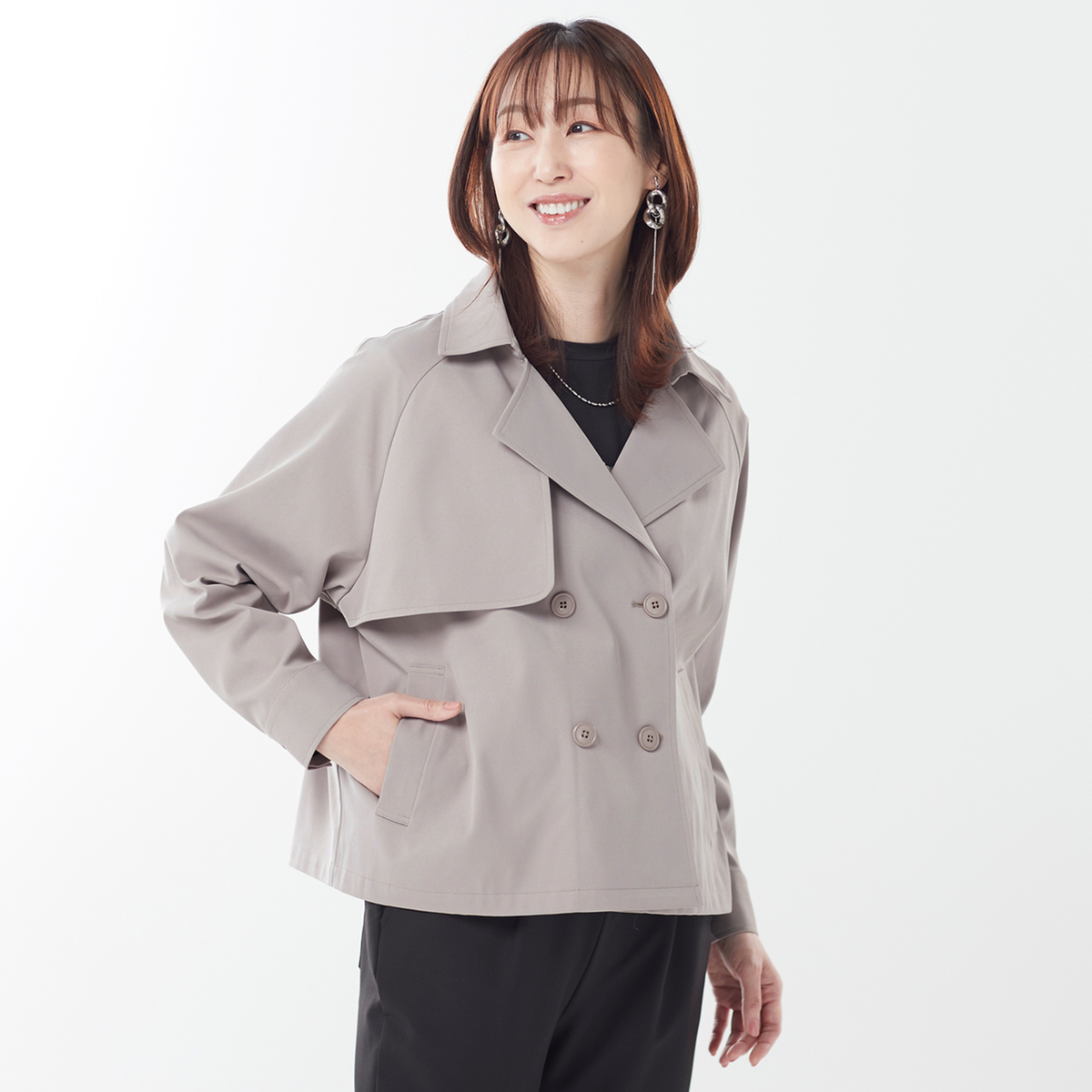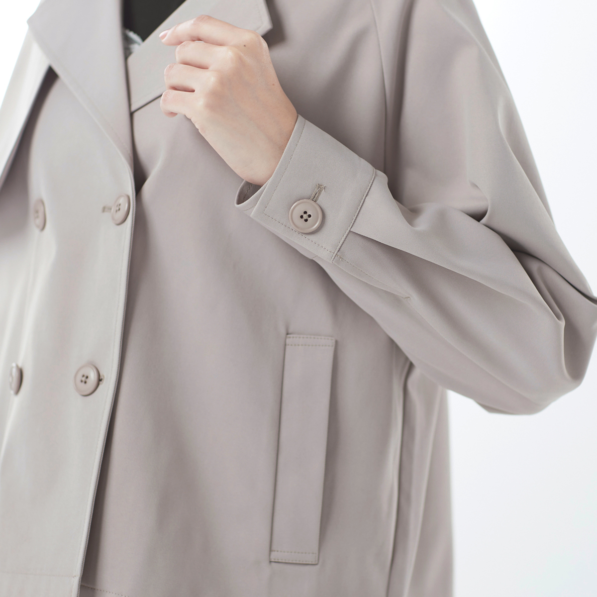 軽やかな羽織り心地のツイルショートトレンチコート。斜めの畝が特徴のツイル素材は、適度な厚みとしなやかさを兼ね備えています。高密度で織り上げた生地はお手入れしやすく、上品な光沢感で高級感を演出。羽織るだけで洗練されたスタイルが完成します