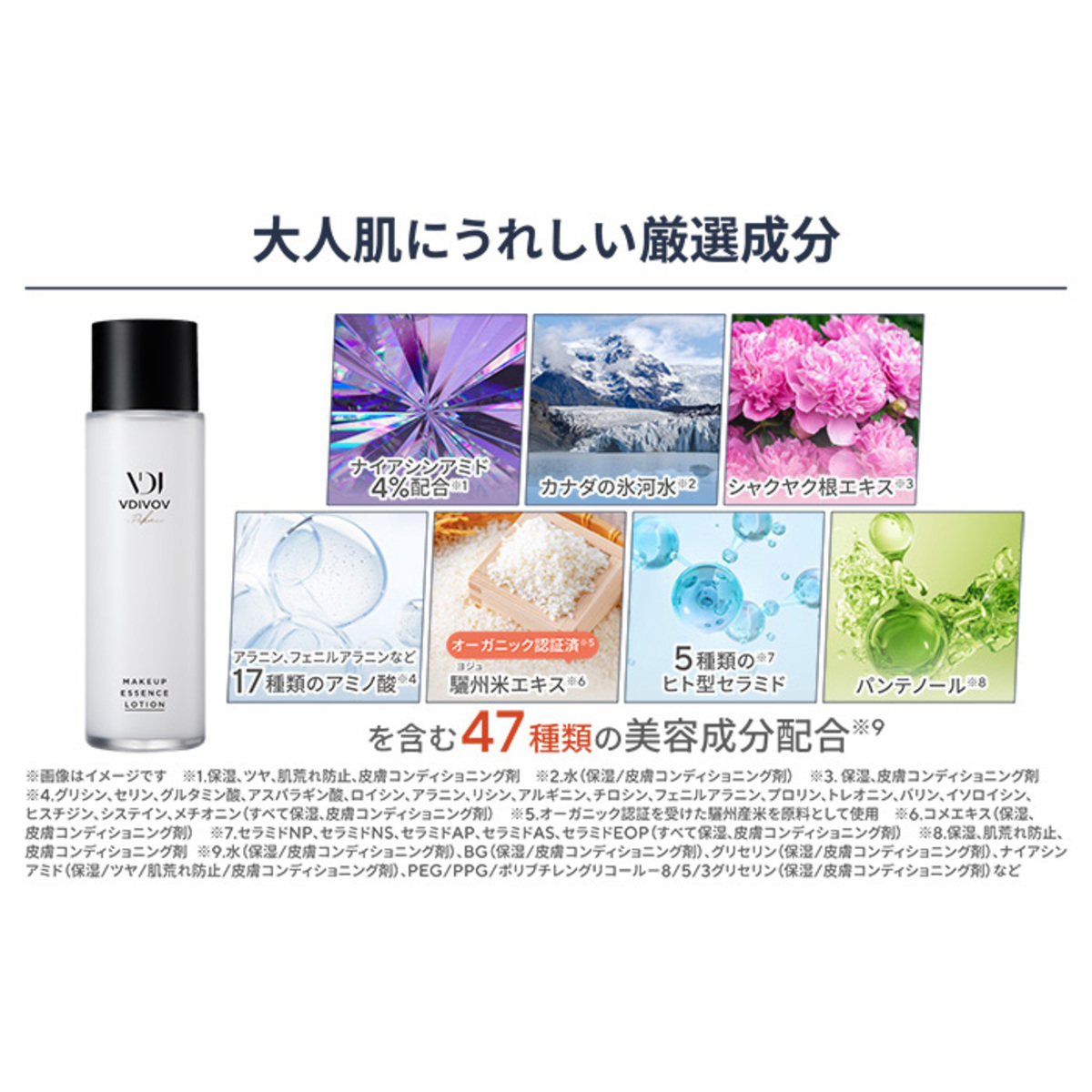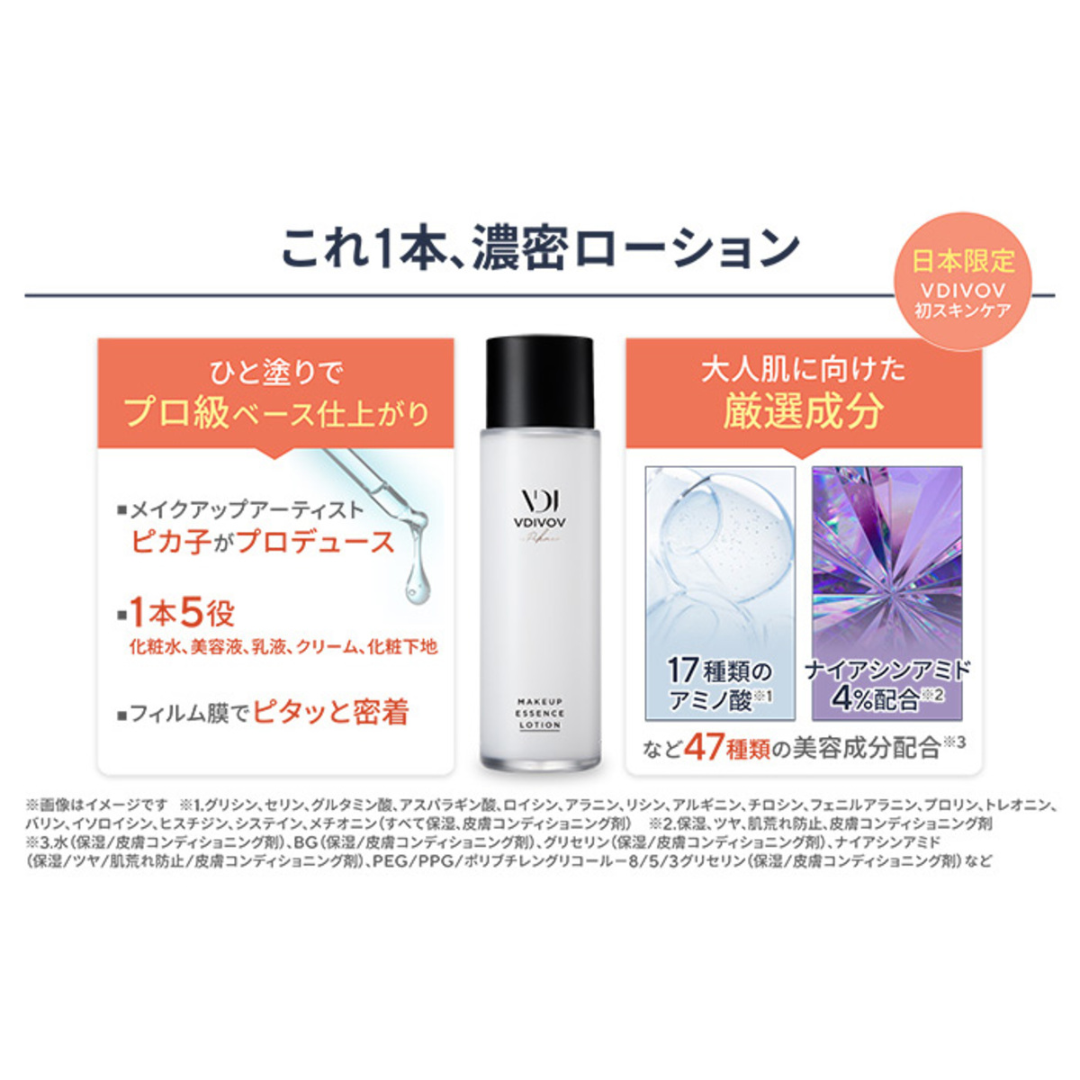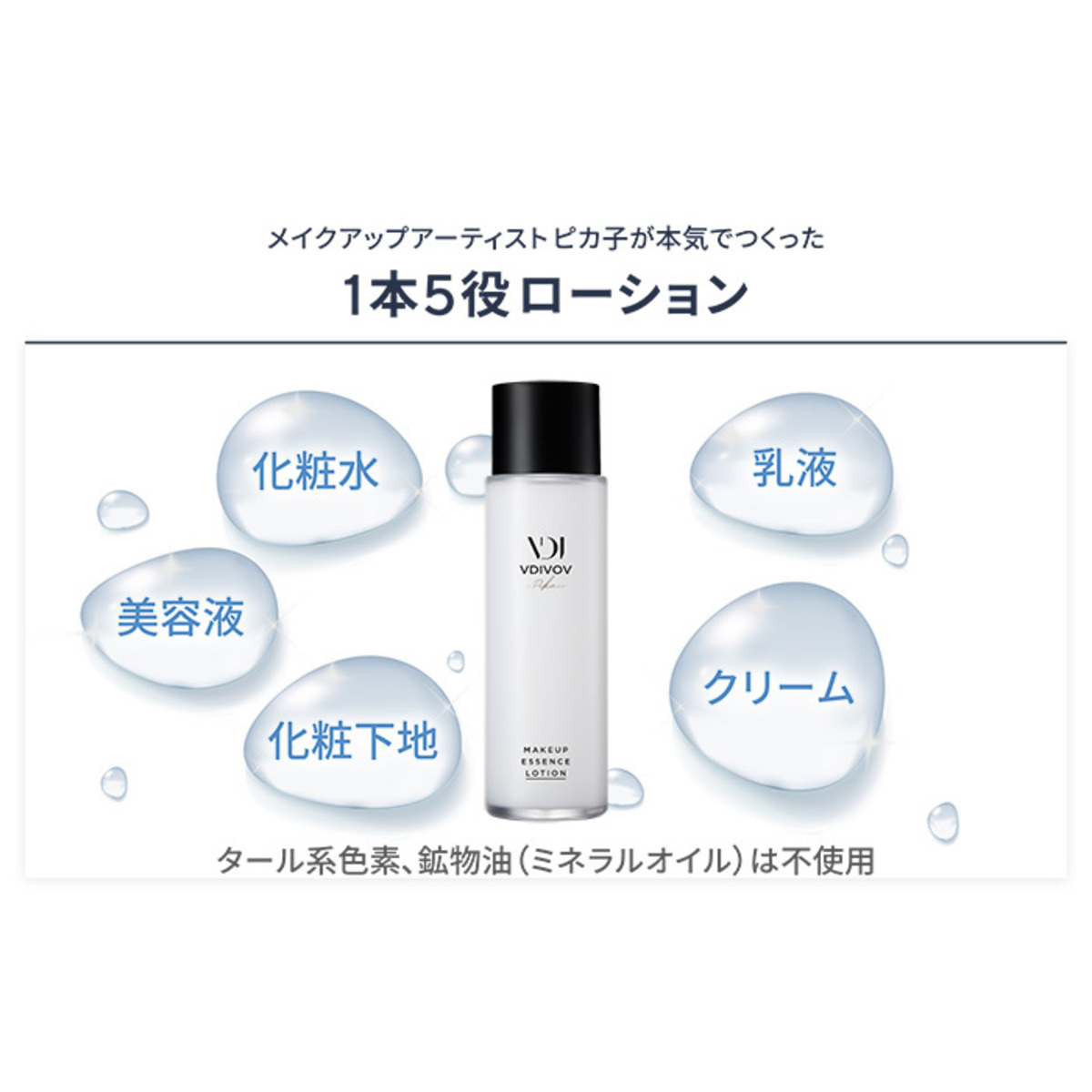 1本で化粧水・美容液・乳液・クリーム・化粧下地の5つの役割を果たすメイクアップエッセンスローション。メイクアップアーティスト・ピカ子さんがプロデュースした日本限定アイテムです