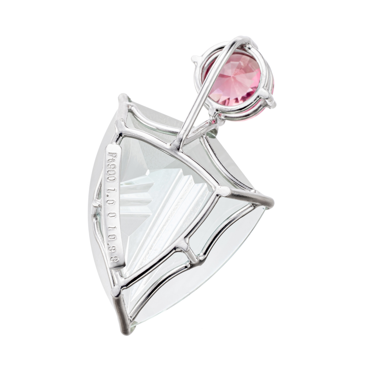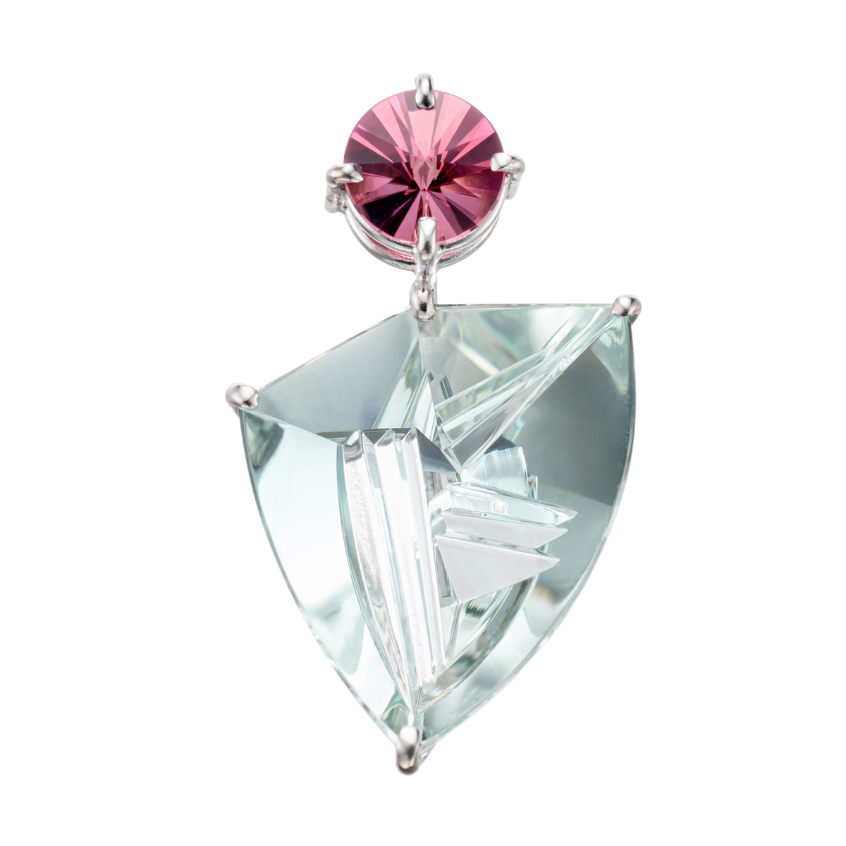 バチカンには、スピリットサン・カットのピンクトルマリンをあしらい、スタイリッシュなデザインに。宝石カットアーティストの技が光る逸品です
