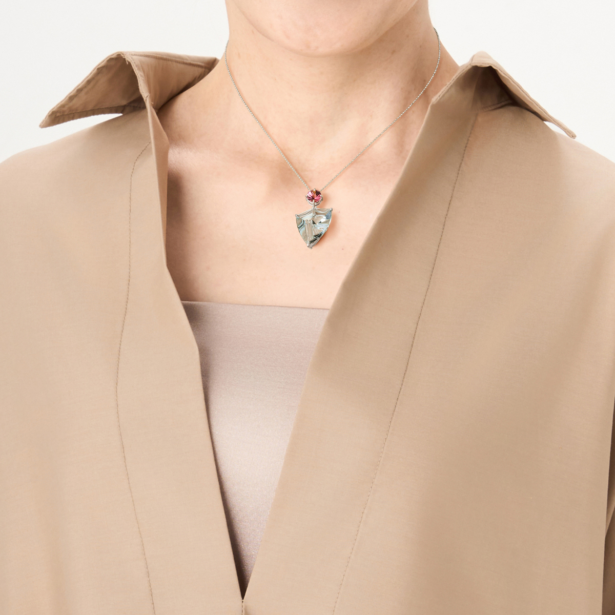 ムンシュタイナー工房の代表的なカラーストーンの一つであるアクアマリンを主役にしたペンダントヘッド。10ctを超える大粒のアクアマリンが、胸元で存在感を発揮します