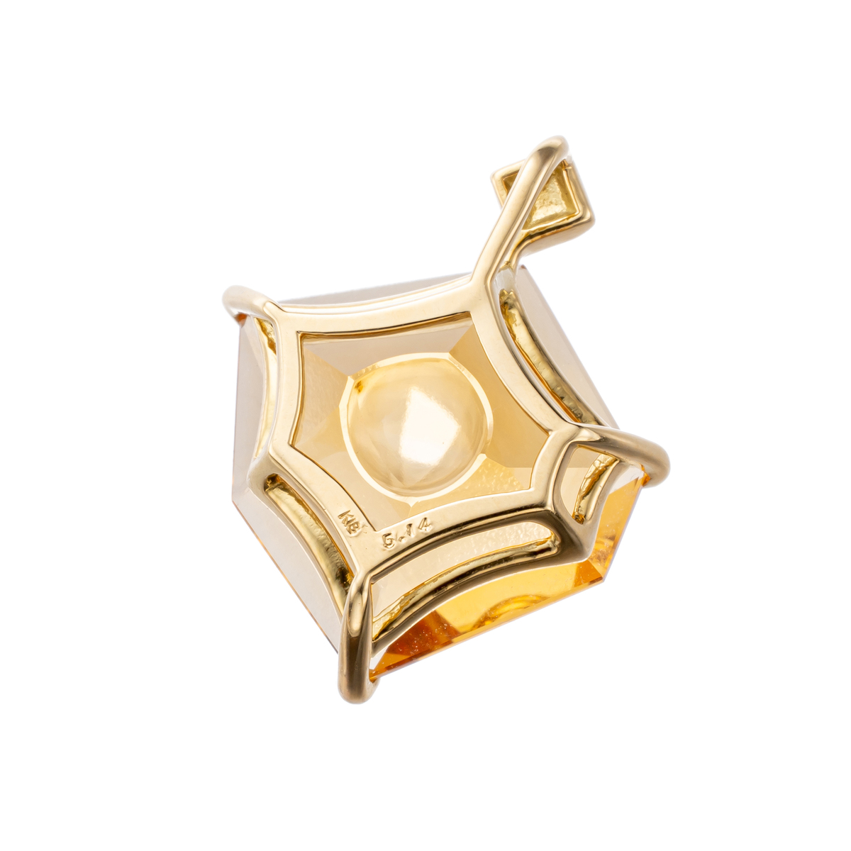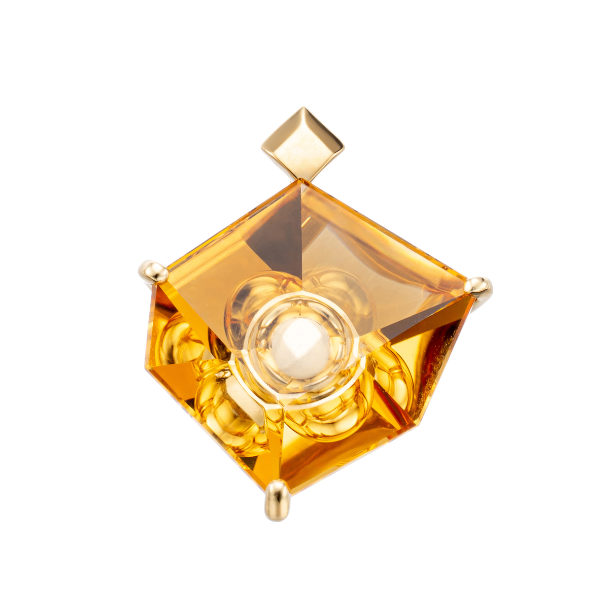 トム・ムンシュタイナー氏の代表的なデザインに、フィリップ氏がカットを加えたシトリンのペンダントヘッドです。全反射が生み出す美しい光と、キューレット部に刻まれた球体状のカットが泡や水玉のように見える神秘的な表情をお楽しみいただけます