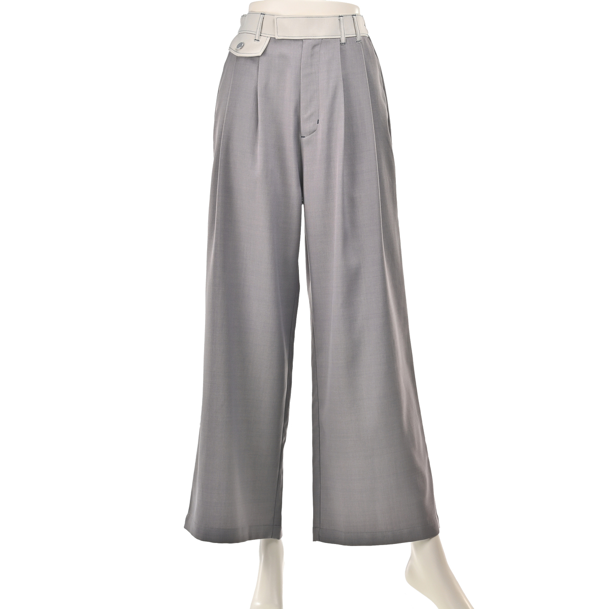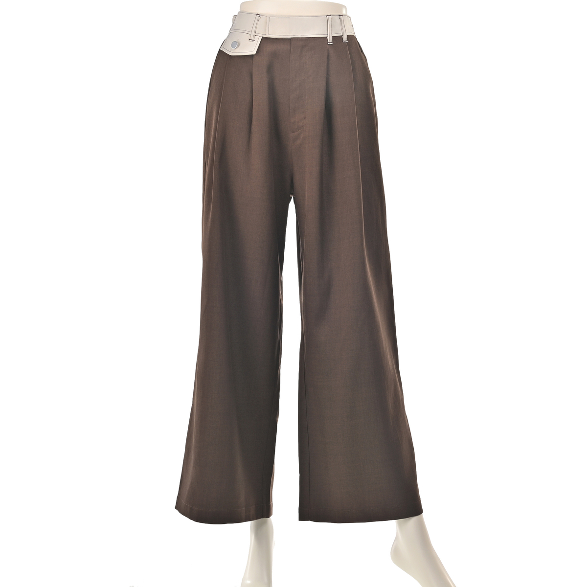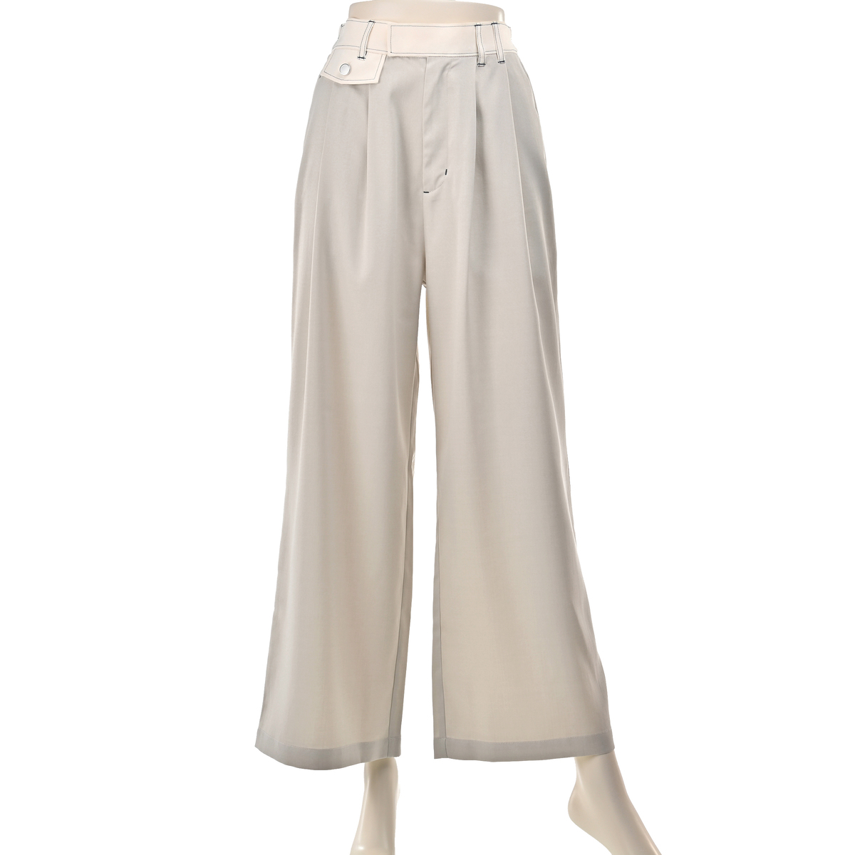 ウエストに映える配色ステッチが個性を引き立てるワイドパンツです。前身頃のタックが美しい立体感を演出。シンプルなトップスと合わせるだけで、洗練された着こなしが完成します