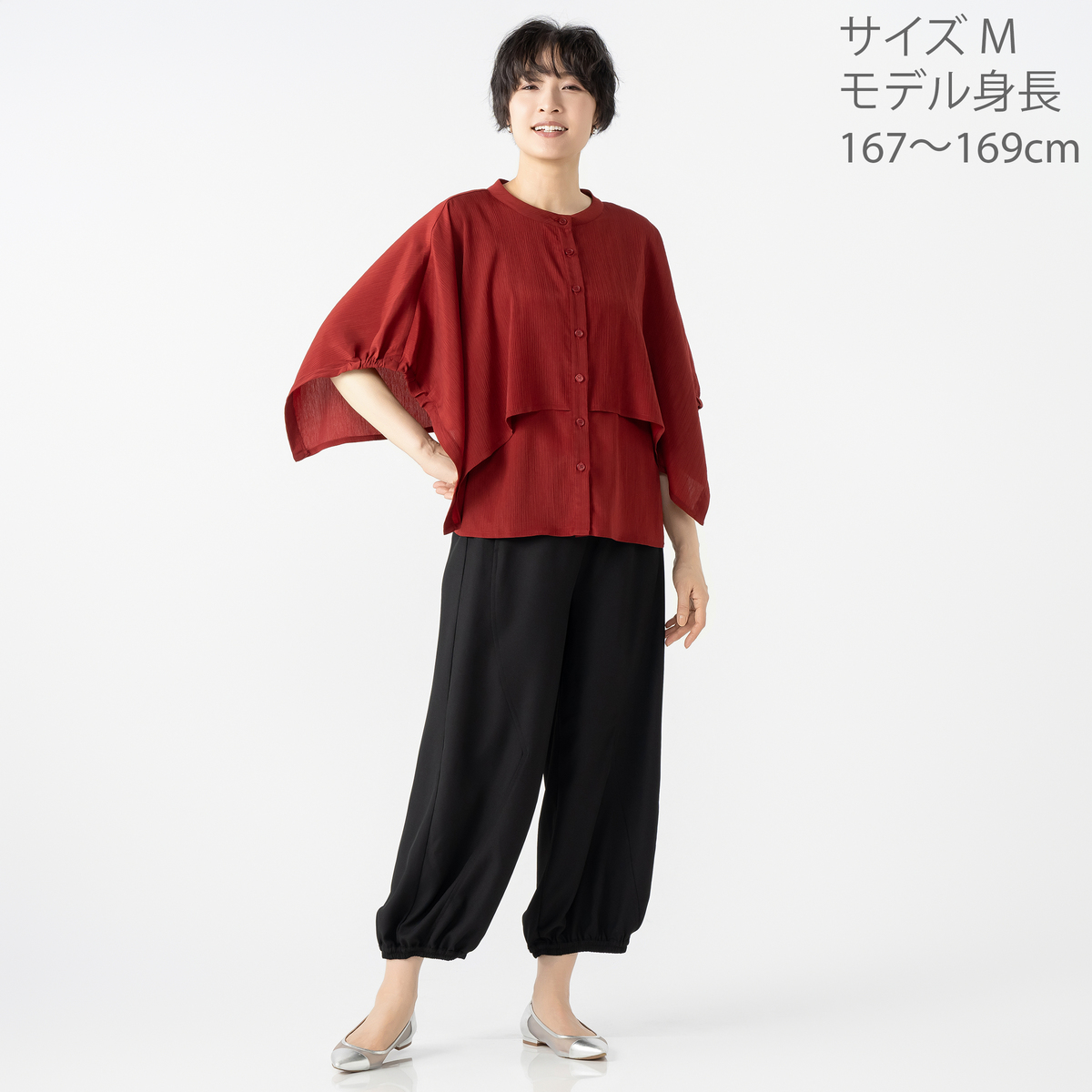 柔らかなツイル生地を使用し、適度なハリ感で美しいシルエットをキープ。落ち感もあってすっきり見えする素材です