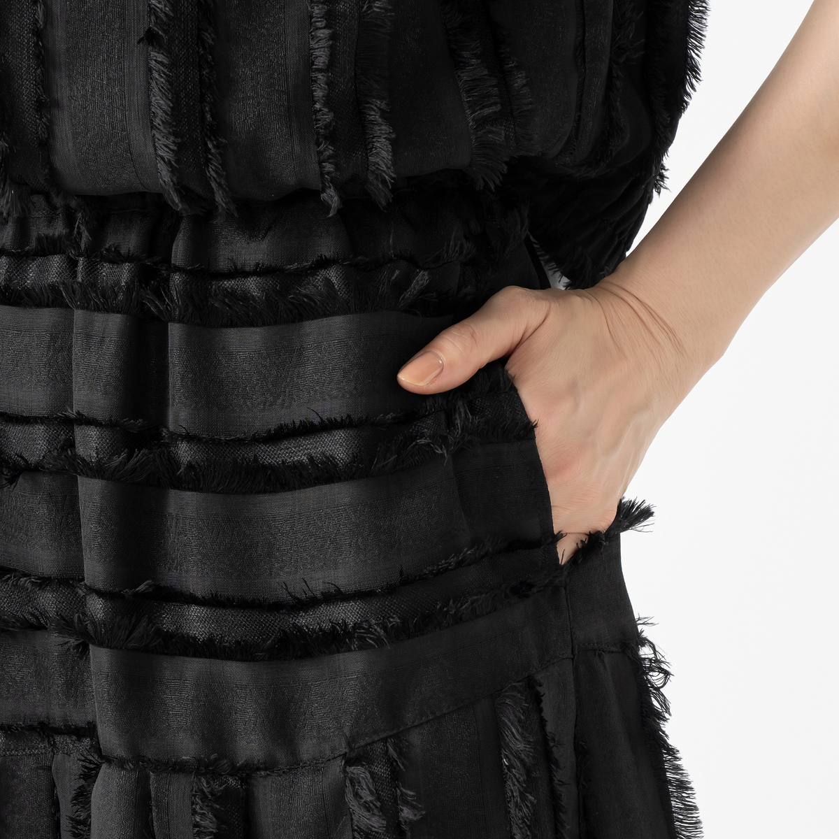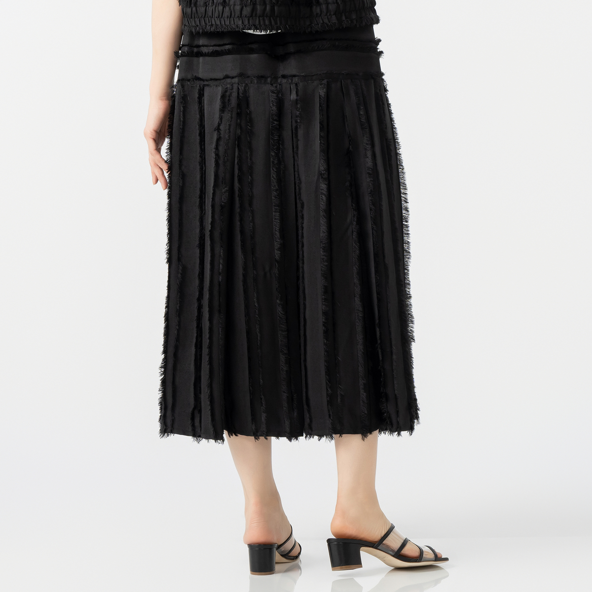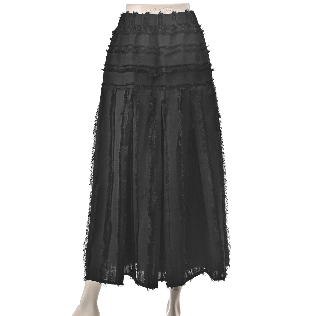 華やかなカットジャガードで仕立てたスカート。繊細なフリンジでストライプ柄を立体的に表現しました