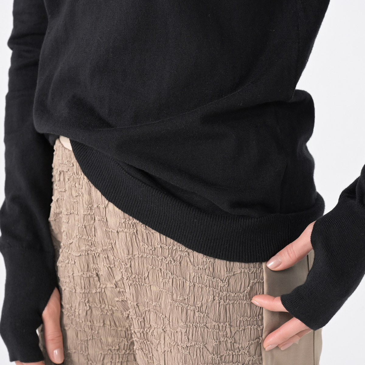 シンプルながらも洗練されたデザイン。淡色は透け感があります。カジュアルからきれいめまで幅広いコーディネートに活躍します