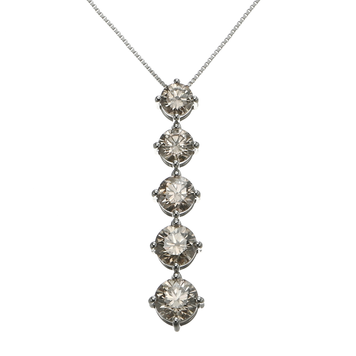 大粒のダイヤモンドを5pcs使用し、ダイヤモンドのサイズがグラデーションになるようにセッティングしたシンプルなペンダントです。胸元で華やかに煌めき、装いをクラスアップさせてくれます