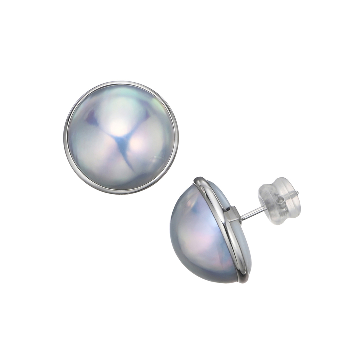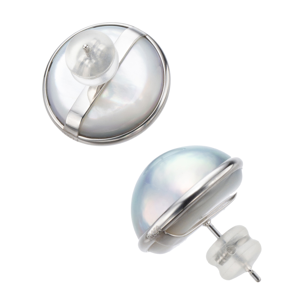奄美大島産の美しいマベパールを使用したイヤリングまたはピアス。15.0mmUPのマベパールを使い、洗練されたデザインに仕上げました