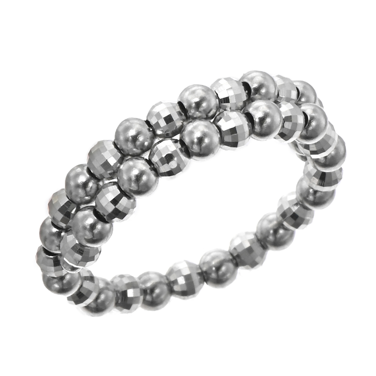 シンプルな純プラチナのフリーサイズリング。ミラーボールとプレーンボール、2種類を交互に連装しました。お手持ちのリングとも相性よくお使いいただけます
