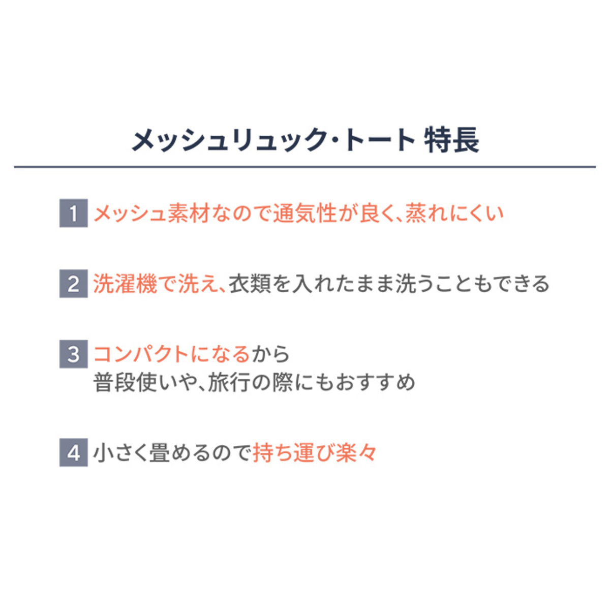 通気性の良いメッシュ素材のトートバッグ。約250gと軽量で持ち運びやすく、小さく折り畳めるので、普段のお買い物はもちろん旅行などにもおすすめです