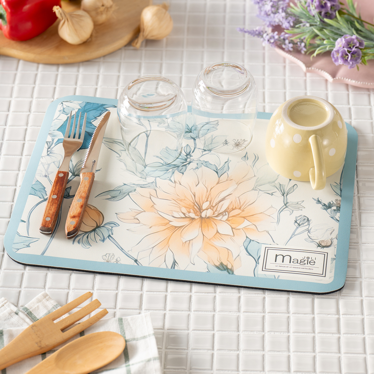 [商品内容] ・ホルダー本体 ・水切りマット [サイズ(約)] ホルダー:幅7.7×奥行9.6×高さ35cm 水切りマット:幅40×奥行30×厚さ0.5cm [重量] 水切りマット:320g ホルダー:170g [材質] ホルダー本体:スチール 水切りマット:ポリウレタン、珪藻土フォーム、天然ゴムなど [注意事項] ※本来の目的用途以外には使用しないでください。事故や破損の原因となります ※段差や不安定な場所での使用はしないでください。破損等の原因となります ※平らでガタツキのない硬い場所に設置してご使用ください ※火気のそばへの設置はおやめください。火事や事故の原因となります ※製品の性質上、多少ゴムのにおいがする場合がございます。ご了承ください ※直接お湯を掛けないでください。縮み、剥がれ、劣化の原因となります ※長時間お湯や水に浸したり、大量にお湯や水をかけ続けたりしないでください。縮み、劣化の原因となります ※天日干し、暖房機器での乾燥はしないでください。縮み、剥がれ、劣化、破損の原因となります ※界面活性剤を含む洗剤は絶対に使用しないでください。目詰まりや破損の原因となります ※色が付いた水分等を吸収した場合は、シミとして色が残る場合がございます。ご注意ください ※乱暴な扱いは、商品を早く劣化させたり、縮み、剥がれ、破れの原因となります。ご注意ください ※お子様の手の届く場所には置かないでください。また、お子様のいたずらには十分ご注意ください。大きな事故や怪我の原因となります ※本製品を移動させる場合は、必ず持ち上げてから移動させてください。そのまま引きずると、シンクやテーブル面など天板を傷つける原因となります 【中国製】