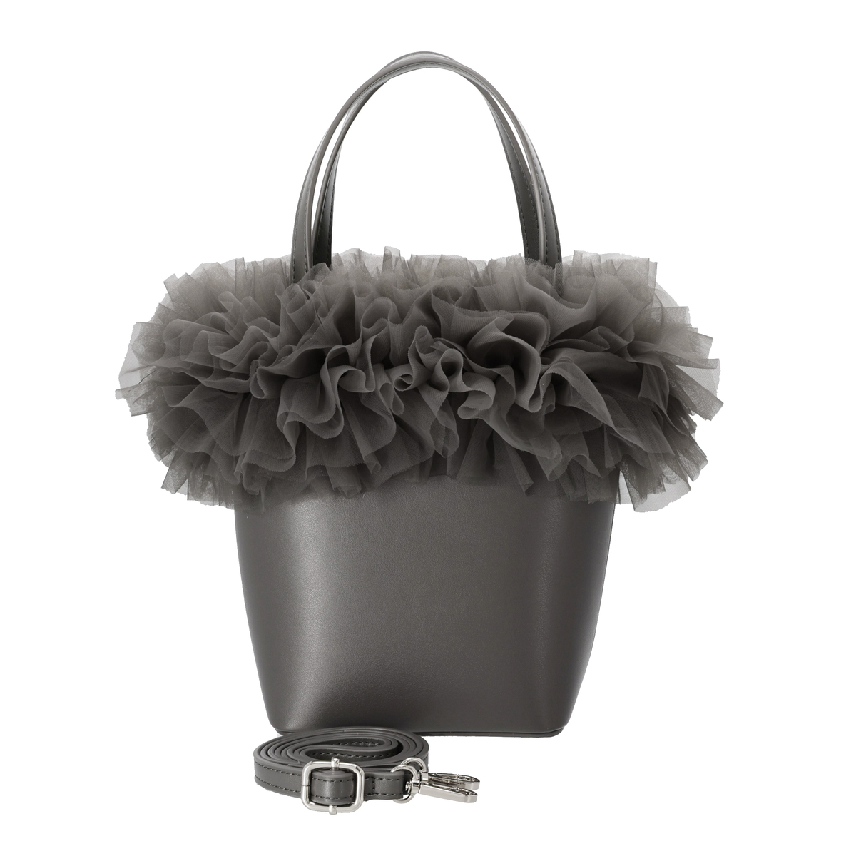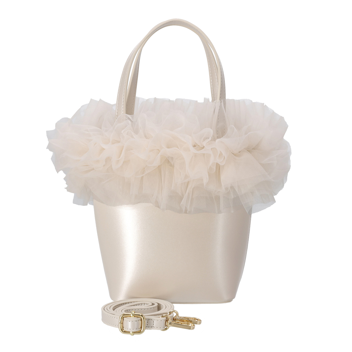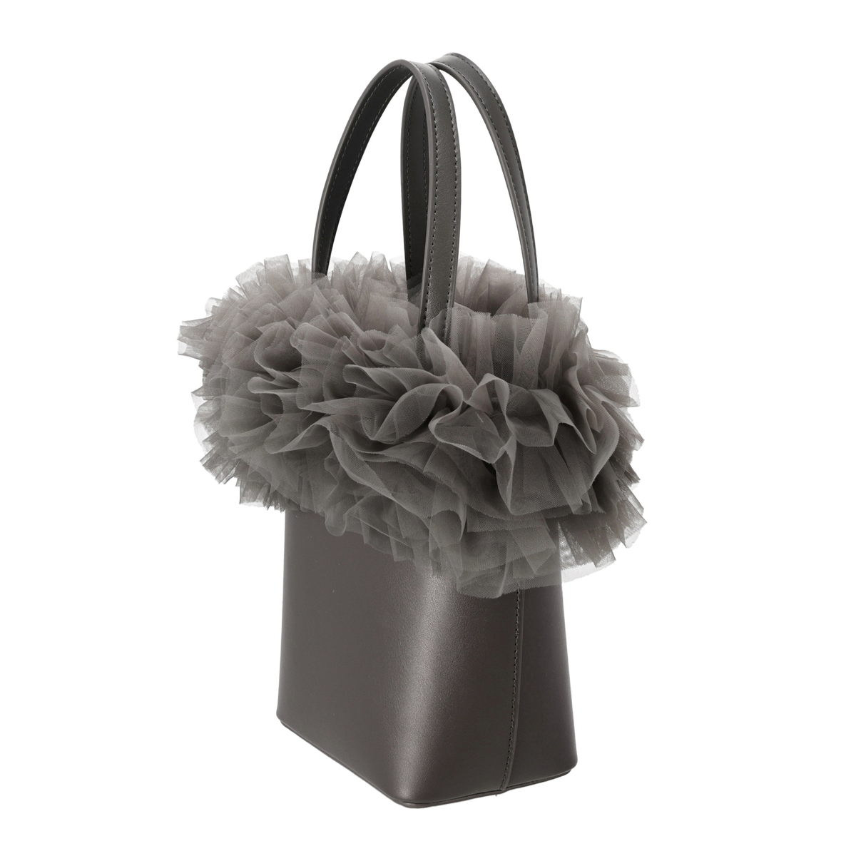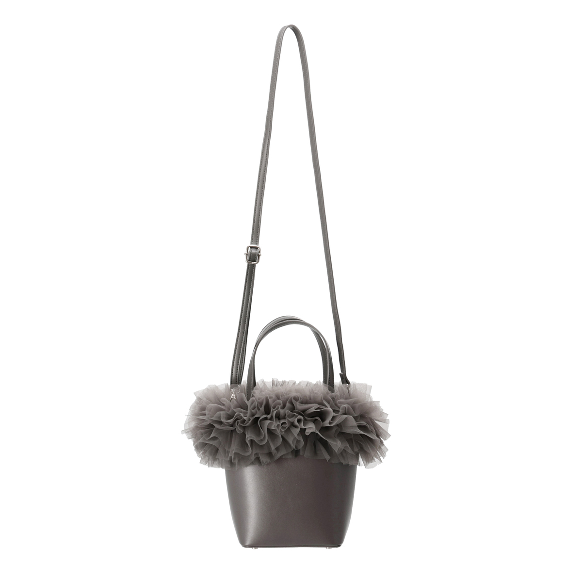 ボリューム感たっぷりのチュールをあしらったバッグ。シンプルなコーデに合わせるだけで華やかさをプラスしてくれます