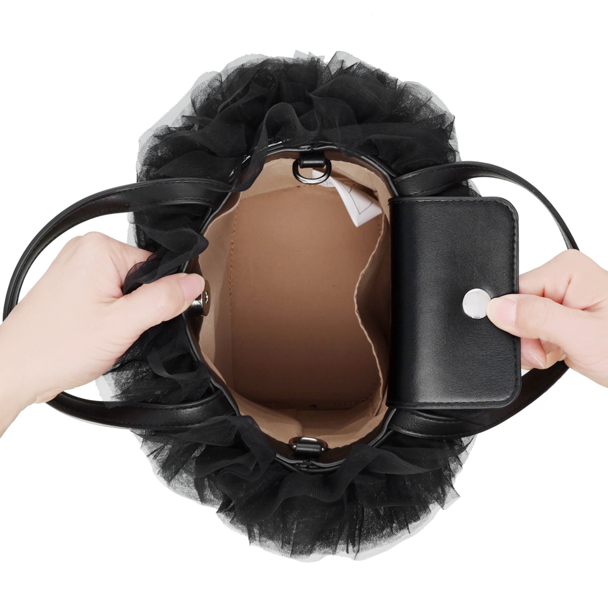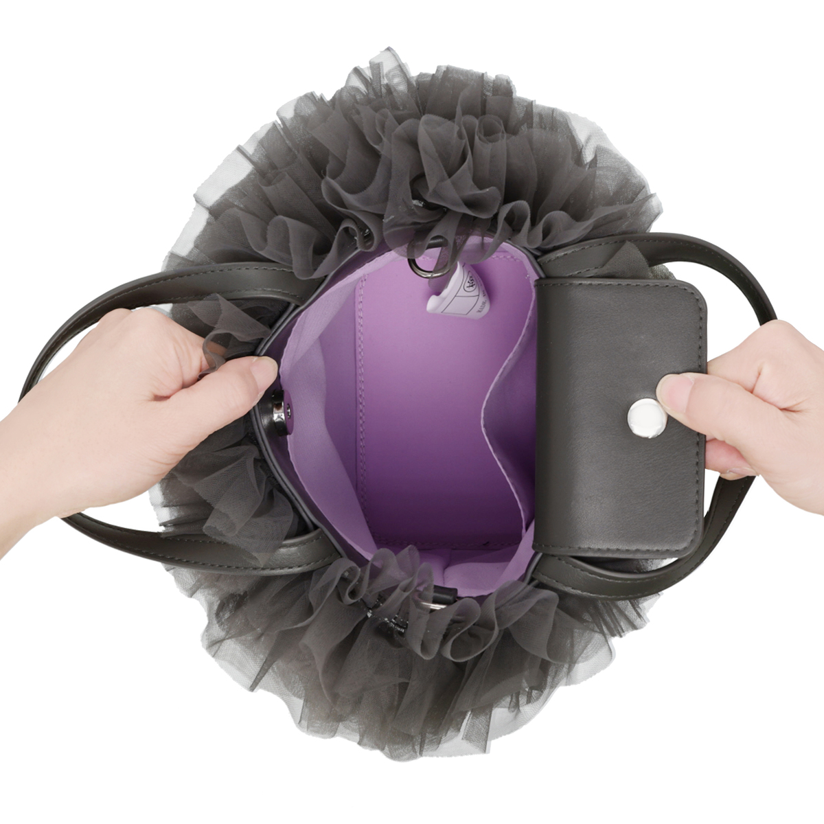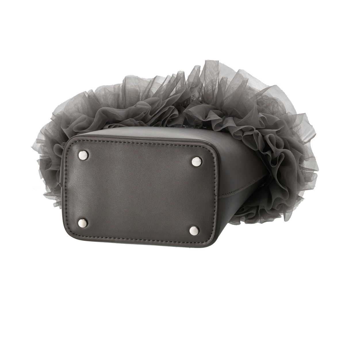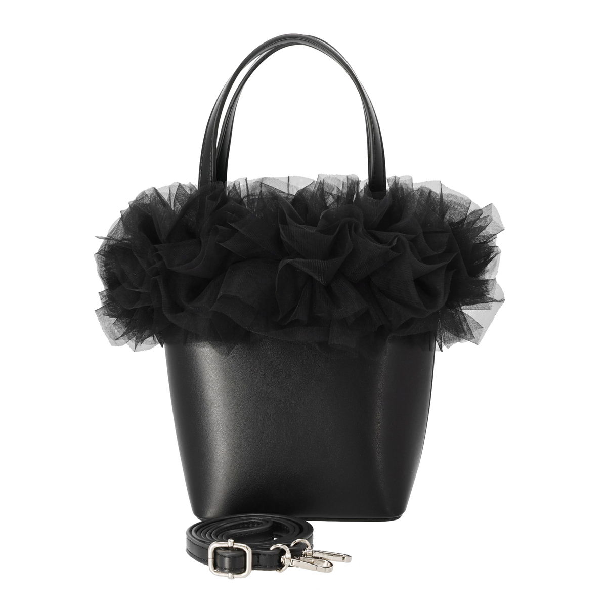 ボリューム感たっぷりのチュールをあしらったバッグ。シンプルなコーデに合わせるだけで華やかさをプラスしてくれます