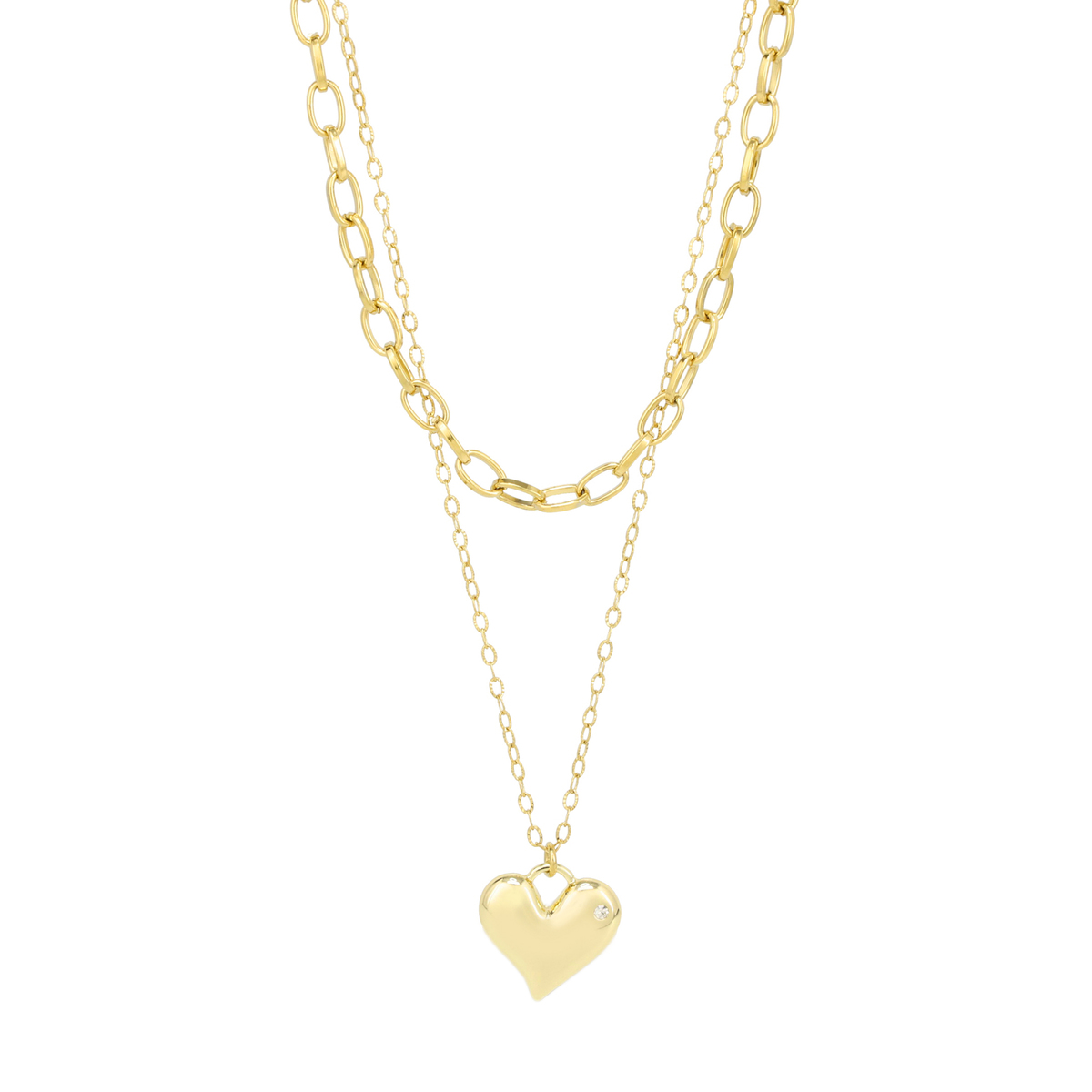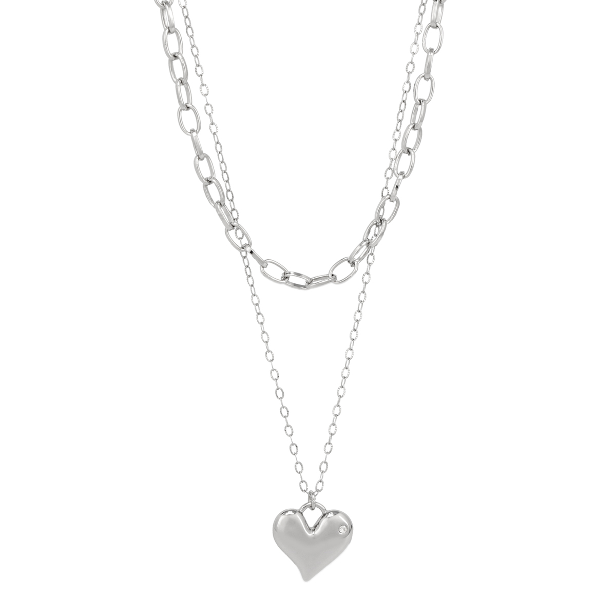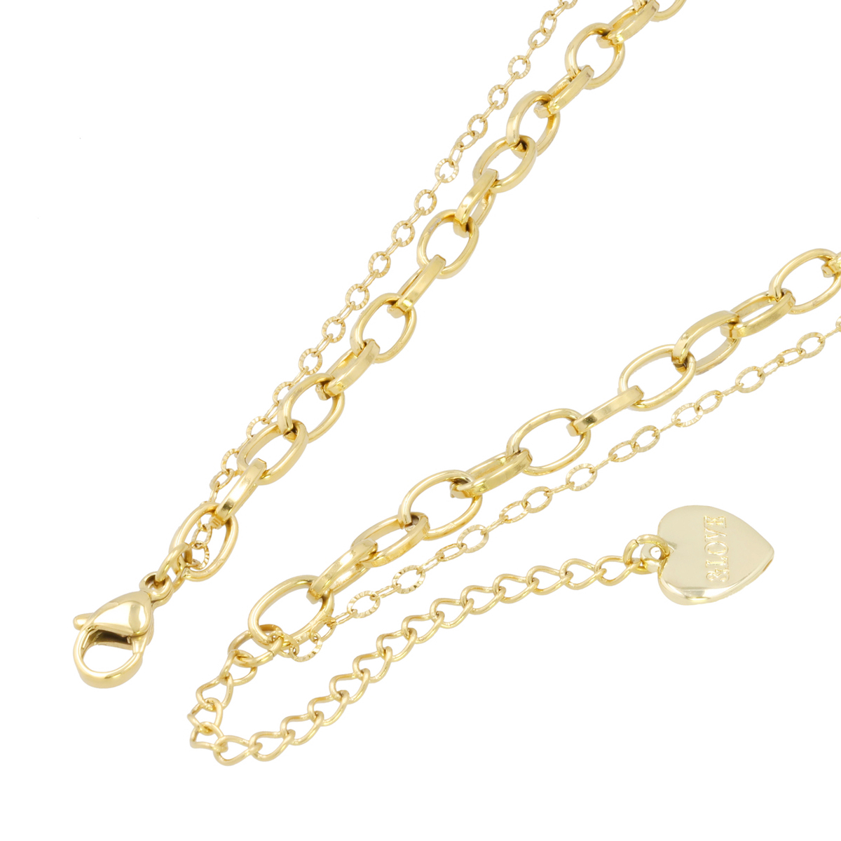 華やかなハートモチーフが魅力のネックレス。小ぶりながらもラインストーンがきらりと光り、2連仕様が首元に立体感をつくります。アジャスターで長さ調整ができ、幅広いコーデに馴染む仕上がり。&LOVEロゴ入りのミニハートが揺れ、さりげない可愛さを添えてくれます