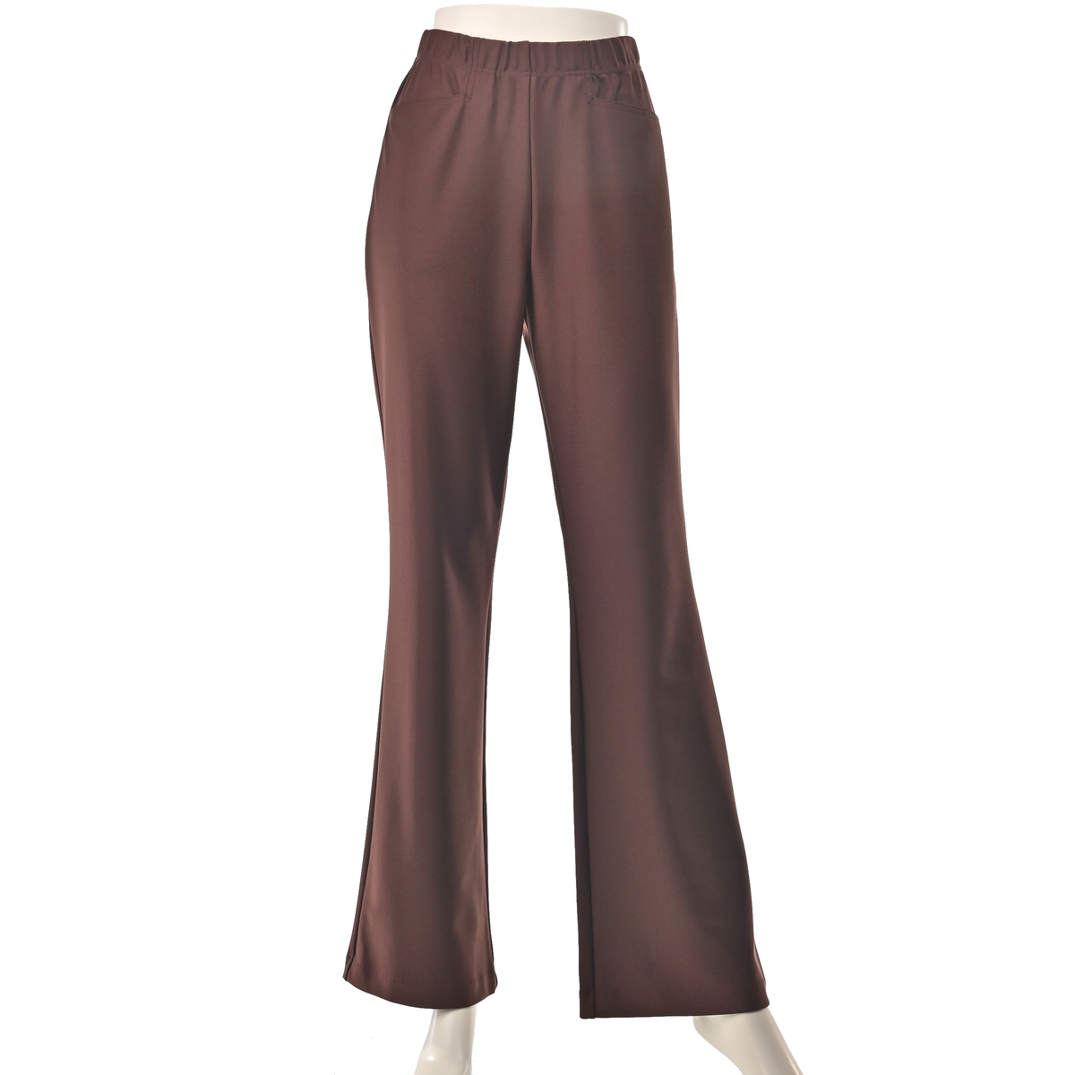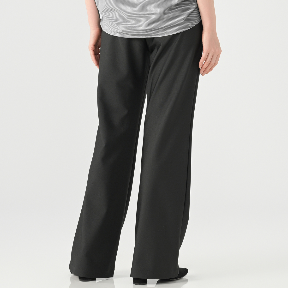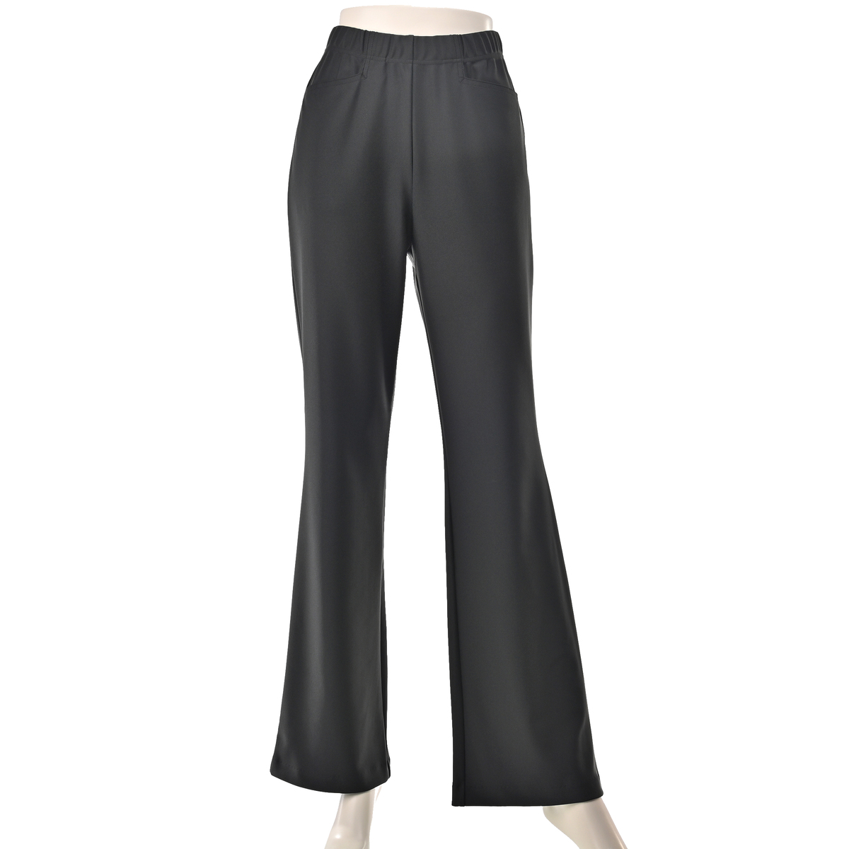 立体的なパターン設計で穿き心地にこだわったブーツカットパンツ。タテ・ヨコ・ナナメにストレッチ性があり締めつけ感が少なく、総ゴム仕様のウエストは立体的な作りでお腹周りをすっぽり包んでくれます