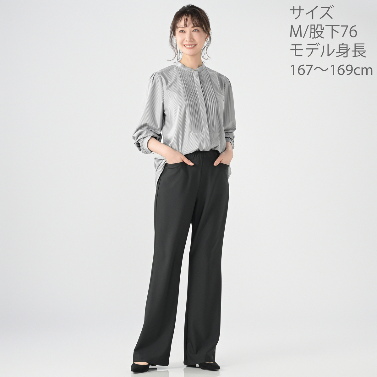 [商品寸法(ヌード)cm] サイズ ウエスト ヒップ S : 65(58〜64) 89(82〜90) M : 69(64〜70) 93(87〜95) L : 73(69〜77) 97(92〜100) LL : 77(77〜85) 101(97〜105) 3L : 81(85〜93) 105(102〜110) サイズ 前股ぐり わたり幅 S : 27 28.5 M : 28 29.5 L : 29 30.5 LL : 30 31.5 3L : 31 32.5 股下:64/68/72/76 [股下身長目安] 股下:64cm(身長150cm目安) 股下:68cm(身長155cm目安) 股下:72cm(身長160cm目安) 股下:76cm(身長165cm目安) [ウエストゴム] 全体に有 [素材] ポリエステル89% ポリウレタン11% [お手入れ] 洗濯機洗い可 [注意事項] ※商品寸法の誤差は多少発生します。ご了承下さい ※無蛍光洗剤使用 ※洗濯ネット使用 ※単独洗濯で色落ちに注意 ※移染に注意 ※形を整えて日陰干し ※アイロンは、当て布を使用 ※タンブラー乾燥禁止 ※ドライクリーニング禁止 【日本製】