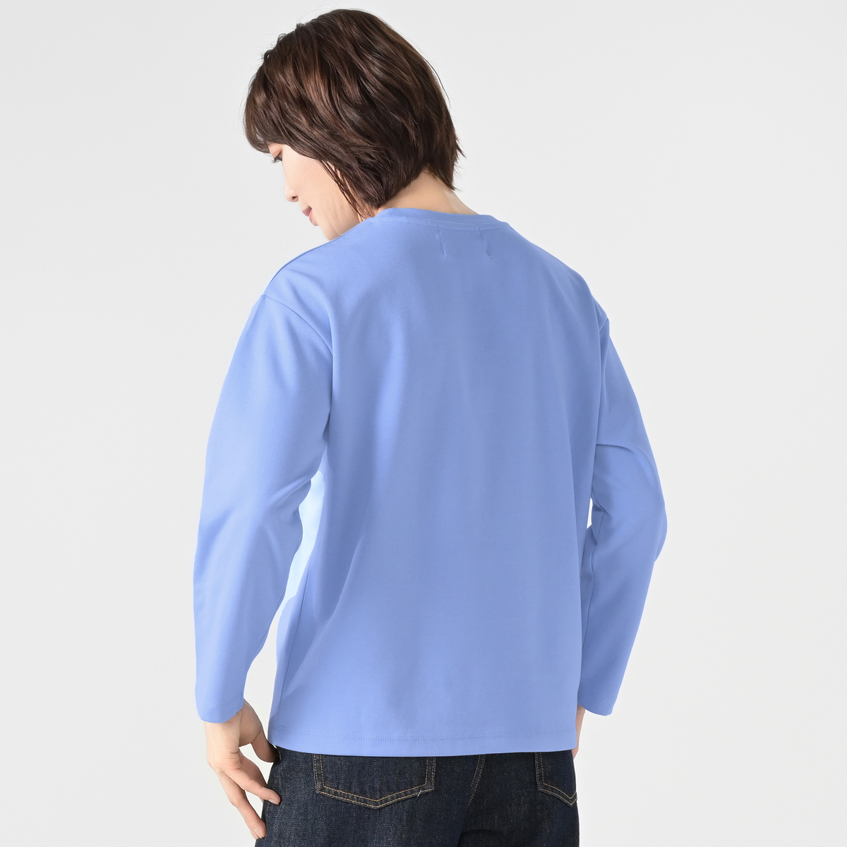 サラッとした肉厚なカット素材を使用。きれいに見せながらも、寒さが残る季節にも適しています。シンプルなコーディネートにも映えるデザインです