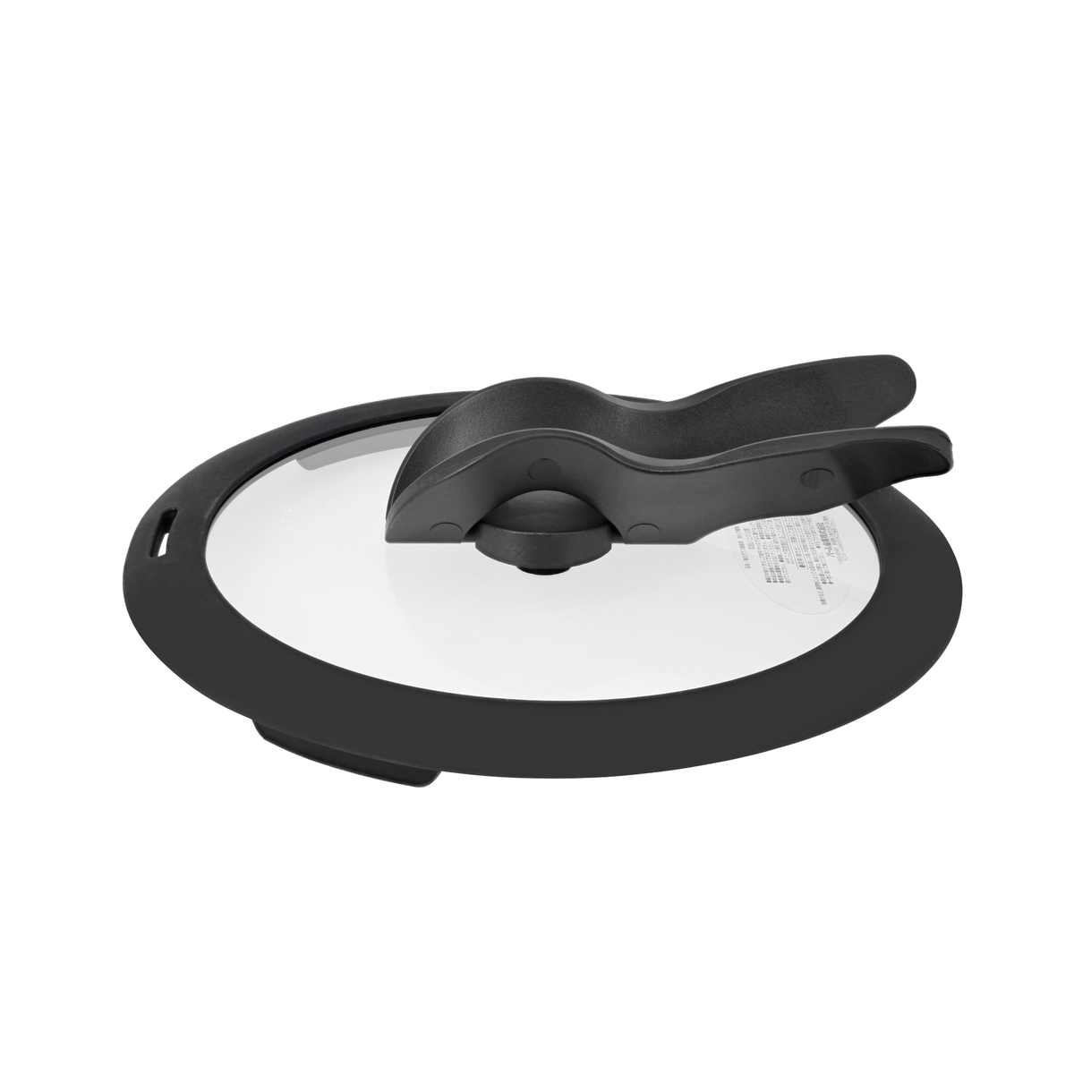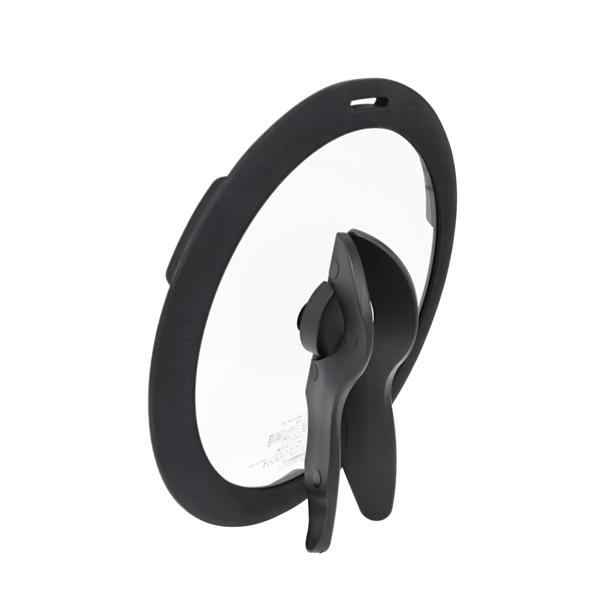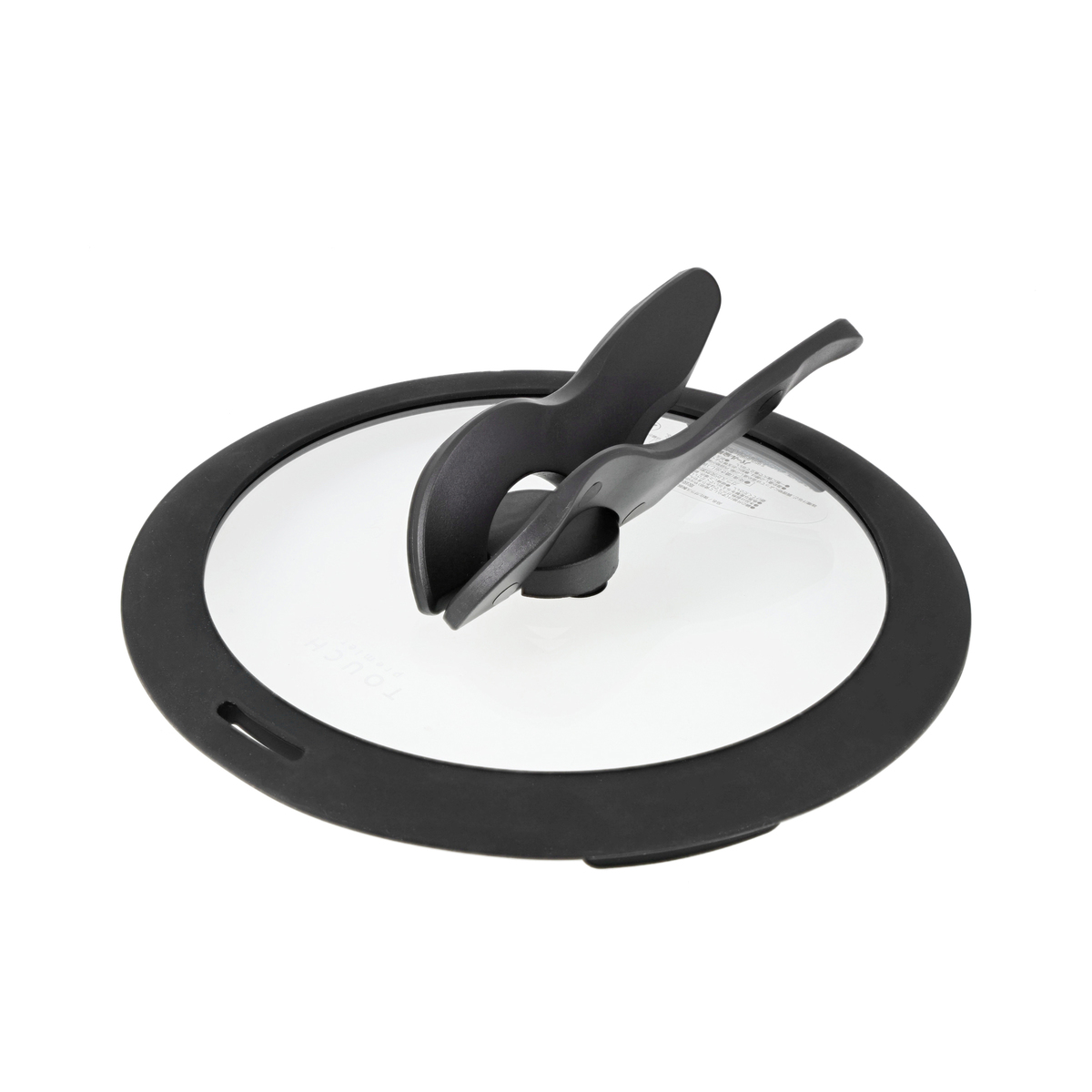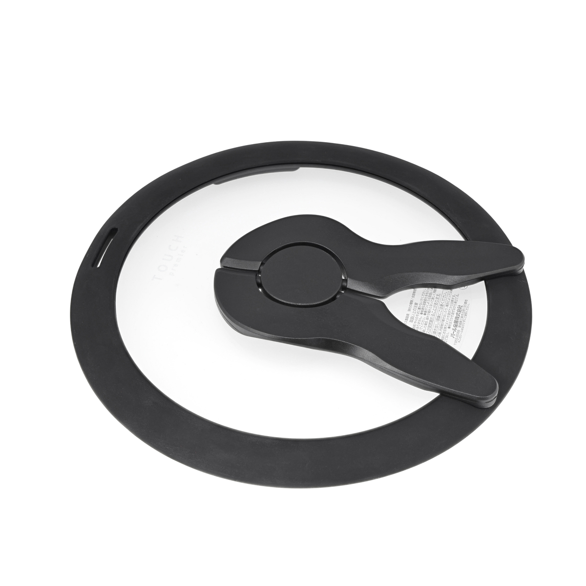 取っ手を起こすだけで自立する、フライパンや鍋用のガラス蓋。中が見やすく、調理中に焼き具合を確認できます