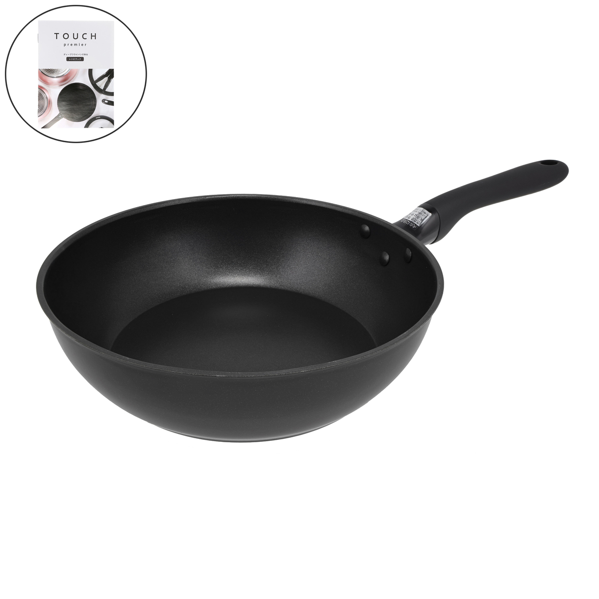 パール金属株式会社TOUCH Premierシリーズのディープフライパン。鍋、フライパンとしての用途に適した深さで、一つで焼く、煮る、炒める、蒸す、炊く調理が可能です(*1)