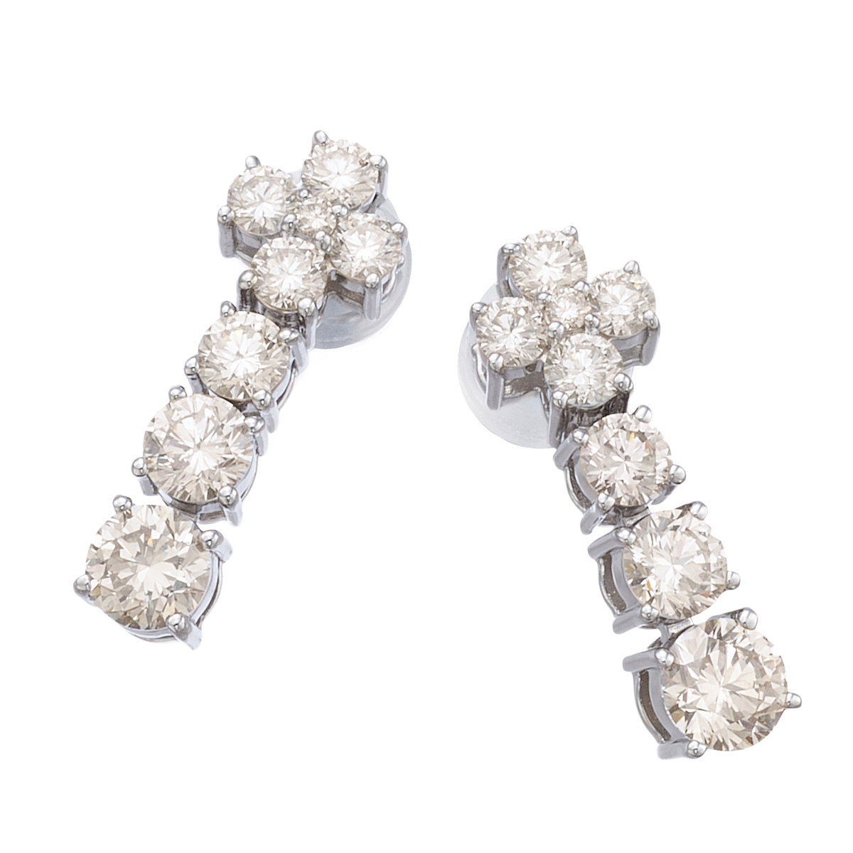 テリにこだわったシャンパンカラーダイヤモンドを使用したイヤリングまたはピアス。日光や絞ったライトのもとでも美しく輝き、ダイヤモンドの魅力を引き立てるようなデザインに仕上げました