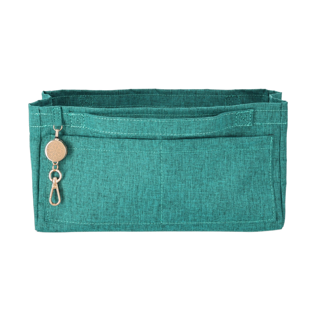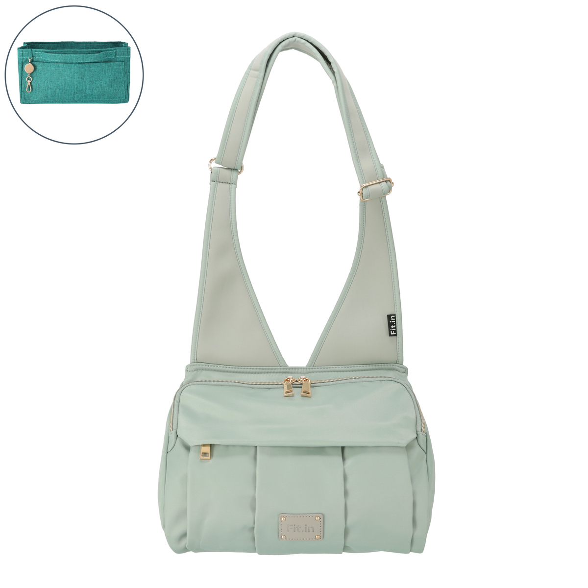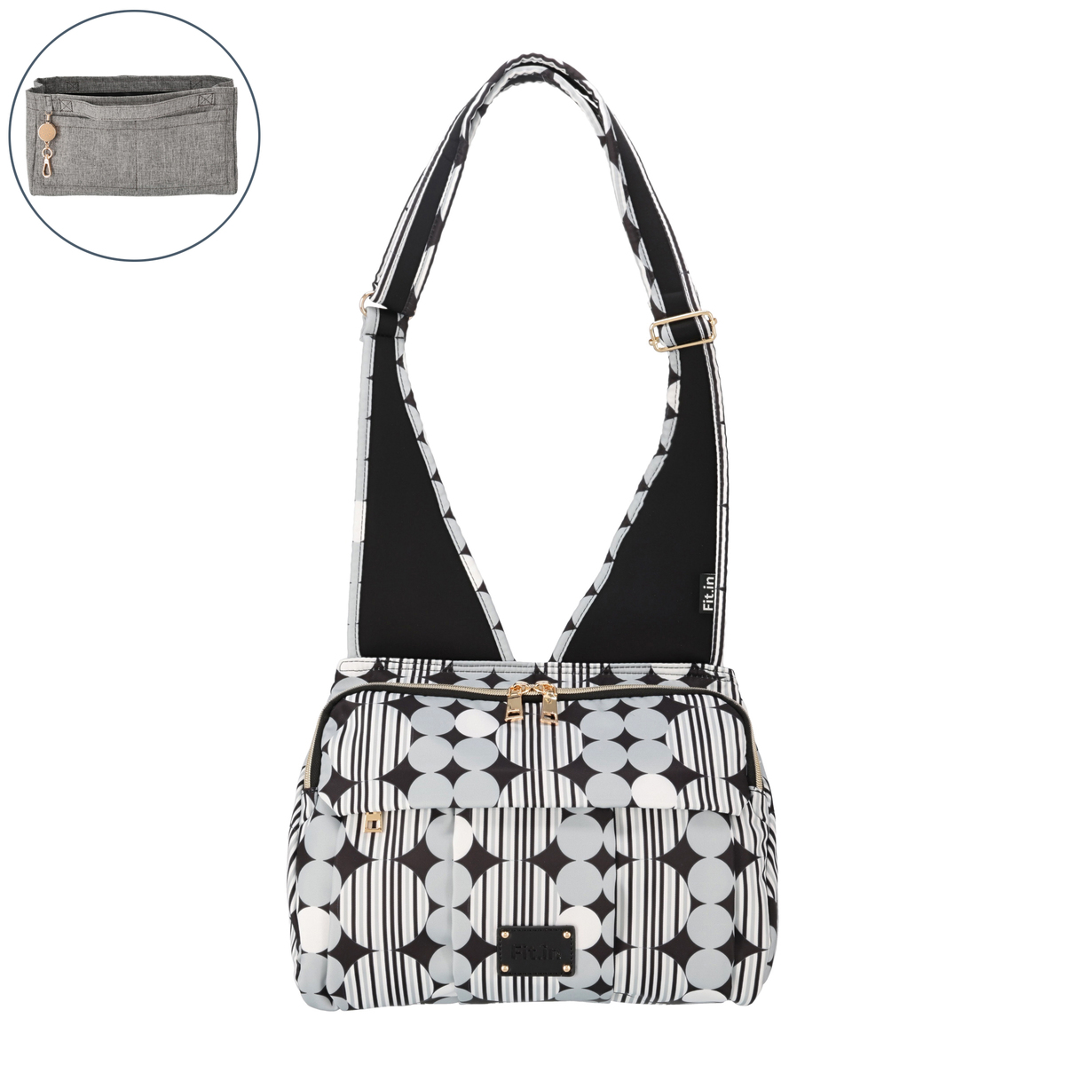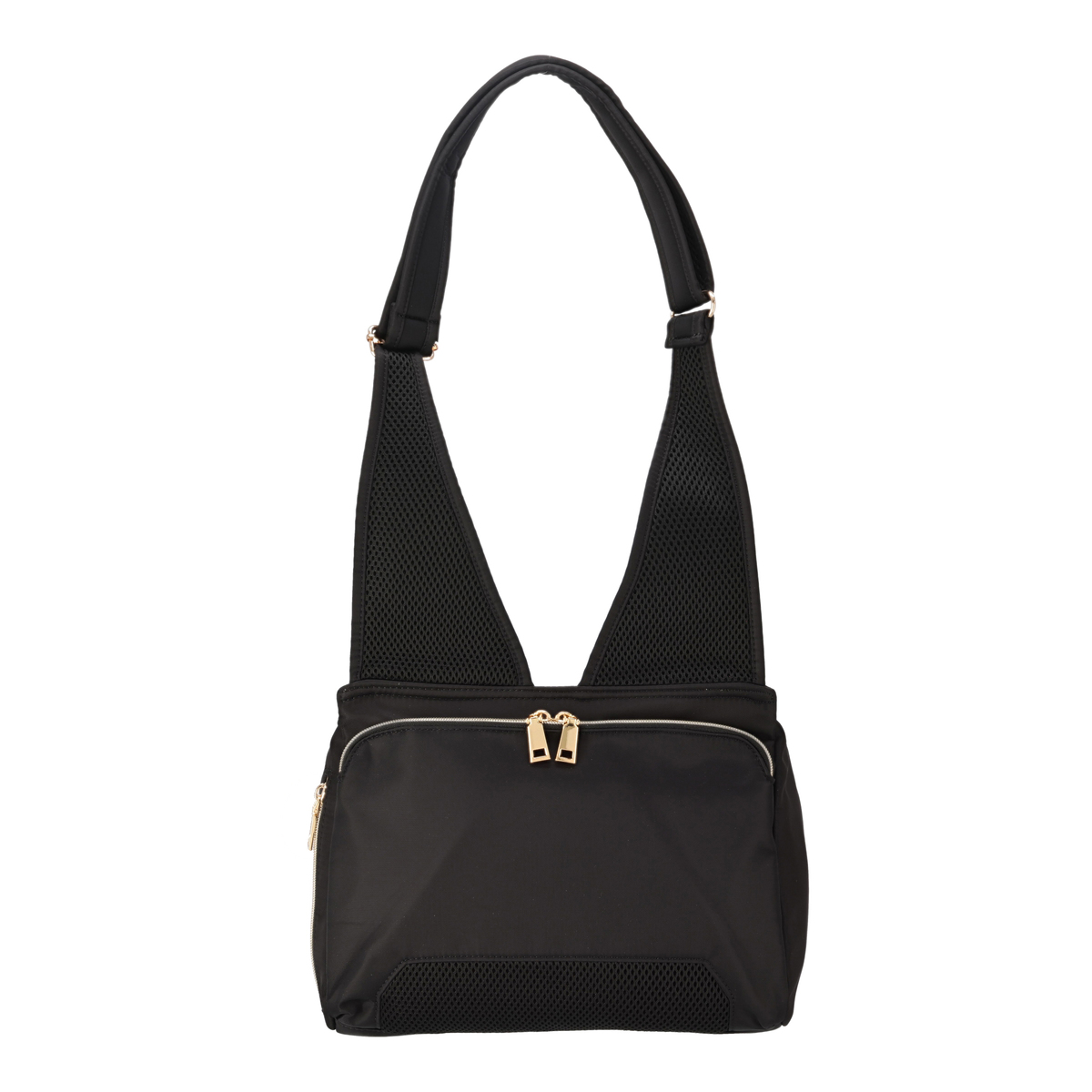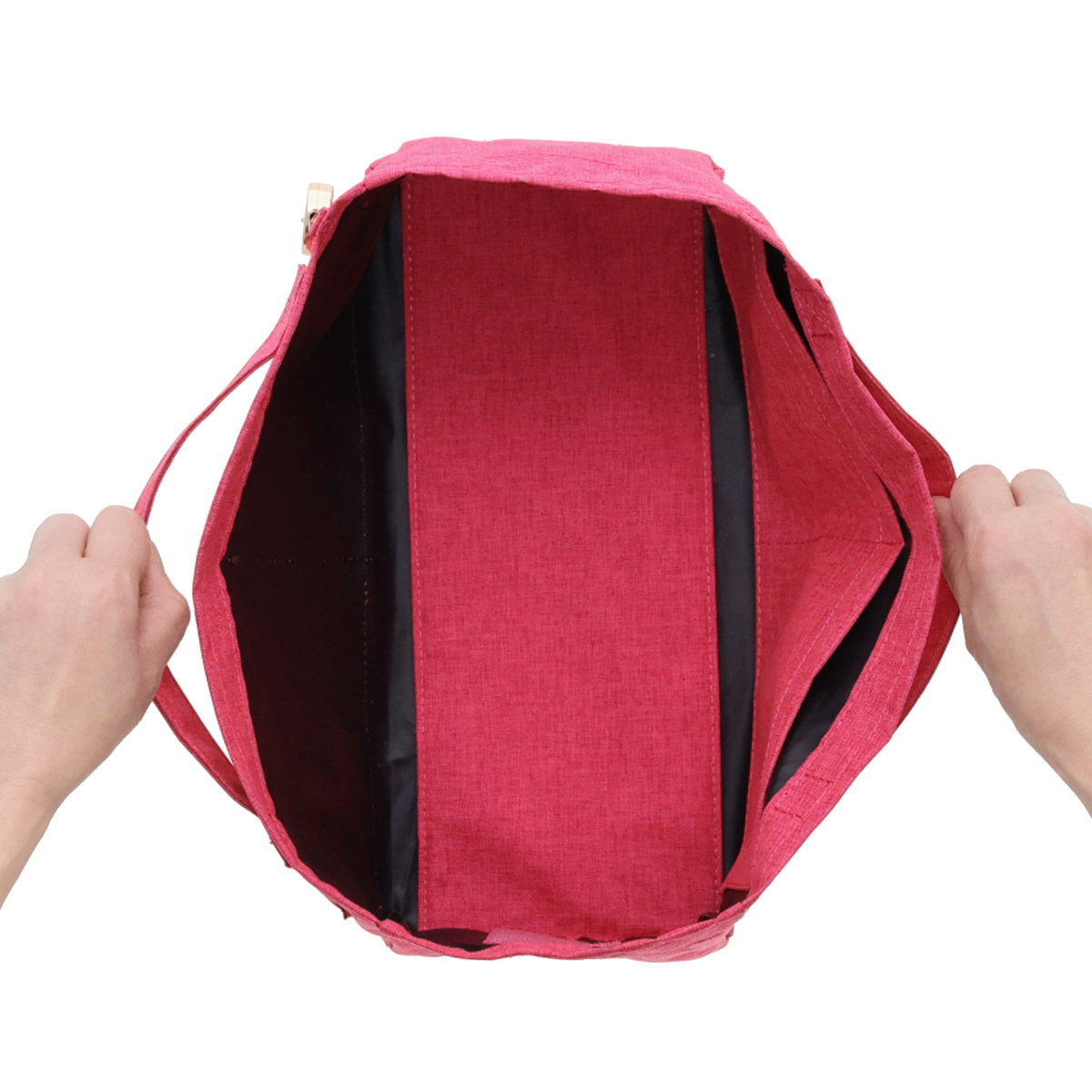 開口部はファスナー仕様で開け閉めが簡単です。フロントには隠しポケットが付いています。バッグの中身を整理整頓できるバッグインバッグ付きで、必要なものをスムーズに取り出せます