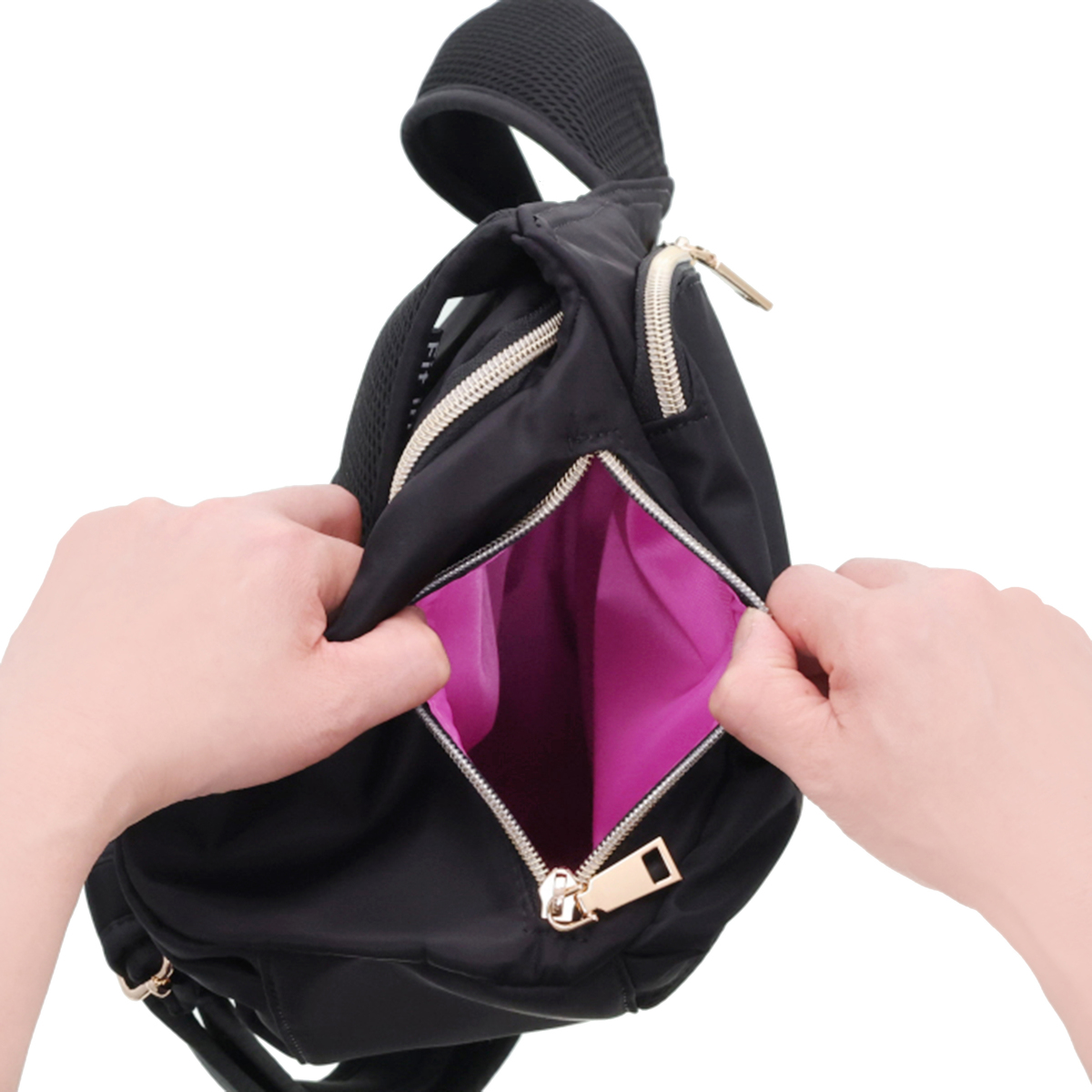 ショルダー部分は柔らかく伸縮性のあるネオプレーン素材。肩に優しくフィットし、負担を軽減。背中に当たる部分は通気性のあるメッシュ素材で、暑い夏でも、背中がムレにくい仕様です