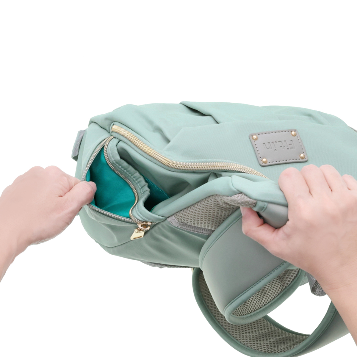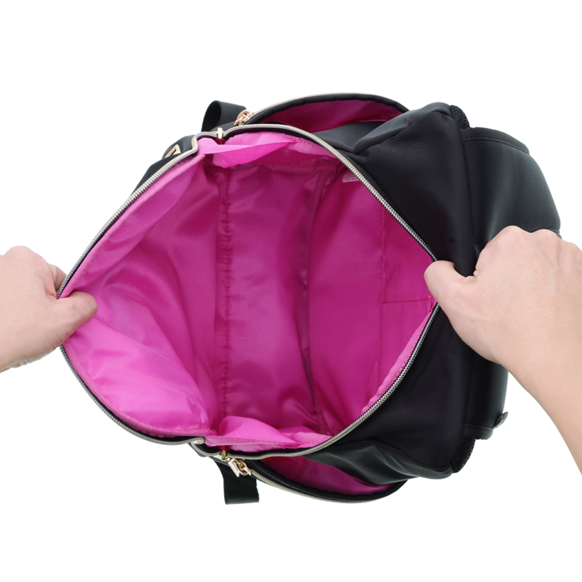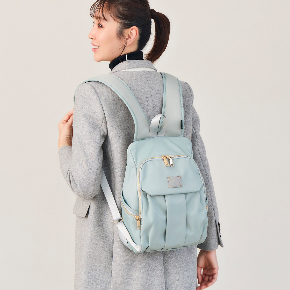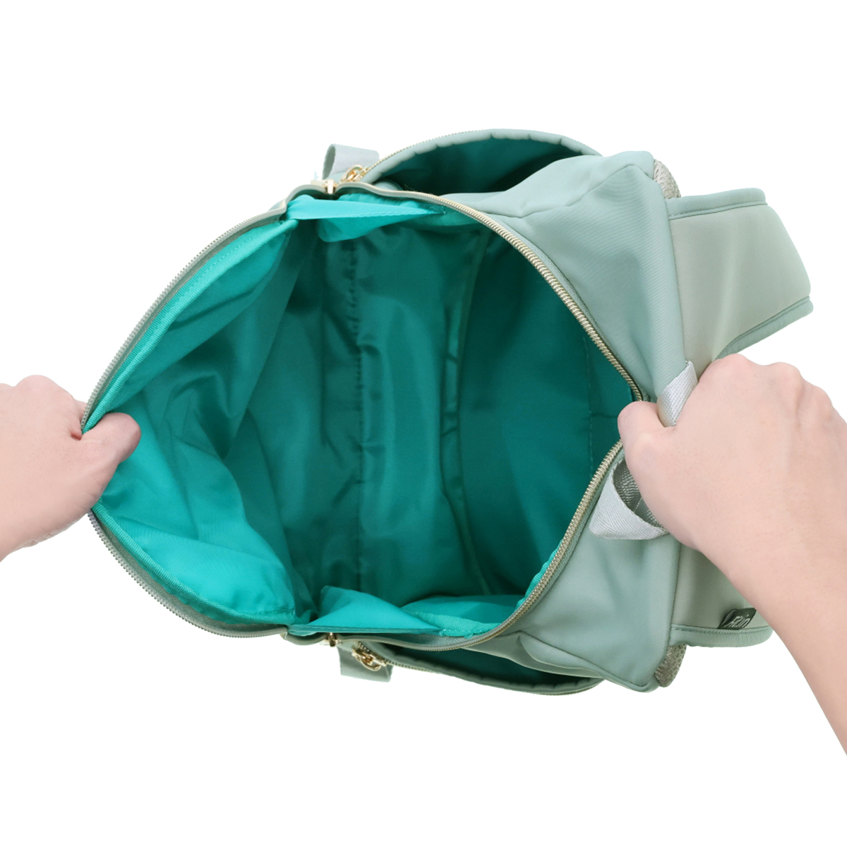 開口部は開け閉めしやすいファスナー仕様。フロントには隠しポケットが付いています