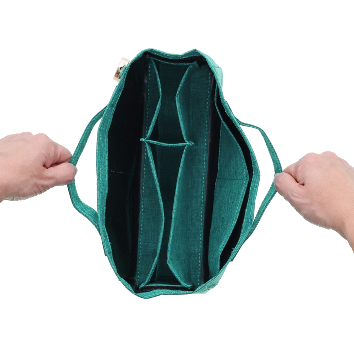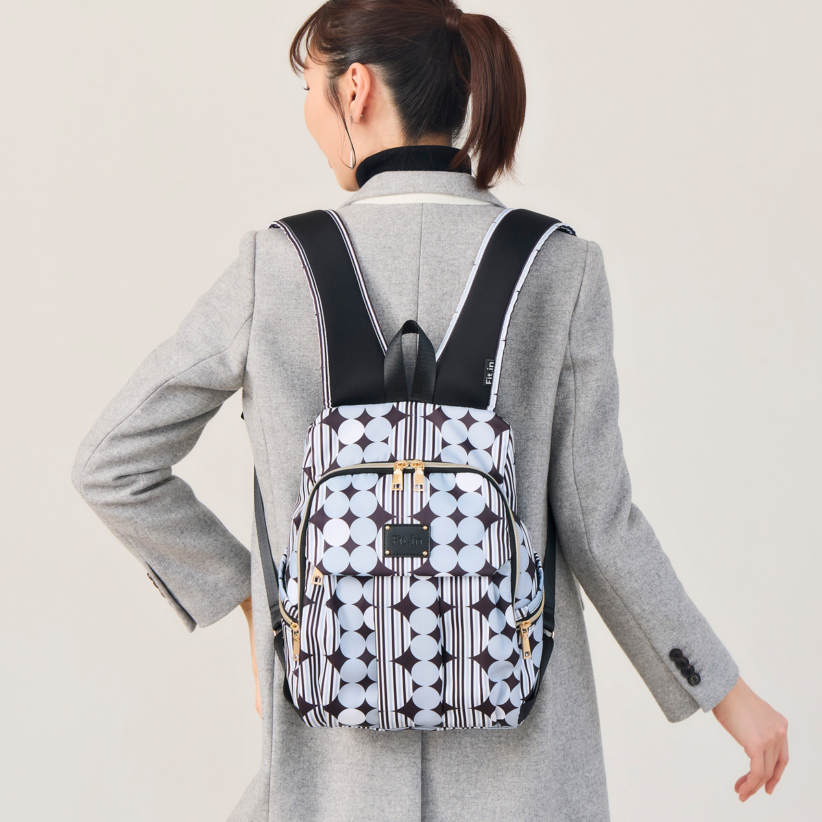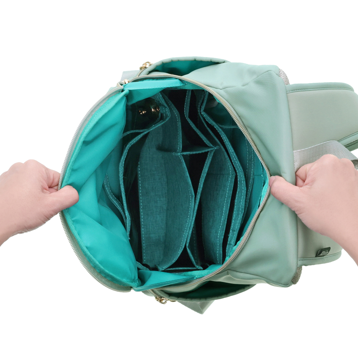 A4サイズや長財布、500mlペットボトル、ポーチなどが収納可能。また、バッグインバッグ付きで、荷物を整理して収納できます