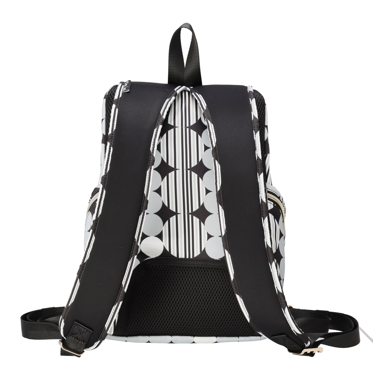 ショルダー部分は柔らかく伸縮性のあるネオプレーン素材。肩に優しくフィットし、負担を軽減します。小判カン可動式で、背負った時に自然とバランス良い位置で止まる仕様です