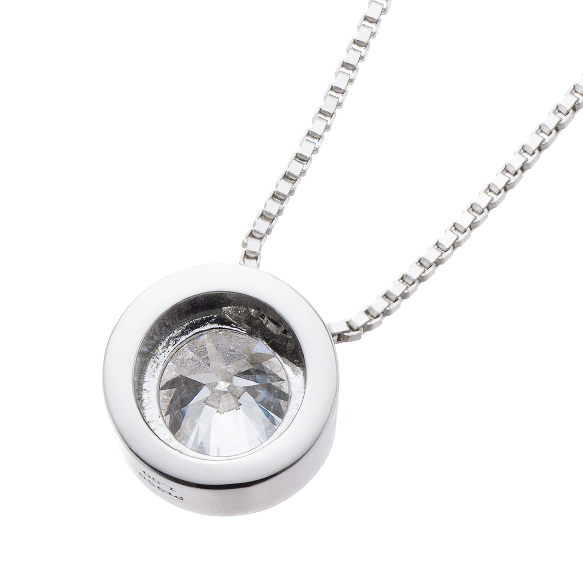 周りを縁で囲み、引っかかりが少なく、ダイヤモンドを大きく見せてくれるデザイン。スライド式アジャスター付きチェーンが付属し、幅広いシーンで活躍します