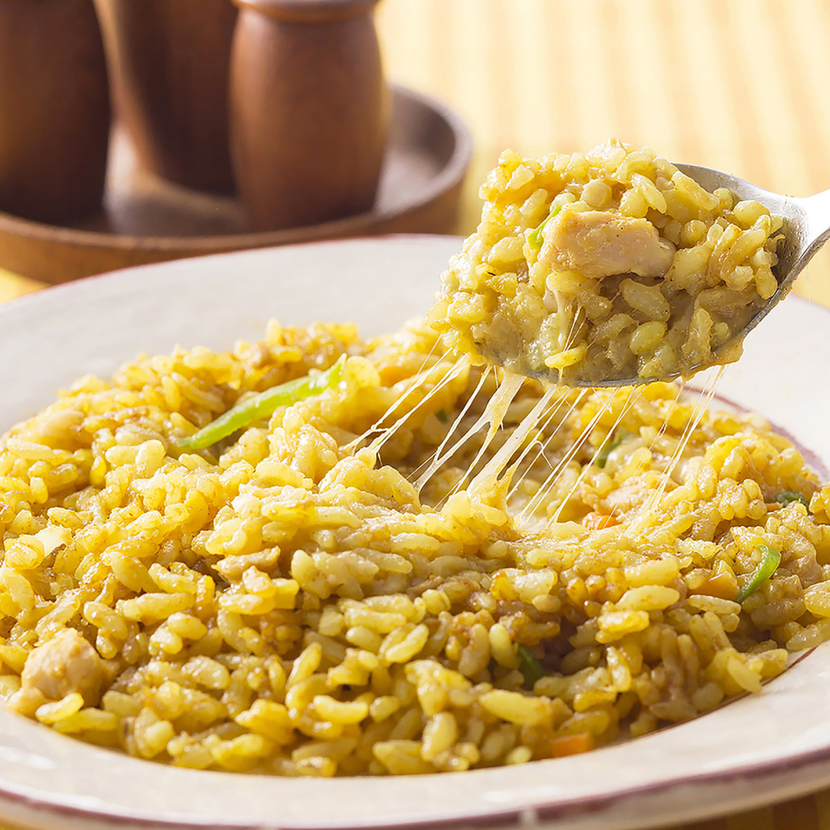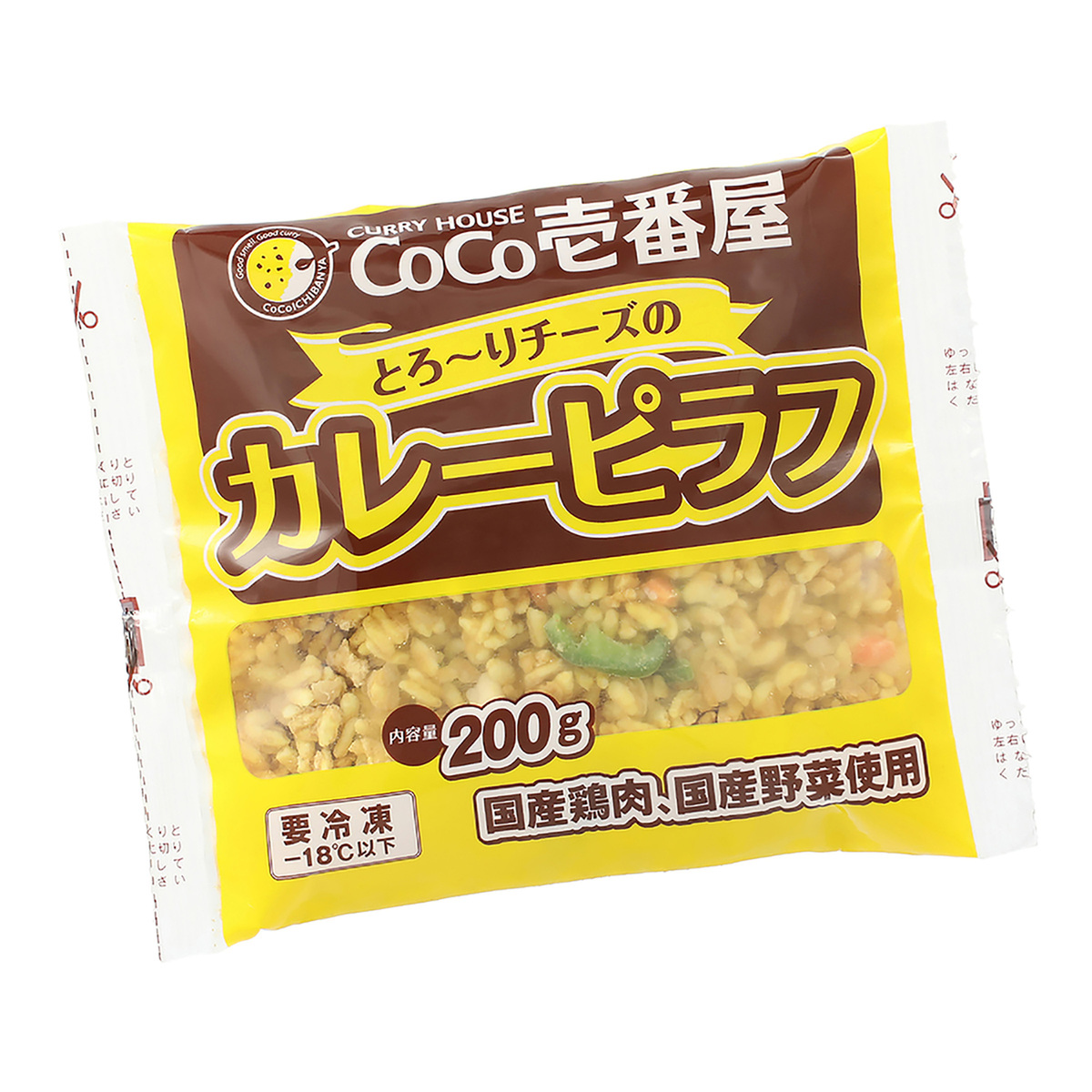 CoCo壱番屋監修の冷凍ピラフです。コクのあるカレーをベースに、トッピングにチーズを加えて、マイルドな辛さのピラフに仕上げました