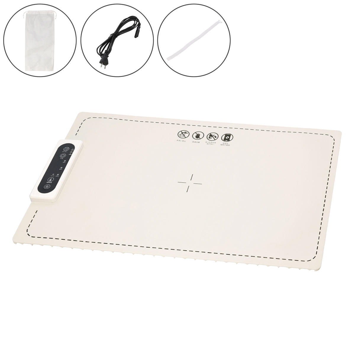 [商品内容] ・本体 ・電源ケーブル ・バンド ・収納袋 [サイズ] 61×38×2cm [重量] 1080g [材質] シリコン、ABS [コード長さ] 約150cm [消費電力] 約220W [使用方法] 1.本体を平らで安全な場所に広げます ※高温に弱い物(耐熱性のないプラスチック製品、ビニール生地等)の上では使用しないでください 2.電源ポートに付属の電源ケーブルを接続し、プラグをコンセントに差し込むと設定温度のランプが点滅します 3.プレート部分に温めたいものをのせます ※密閉した容器、耐熱性のない食器等は使用できません ※金属製の食器は高温になる可能性がありますので使用しないでください 4.電源ボタンを押すと電源が入り、プレートが温かくなっていきます。電源を切るには再度電源ボタンを押してください 5.温度変更ボタンを押すたびに設定温度を変更することができます ※使用する食器、容器の耐熱温度に合わせて温度設定をしてください 6.タイマーボタンを押すたびに自動で電源が切れる時間を変更することができます <使用後> 1.電源を切り、電源ケーブルを外します ※使用直後はプレートが高温になっていますのでご注意ください 2.15分ほど放置してプレートを冷ましてください 3.プレートが汚れた場合は水で濡らした布を硬く絞り、拭いてください ※本製品は水洗いできません。漂白剤など酸性の薬剤は使用しないでください 4.プレートが冷めたことを確認し、プレートを巻いて付属のバンドで留めて保管してください ■取り扱い説明を充分にご確認の上、ご使用下さい 【中国製】