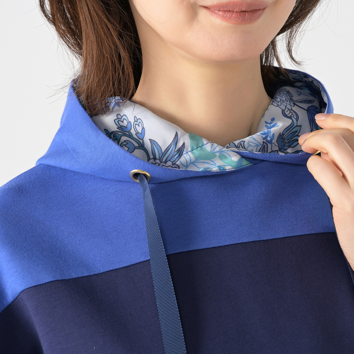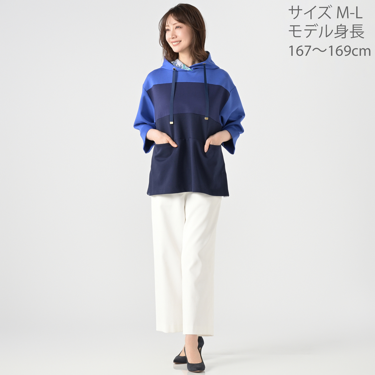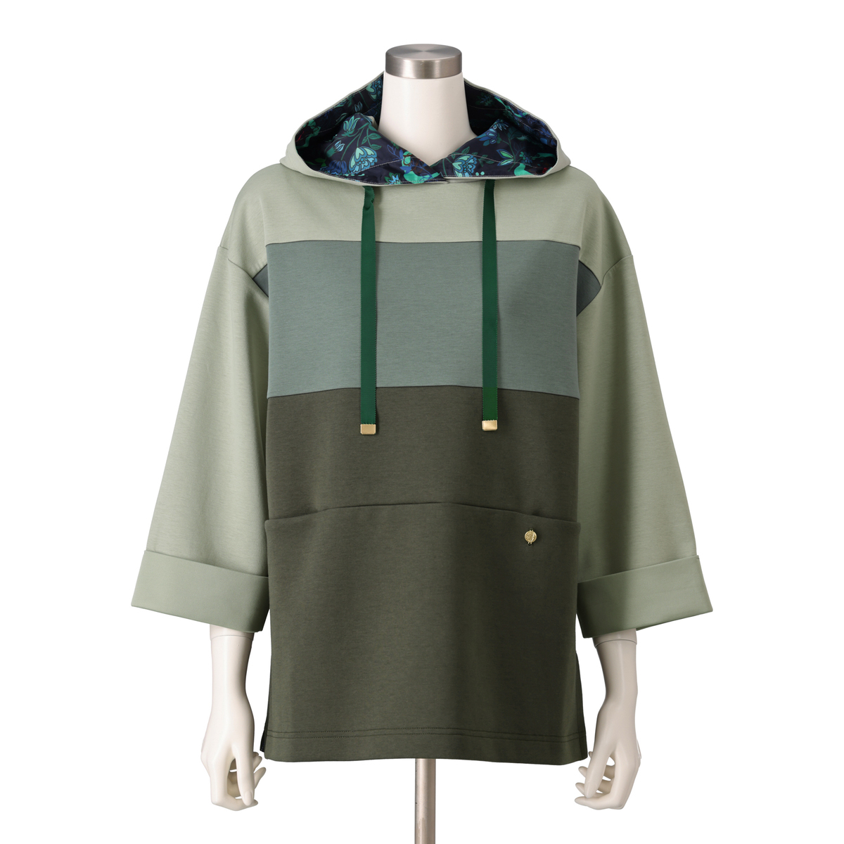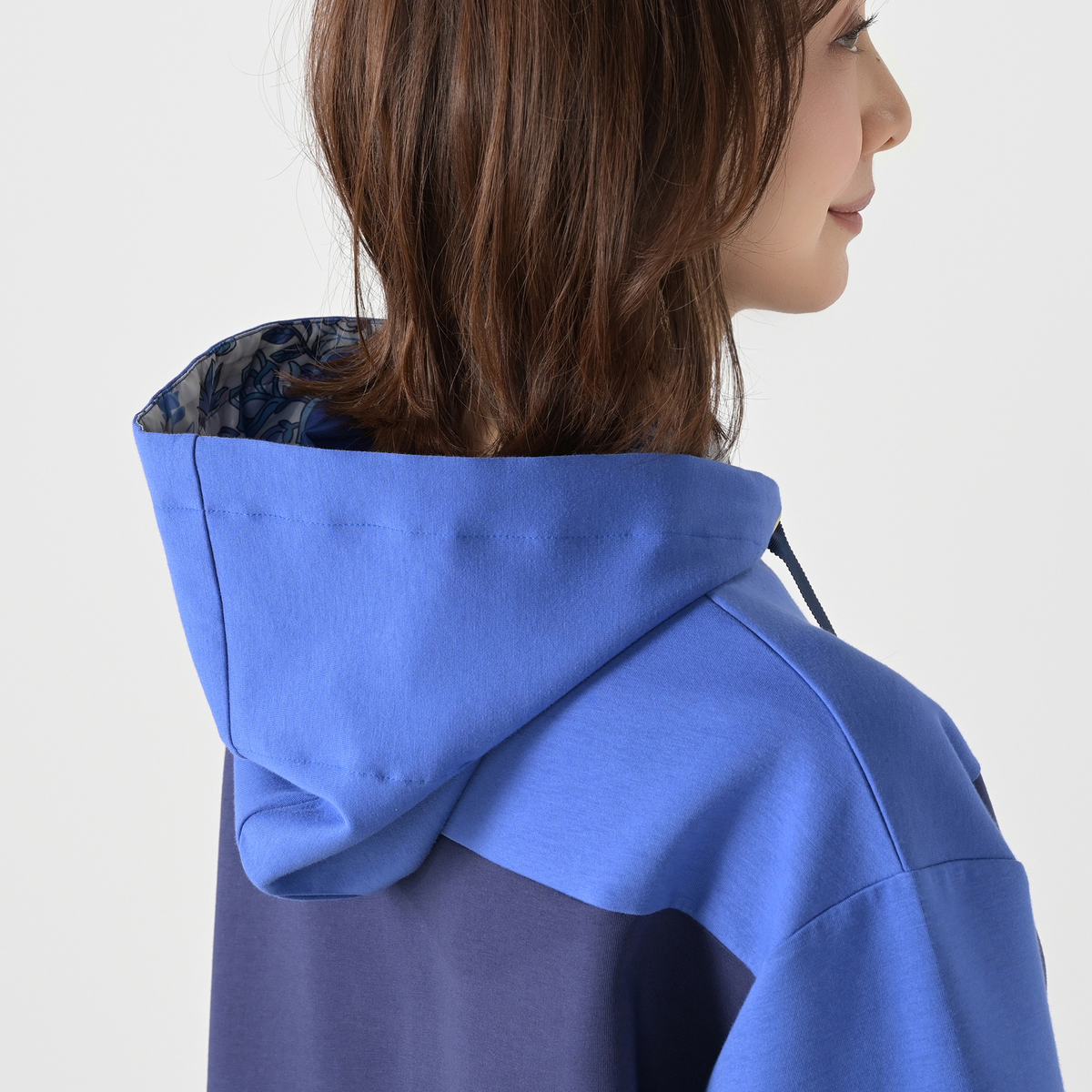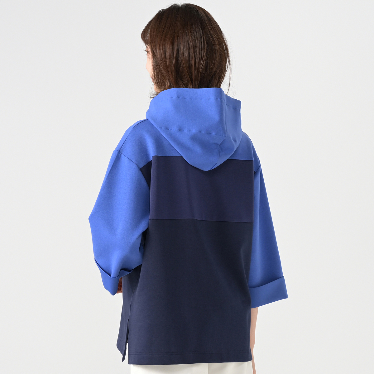 軽くて柔らかなストレッチスムース生地を使用したフーディトップス。ほどよい伸縮性があり、なめらかな素材で肌ざわりが良く、快適な着心地です