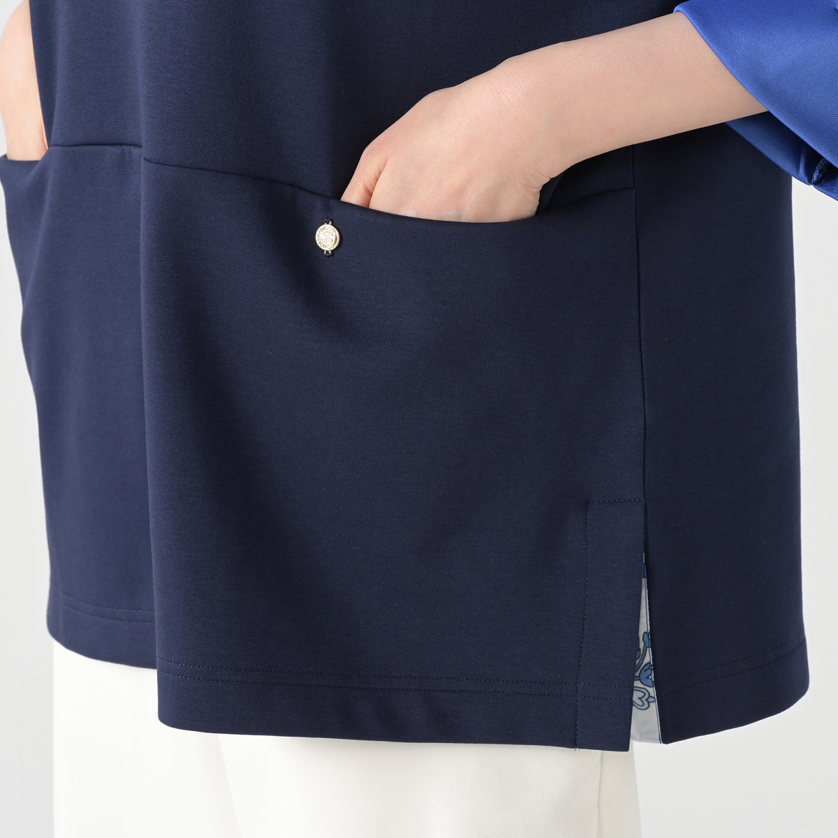 [商品寸法(ヌード)cm] サイズ バスト 着丈 裄丈 SS〜S:102(65〜80) 60.5 61 M〜L:110(79〜94) 62.5 63.5 LL〜3L:118(93〜108) 64.5 66 [素材] 表地:綿 52% ポリエステル 40% ポリウレタン 8% 別布:ポリエステル 100% [お手入れ] 手洗い可 [注意事項] ※商品寸法の誤差は多少発生します。ご了承下さい ※クリーニングネットを使用して下さい ※濃色と白・淡色物は分けて洗って下さい ※素材の特性上、摩擦、水分、汗などにより色落ちする場合がございますので白・淡色との着用にご注意下さい ※アイロンを当てる際はあて布をして下さい <配色製品のお取り扱い上のご注意> ※この製品は、色が何色も用いられたものです。色移り・色泣きの原因となりますので、下記の点にご注意下さい ※雨等に打たれた場合、濡れた状態でバッグ等に押し込んだままにしたり、重ね置きなどしないで下さい ※水洗いの出来る製品でも、つけ置き洗いは厳禁です。水につけ置くことによって染料が流出しやすくなります。速やかに洗濯し、すすぎを十分に行ってから脱水し、形を整え陰干しして下さい ※ドライクリーニング処理される場合は、配色部分の色泣きを防ぐ為、洗濯中の溶剤管理に注意し、十分なすすぎ処理後、濡れた状態での放置は避け乾燥処理をお願いします 【中国製】