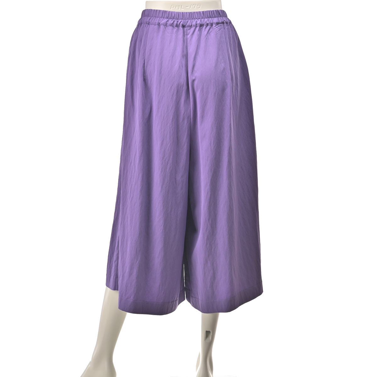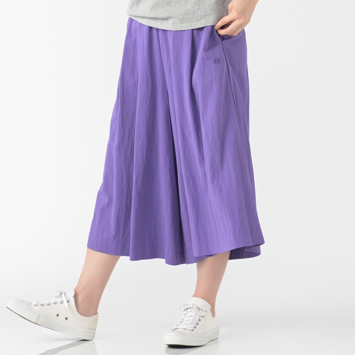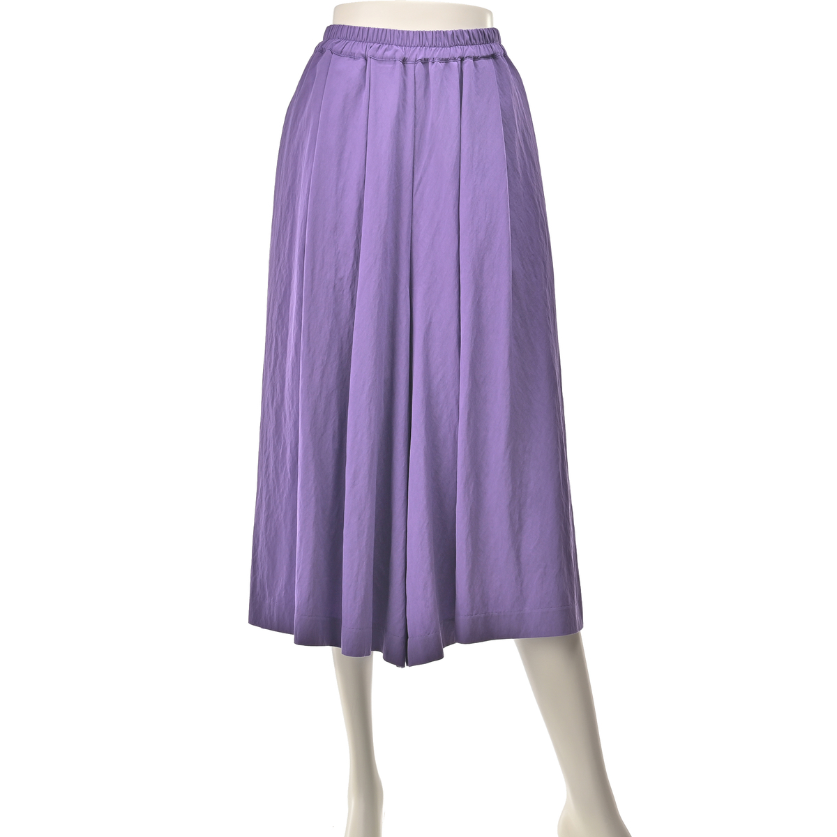スカートのような優雅さとパンツの動きやすさを両立したスカーチョ。たっぷりとした分量感ながら、裾にかけてすっきりと落ちるフレアシルエットが特徴です