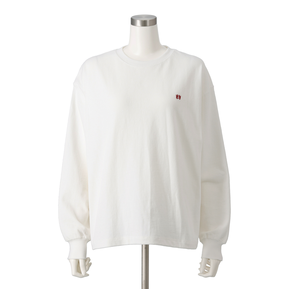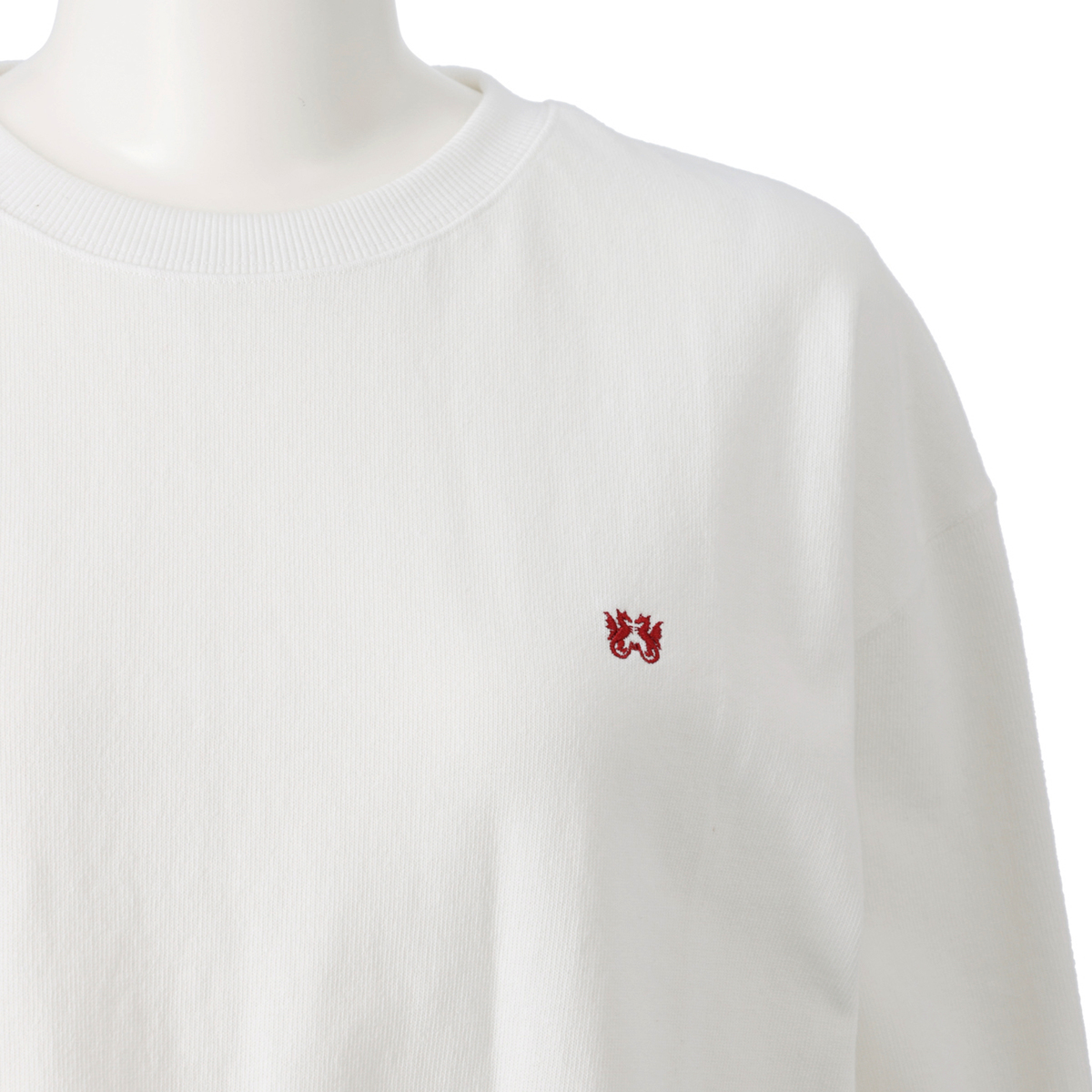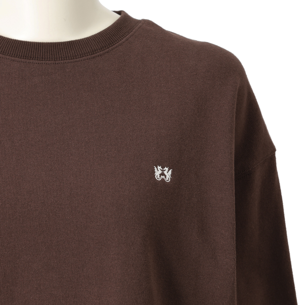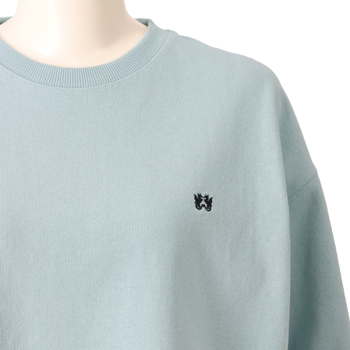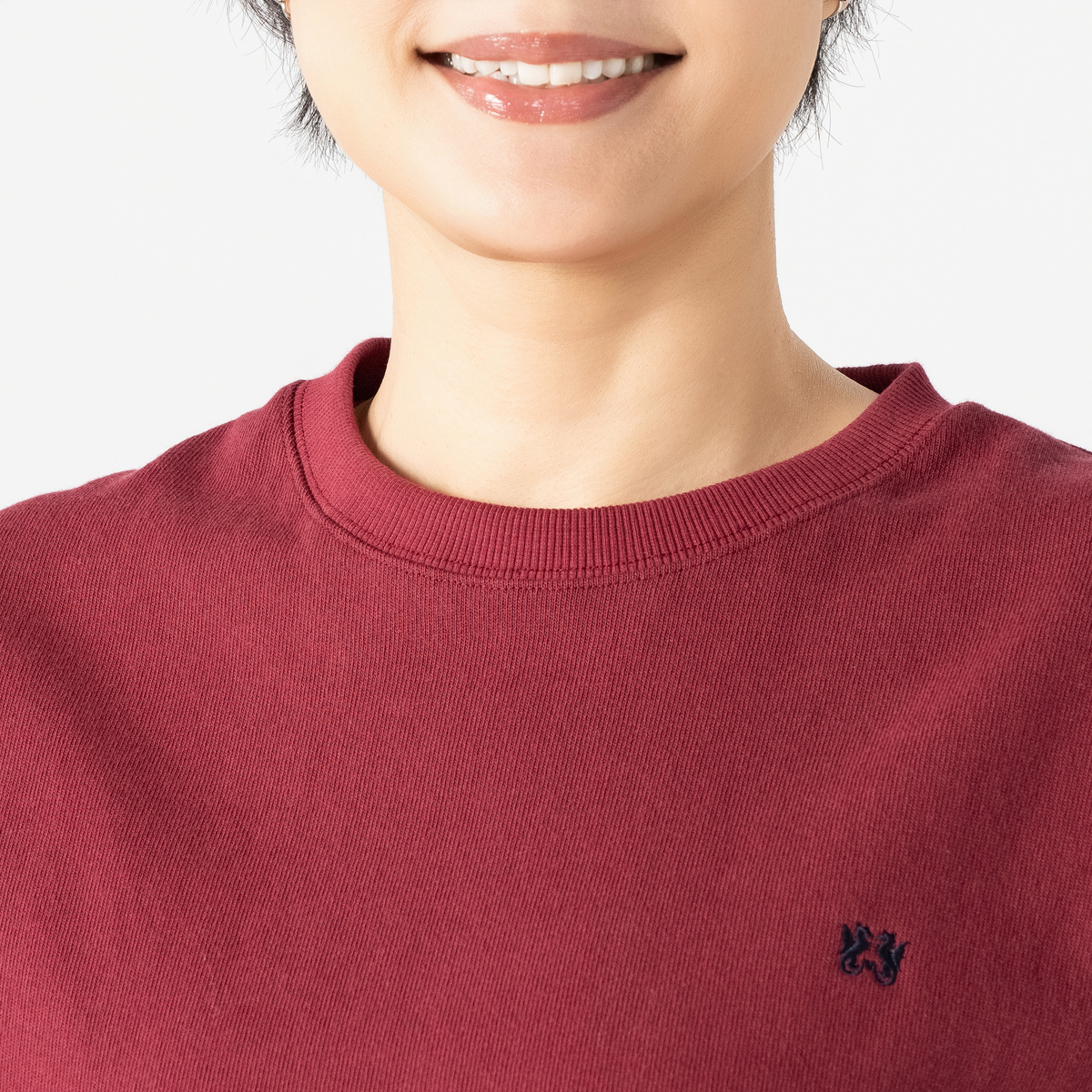 胸元の小さな刺繍ロゴがアクセントとなり、シンプルなデザインの中で個性をさりげなく主張。程よい厚みながらも表面はなめらか。空気を含むようなふっくら感で、着るたびに体に馴染みます