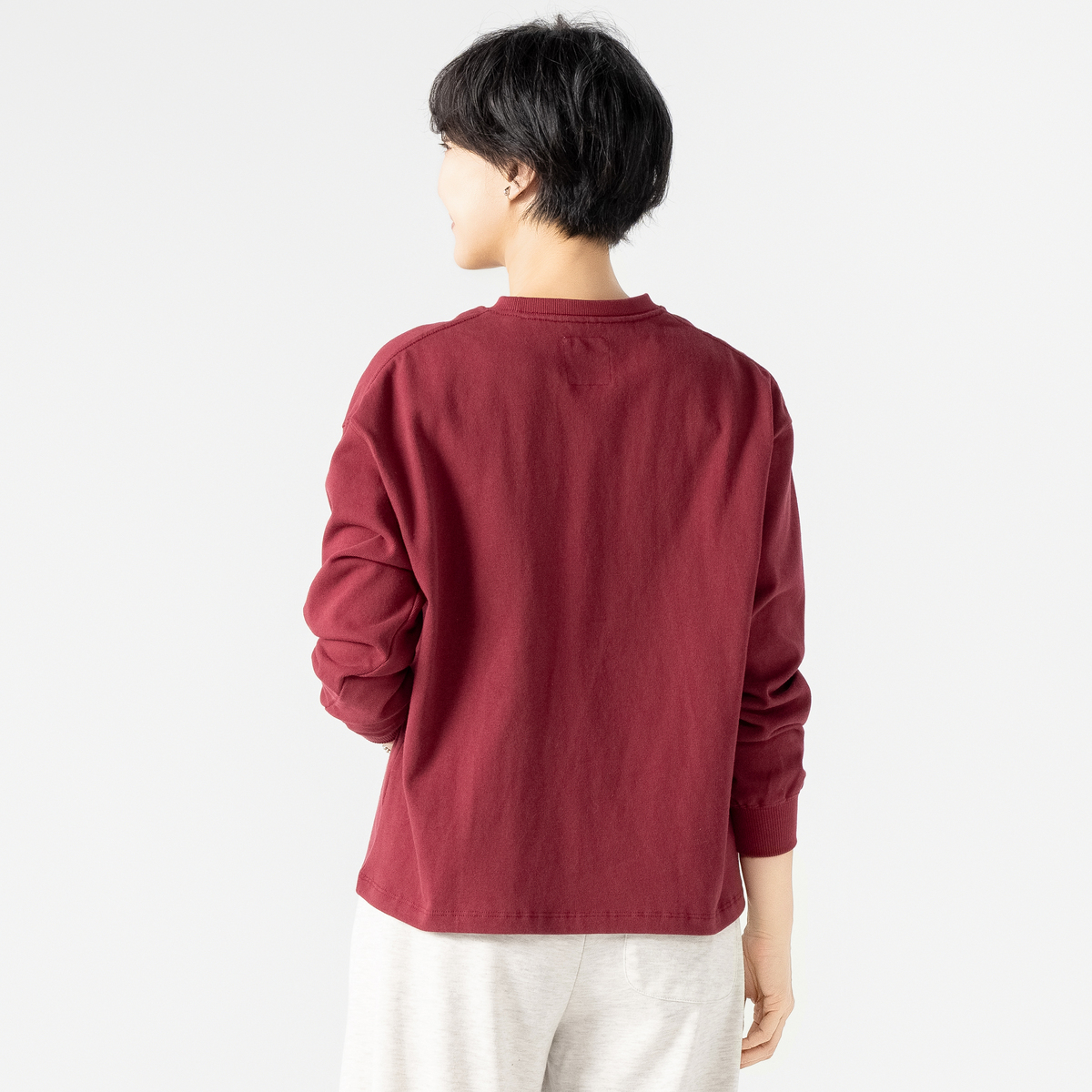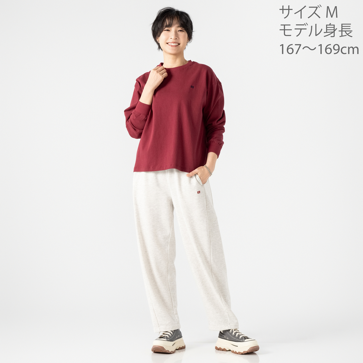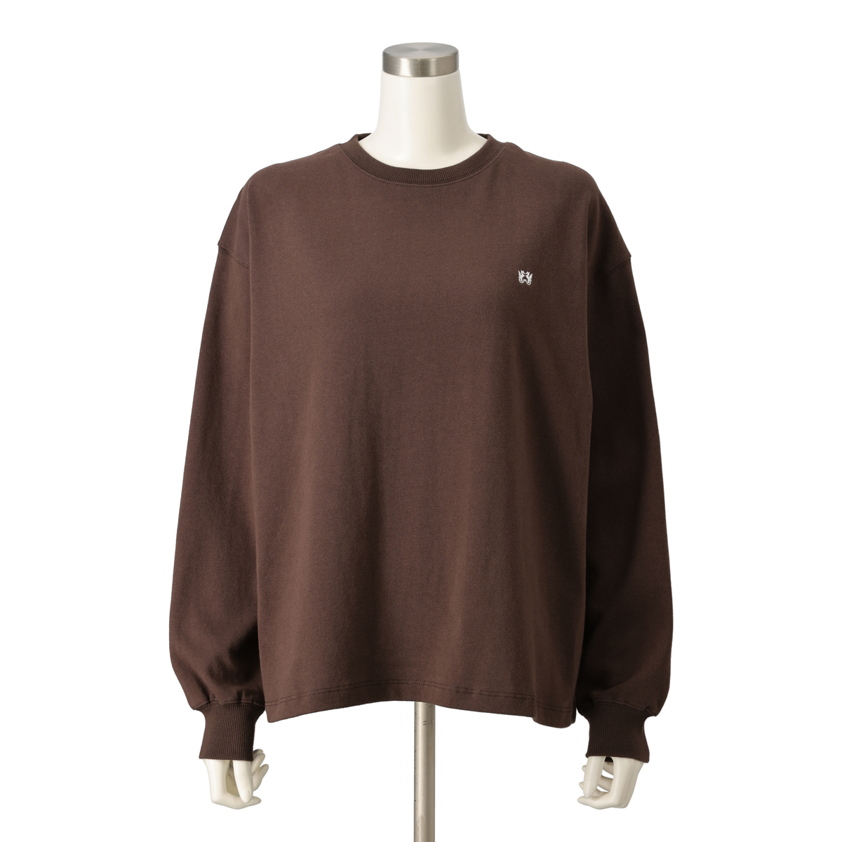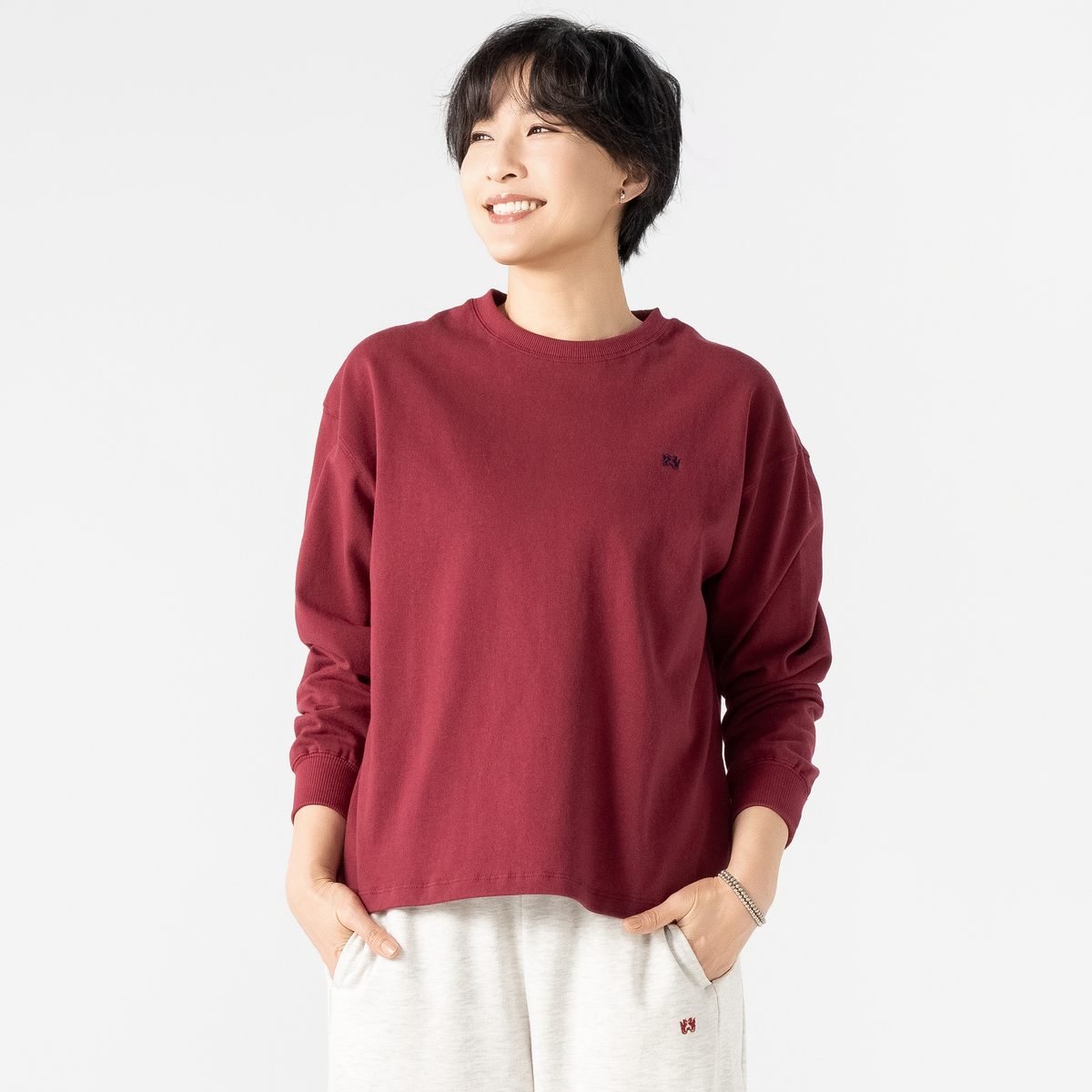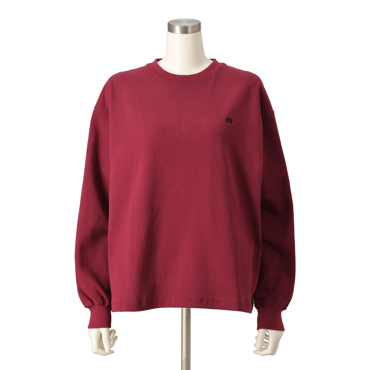 胸元の小さな刺繍ロゴがアクセントとなり、シンプルなデザインの中で個性をさりげなく主張。程よい厚みながらも表面はなめらか。空気を含むようなふっくら感で、着るたびに体に馴染みます