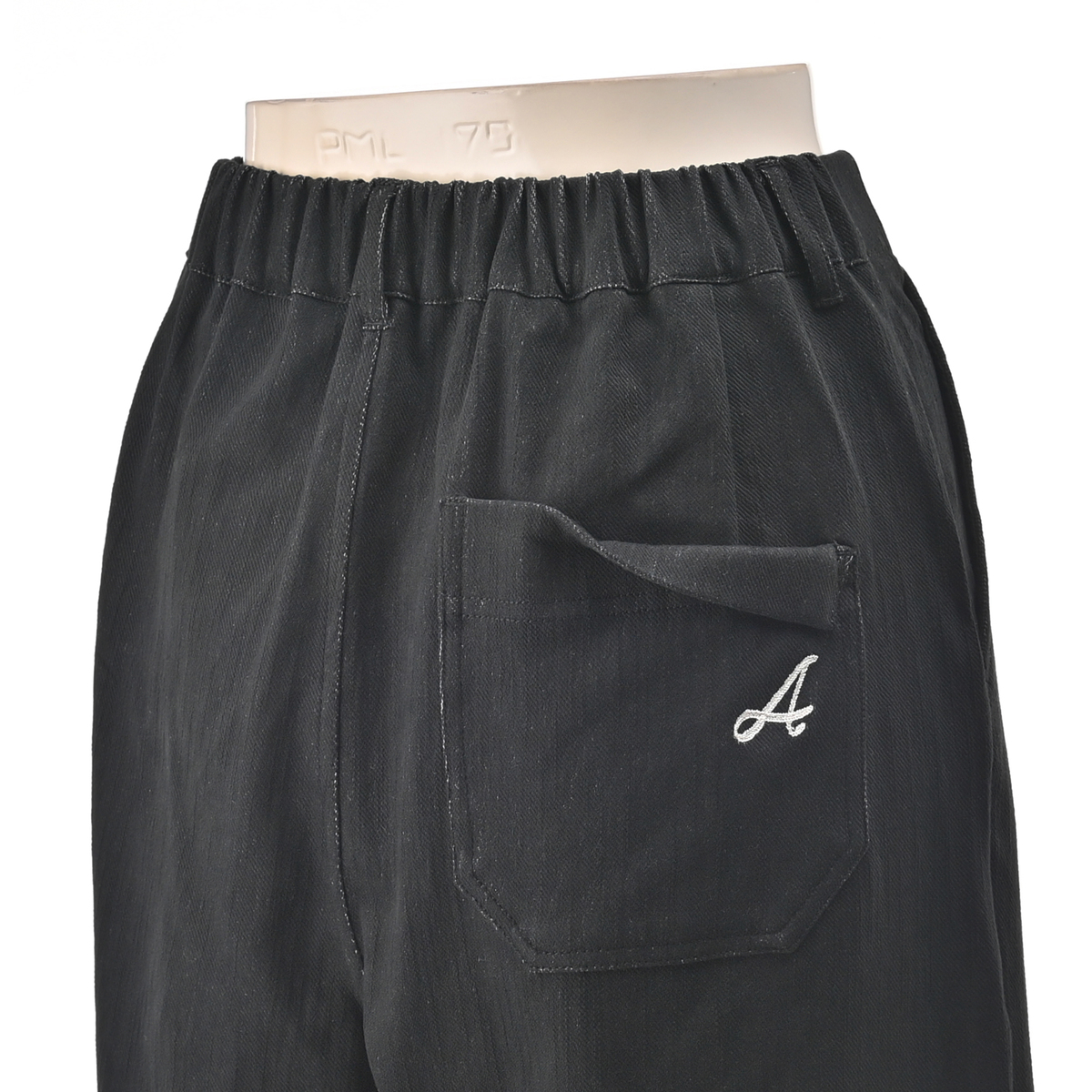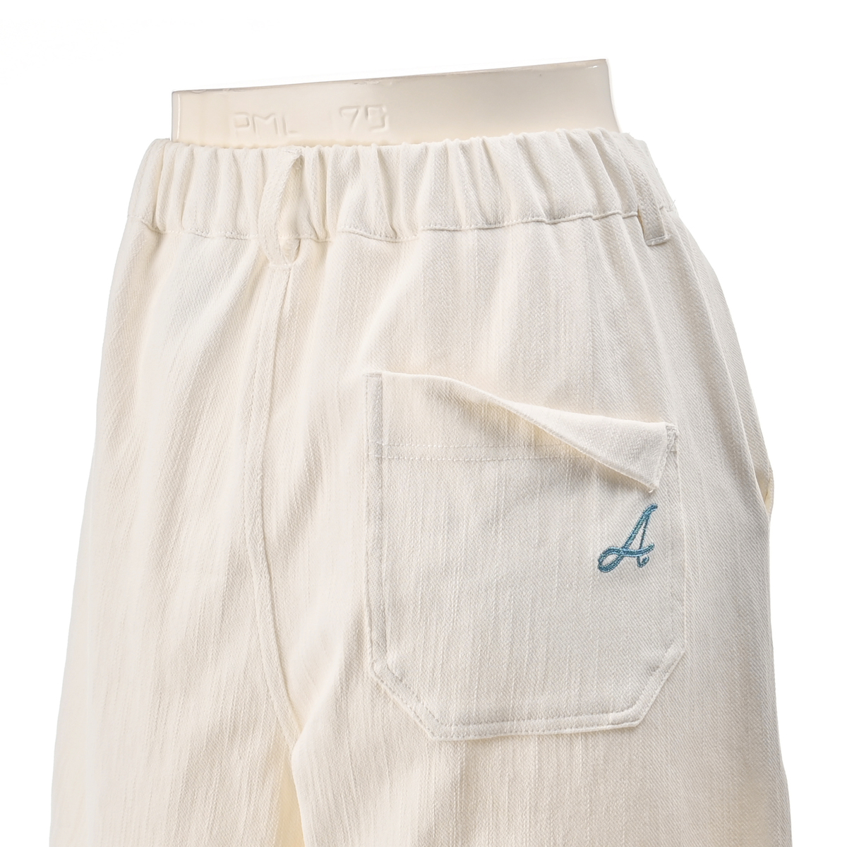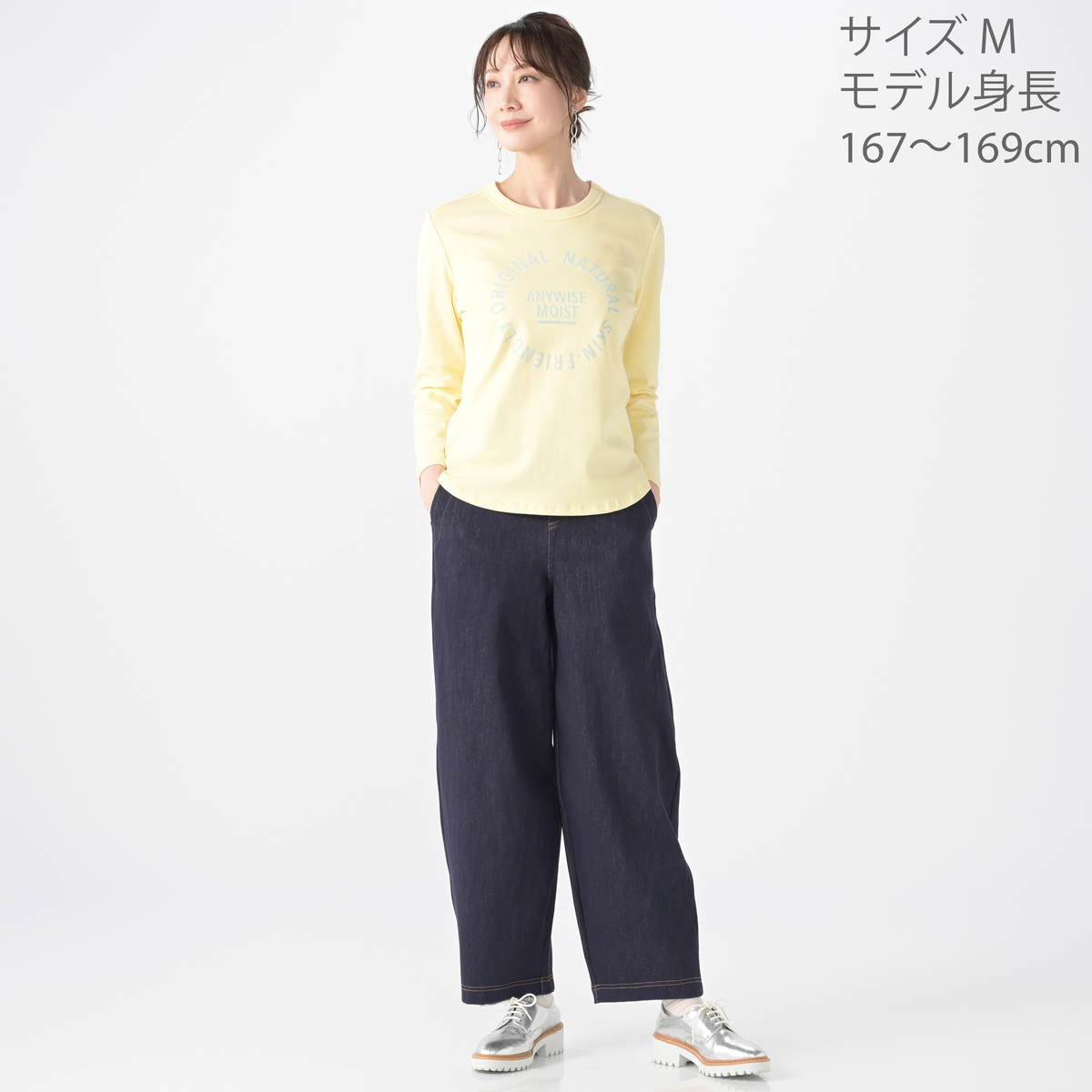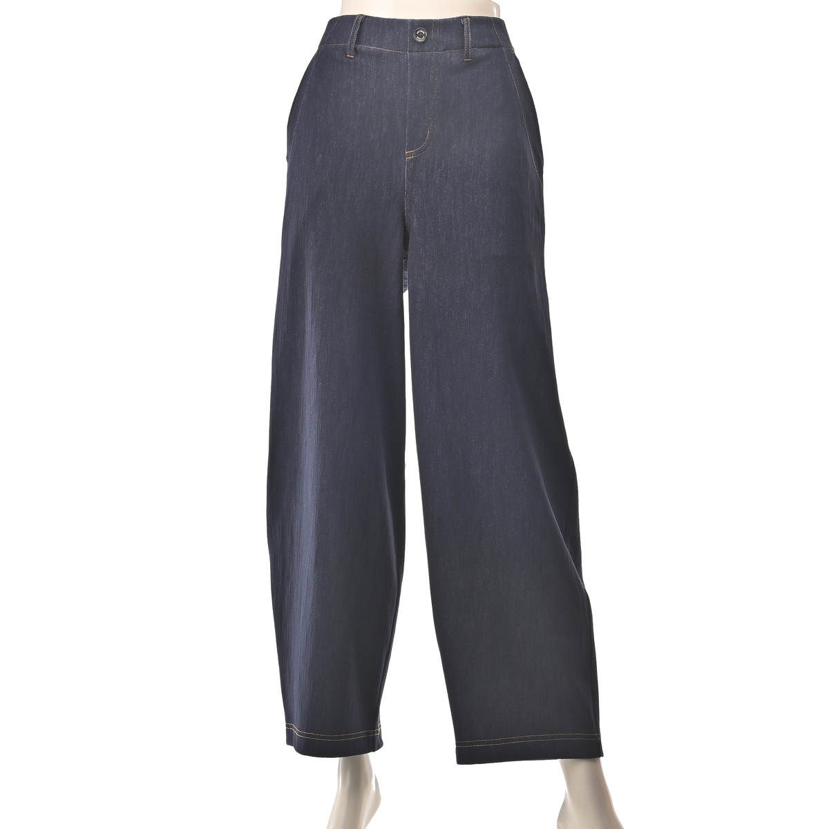 エニワイズ加工を施したニットデニムパンツ。エニワイズ加工は繊維中に油脂分が含まれているので、しっとりなめらかな穿き心地です