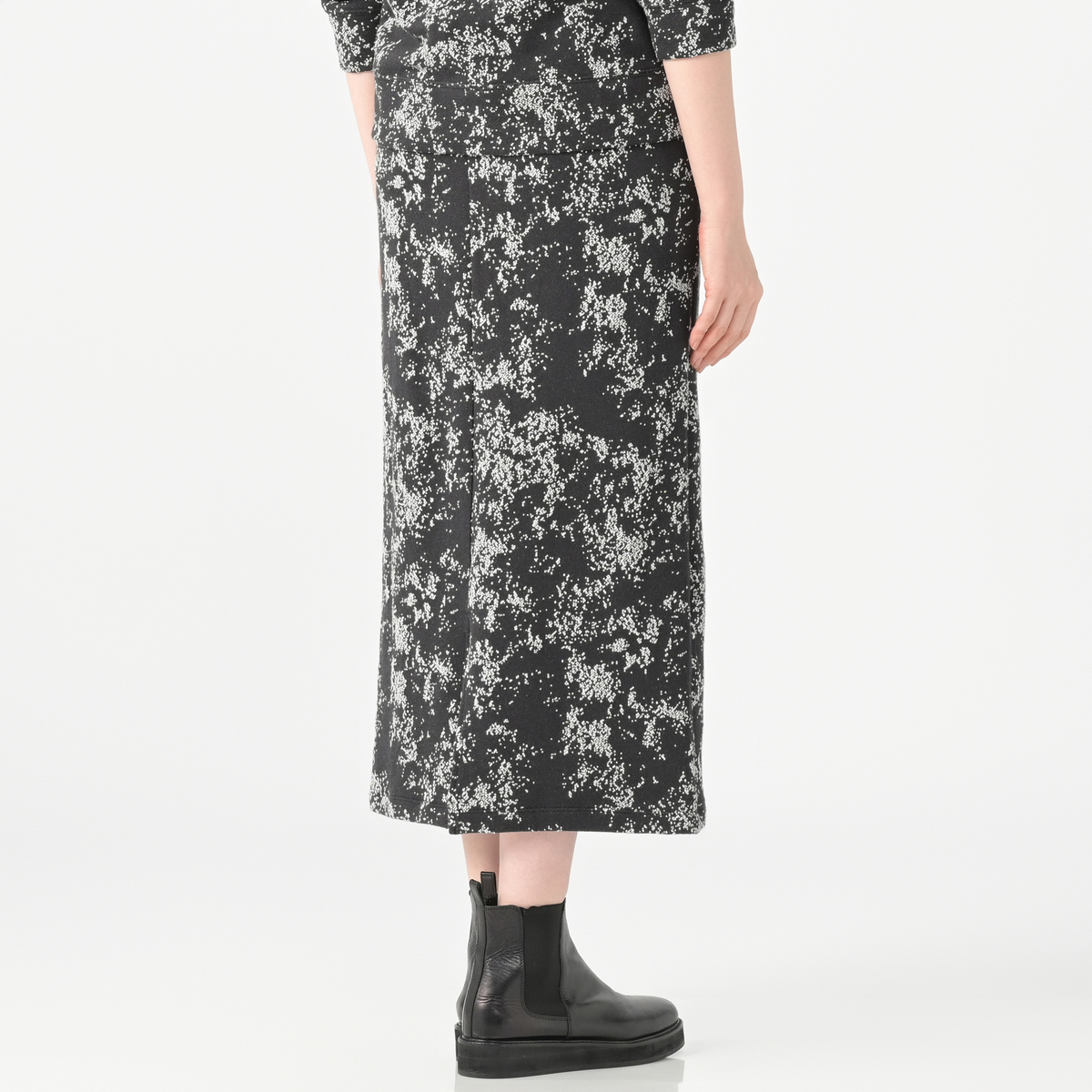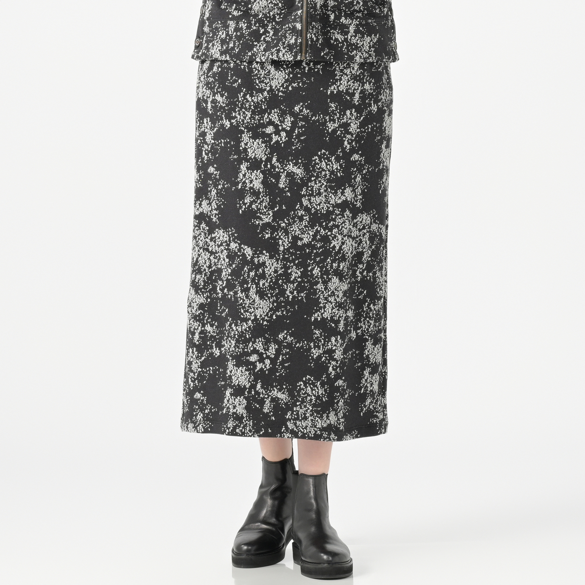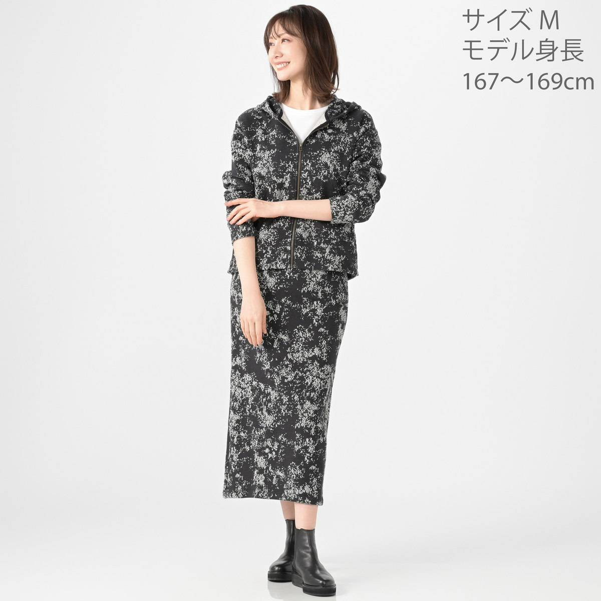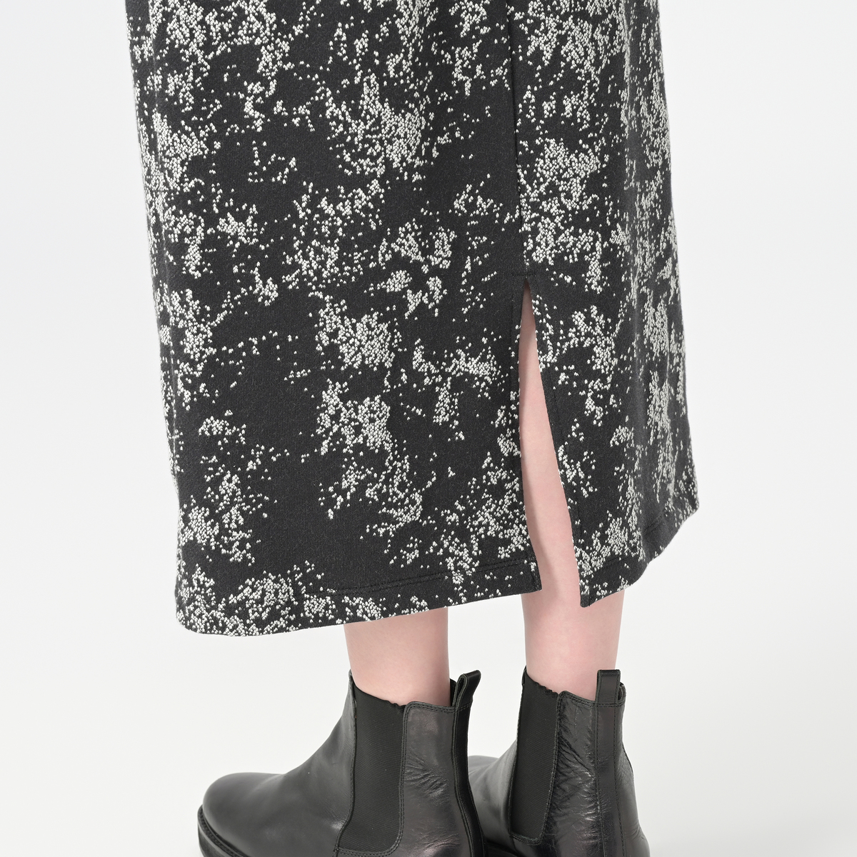 変わり裏毛で仕立てたタイトスカート。生地感がスタイリッシュな印象をもたらすデザインです。同素材のアイテムとのコーディネートも楽しめます