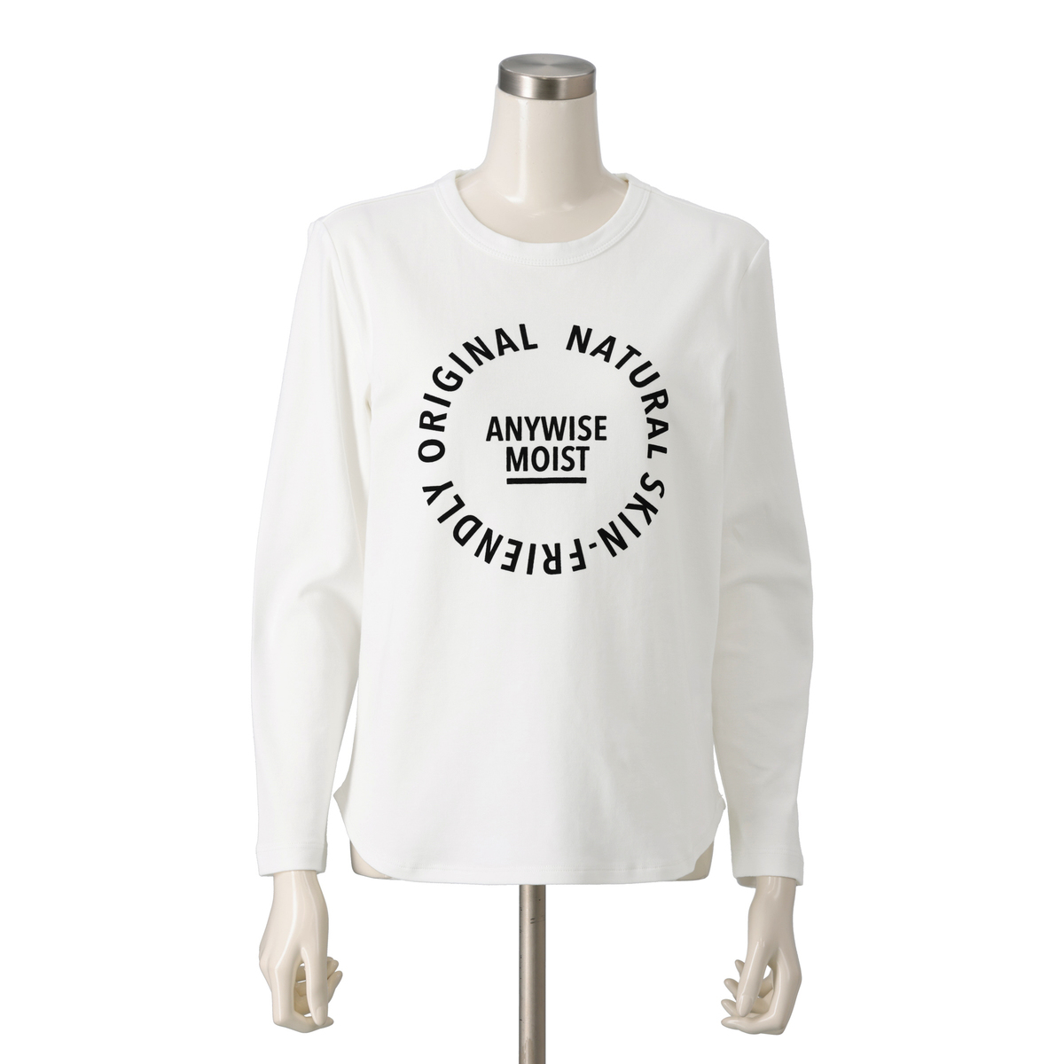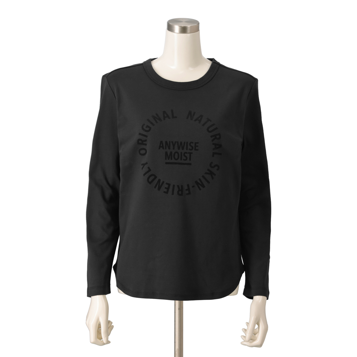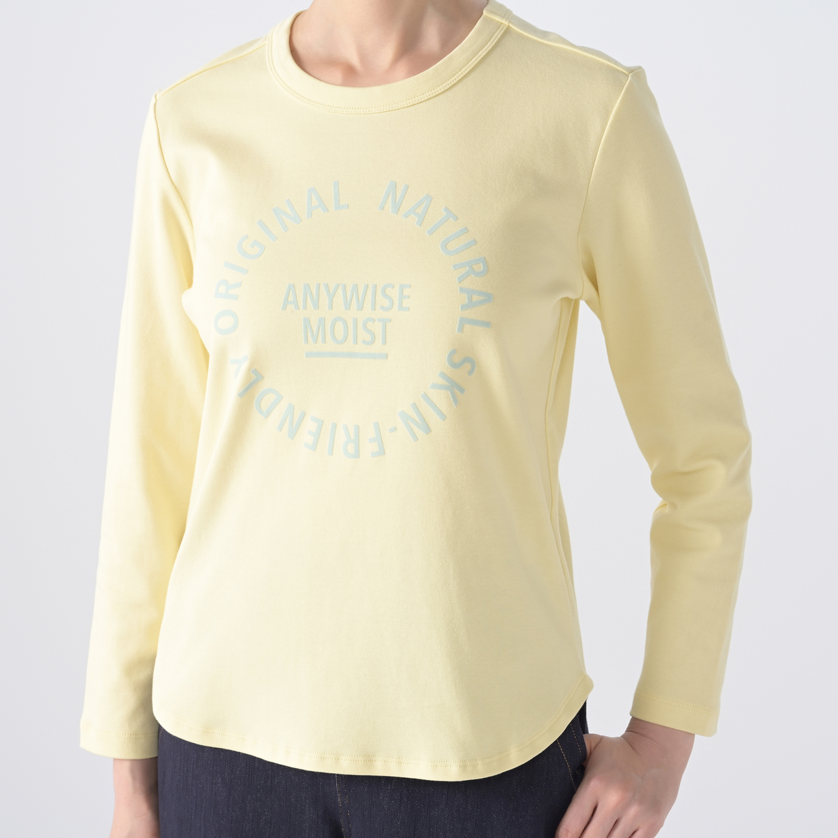 しっとりなめらかに着られる長袖Tシャツ。エニワイズ加工により、繊維中に油脂分を含み、肌あたりがやわらかく快適です。コットンスムース素材の上品な表面感と、ラウンドヘムの軽やかなラインがシルエットに動きを添え、単品でも重ね着でも扱いやすい仕上がりに。さまざまなボトムスと自然に組合せられ、毎日の着こなしになじむ一枚です
