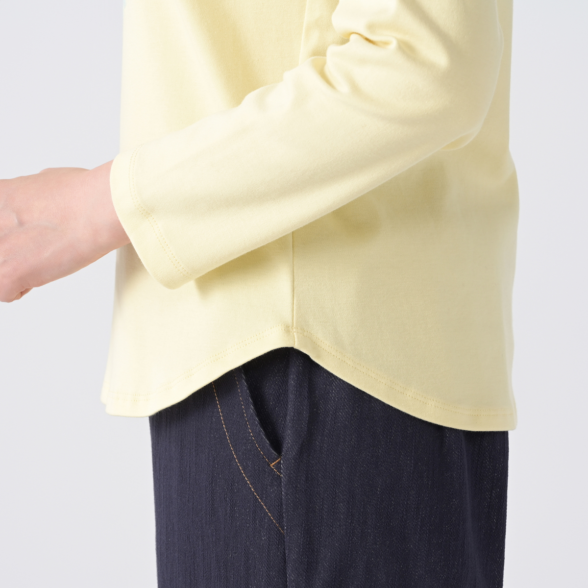 No. 751706 エニワイズ コットンスムースのラウンドヘム長袖Tシャツ