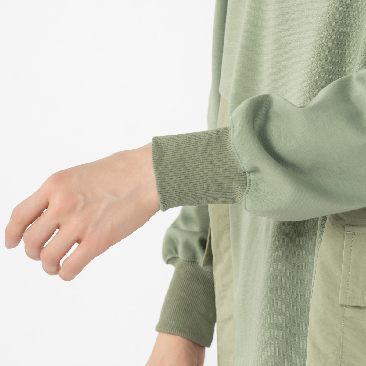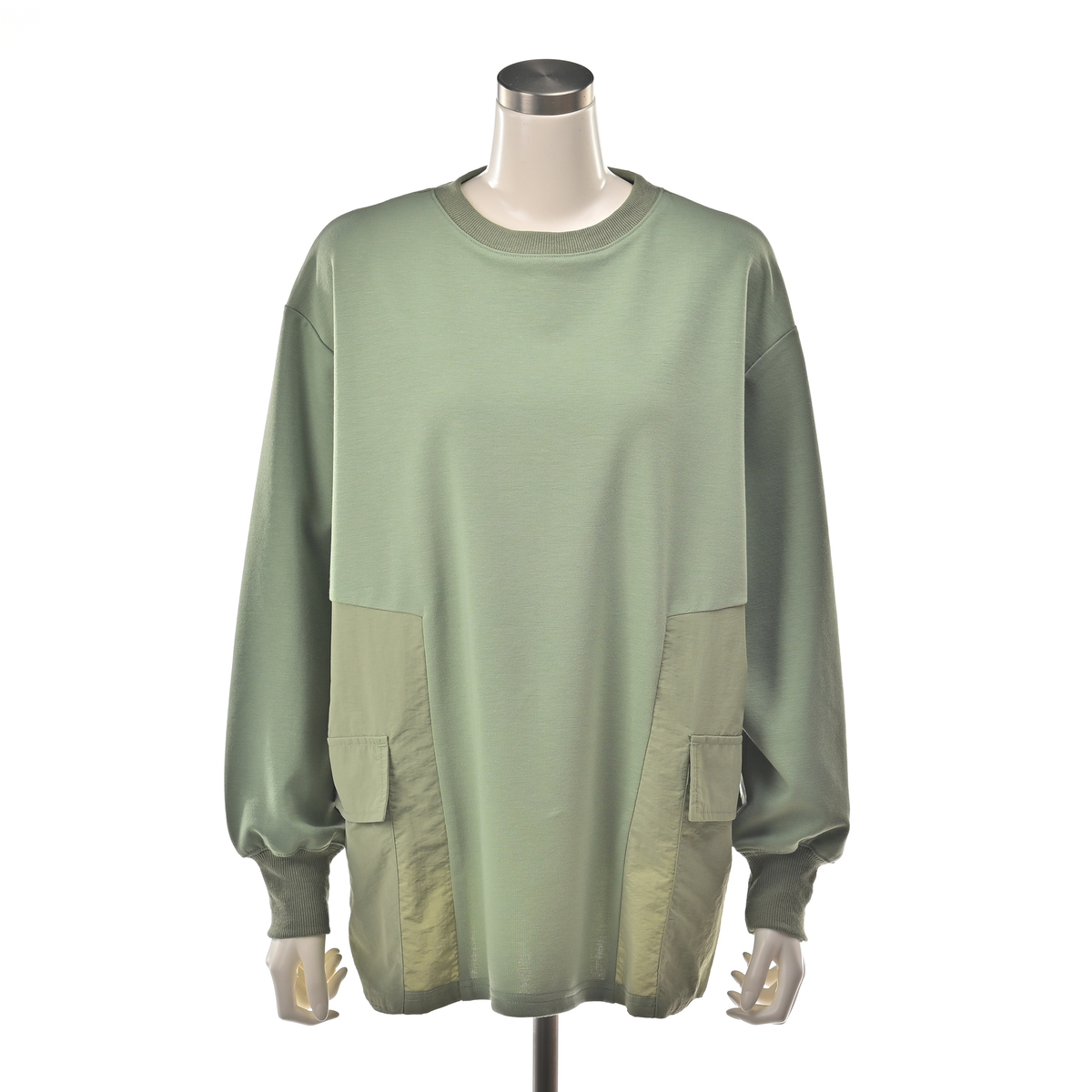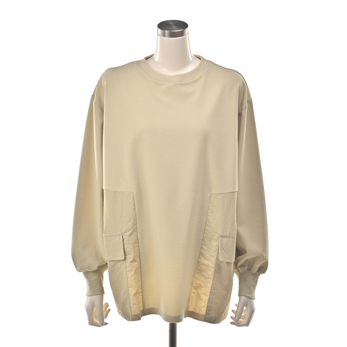 ポンチ素材のカットソー生地のチュニック。脇はタフタという布帛の生地で切替えました。ポンチ生地はしっかりとしたハリと弾力がありつつ、なめらかな肌触りと優れた伸縮性を兼ね備えています