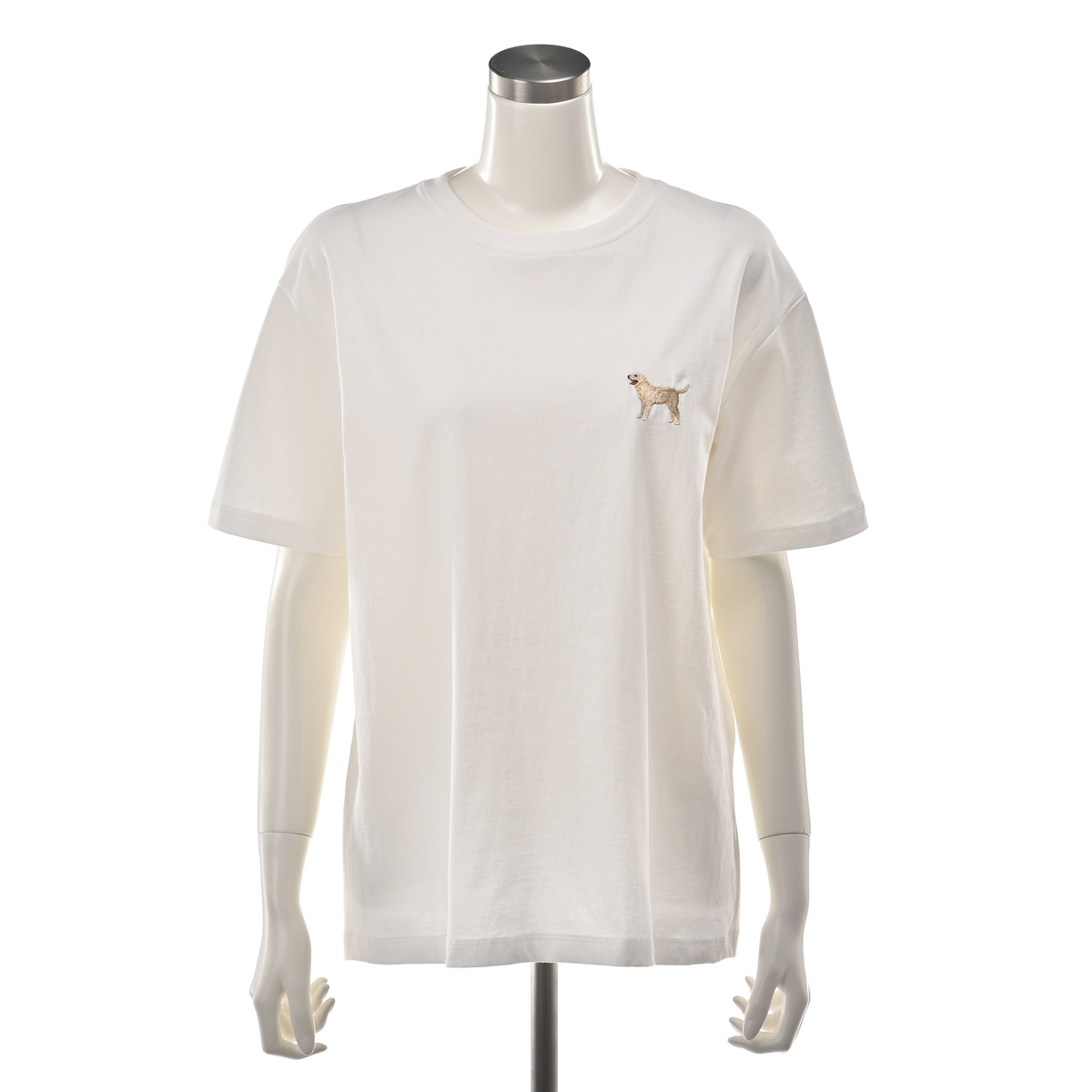 OE天竺素材のドライな肌触りと吸汗速乾性で、暑い季節にも活躍。左胸には愛らしいワンちゃんの刺繍が施され、シンプルなスタイルにさりげないアクセントを加えます