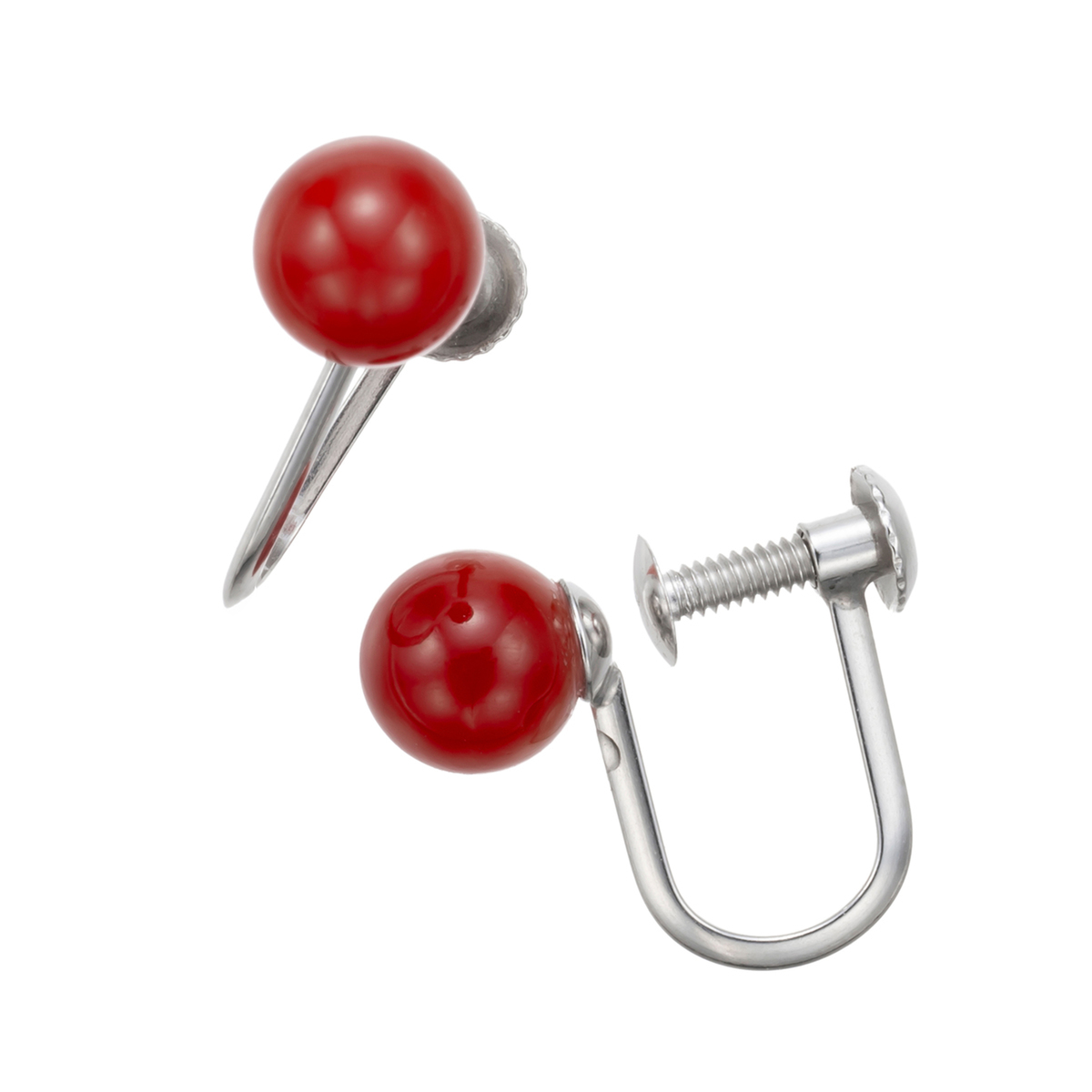 深みのある色合いと、独特の光沢感が魅力の血赤珊瑚を使用したイヤリングまたはピアス。シンプルな丸珠デザインで様々なシーンで活躍します。気品あふれる色合いで、お顔周りを上品に彩ります